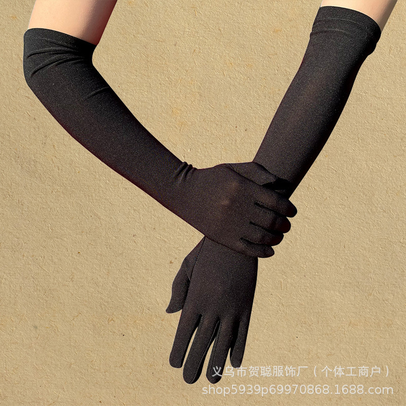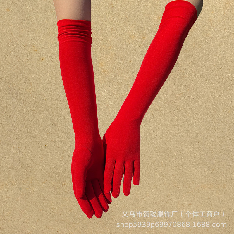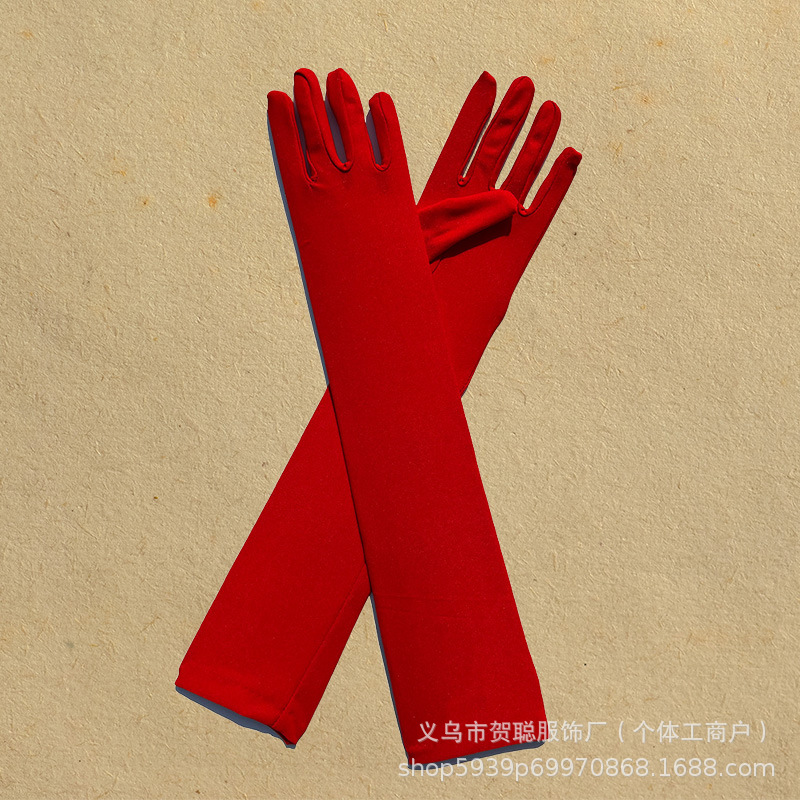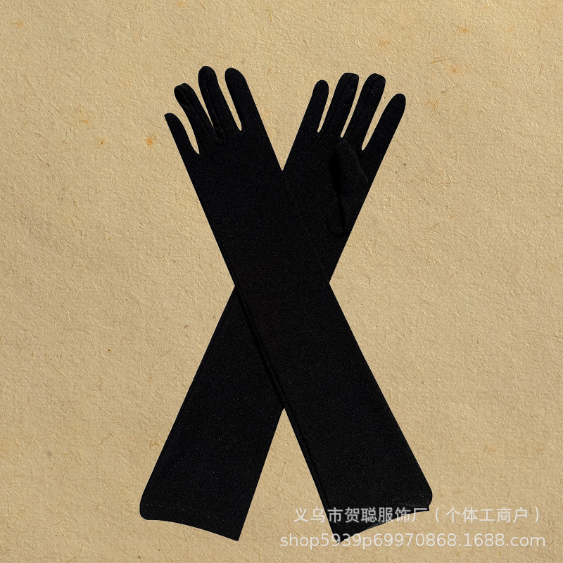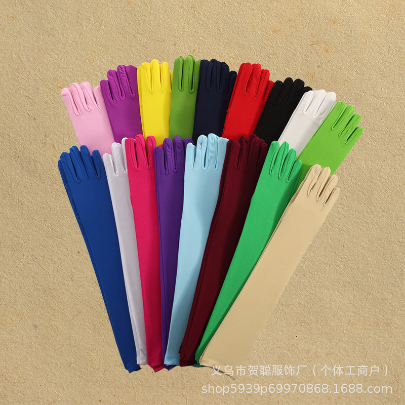 跨境酒吧舞会装扮手套牛奶丝弹力手套节日派对集体表42厘米长款