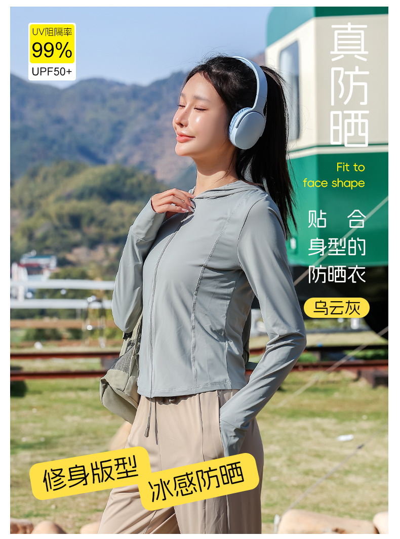 锦纶原纱防晒衣高品质时尚小蛮腰修身瑜伽UPF50+防紫外线防晒服女