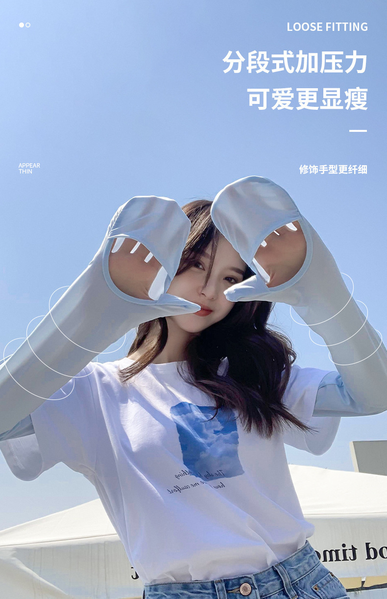 包指袖骑行爬山防晒袖套手套纯色宽松冰丝全包手指袖遮阳防紫外线
