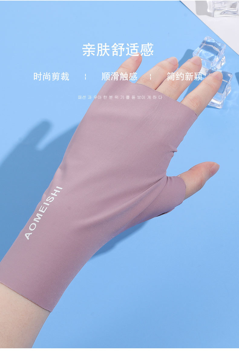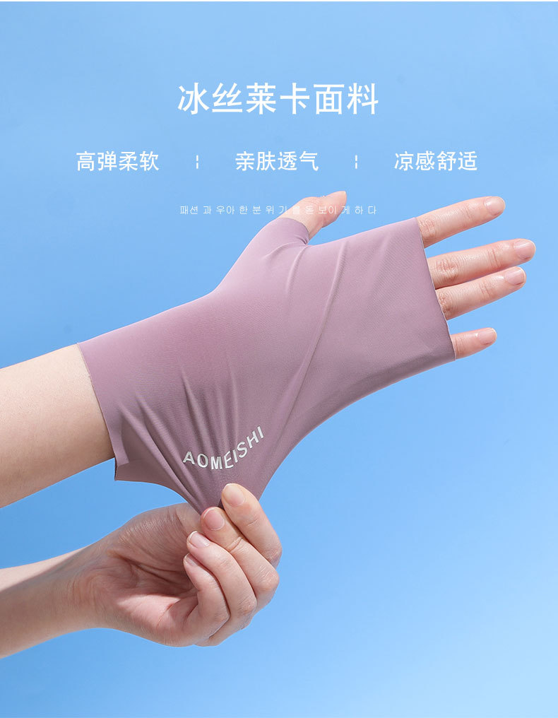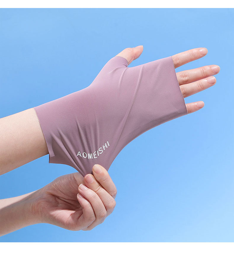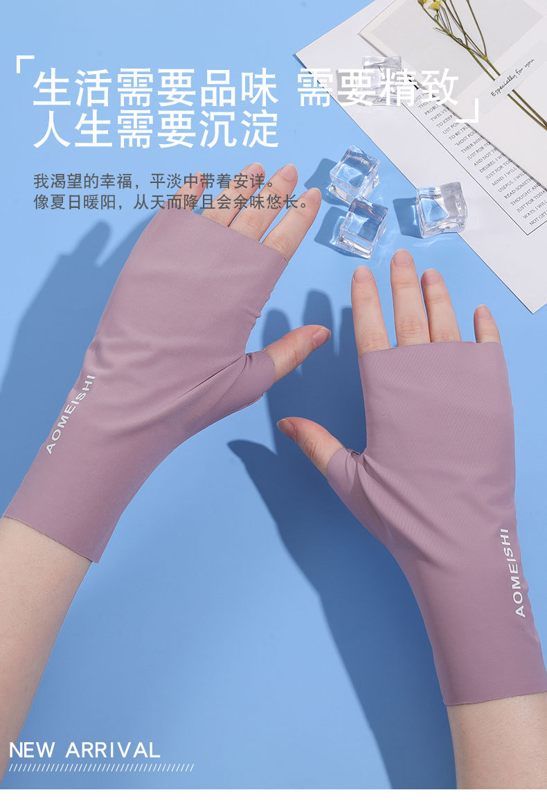 冰丝半指防晒手套女夏季防紫外线户外骑行触屏敲键盘漏指美甲手套