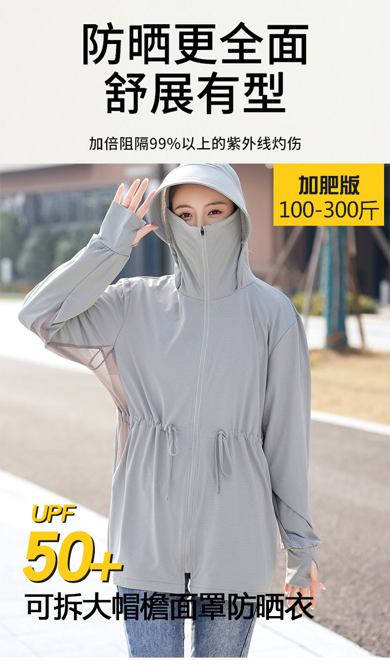 特大码300斤冰丝防晒衣女新款夏季薄款防紫外线骑车外套长防晒服