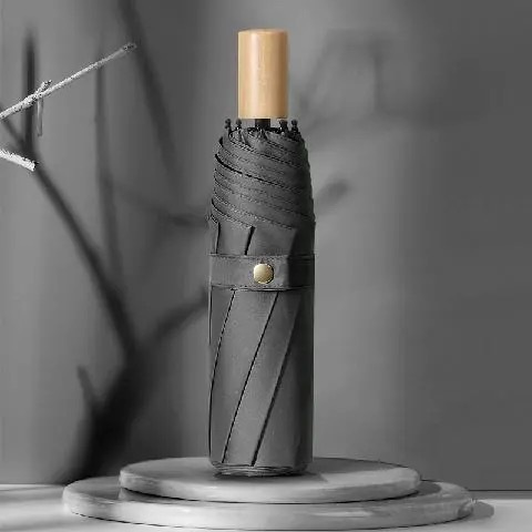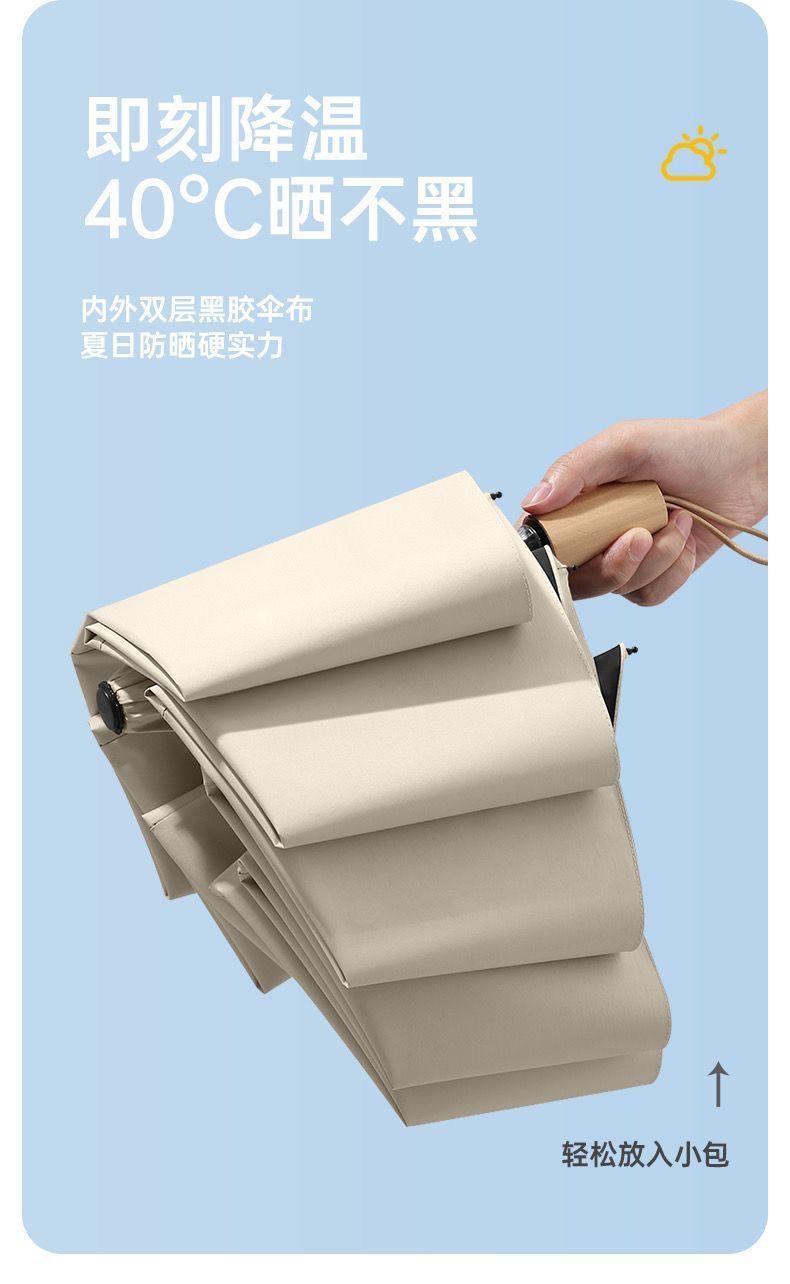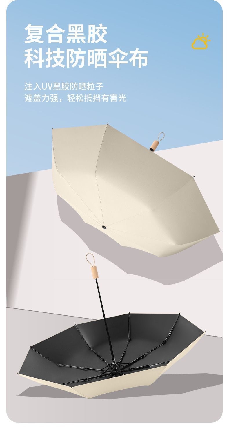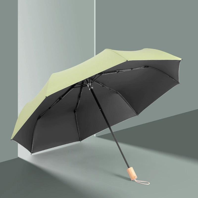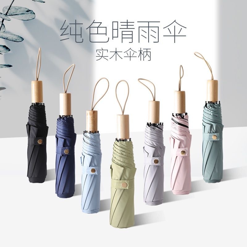ins简约实木手柄黑胶防晒遮阳伞批发晴雨两用折叠广告伞雨伞定制