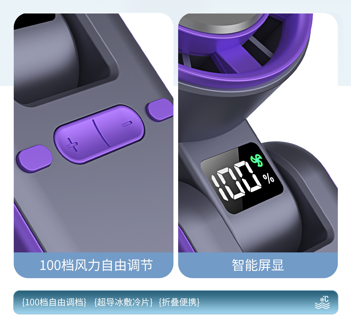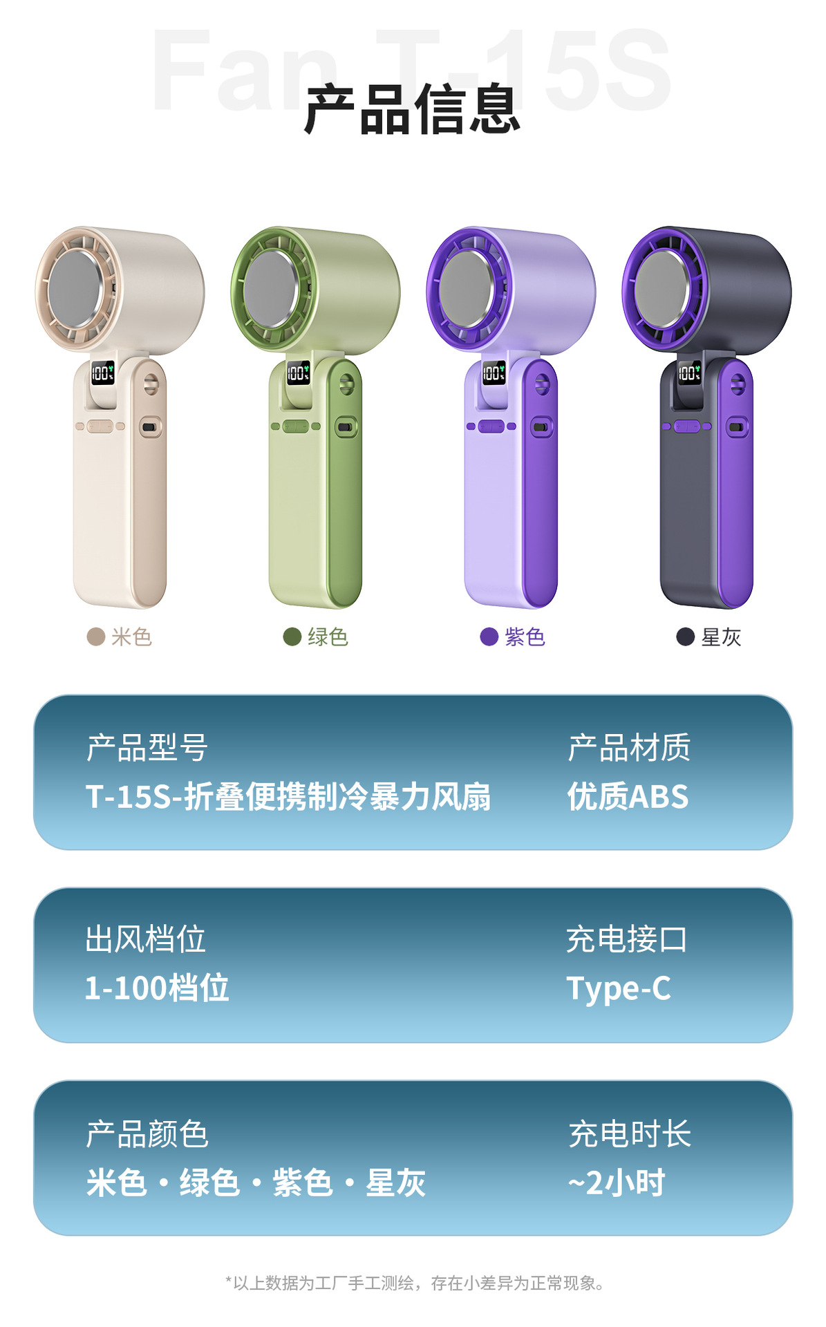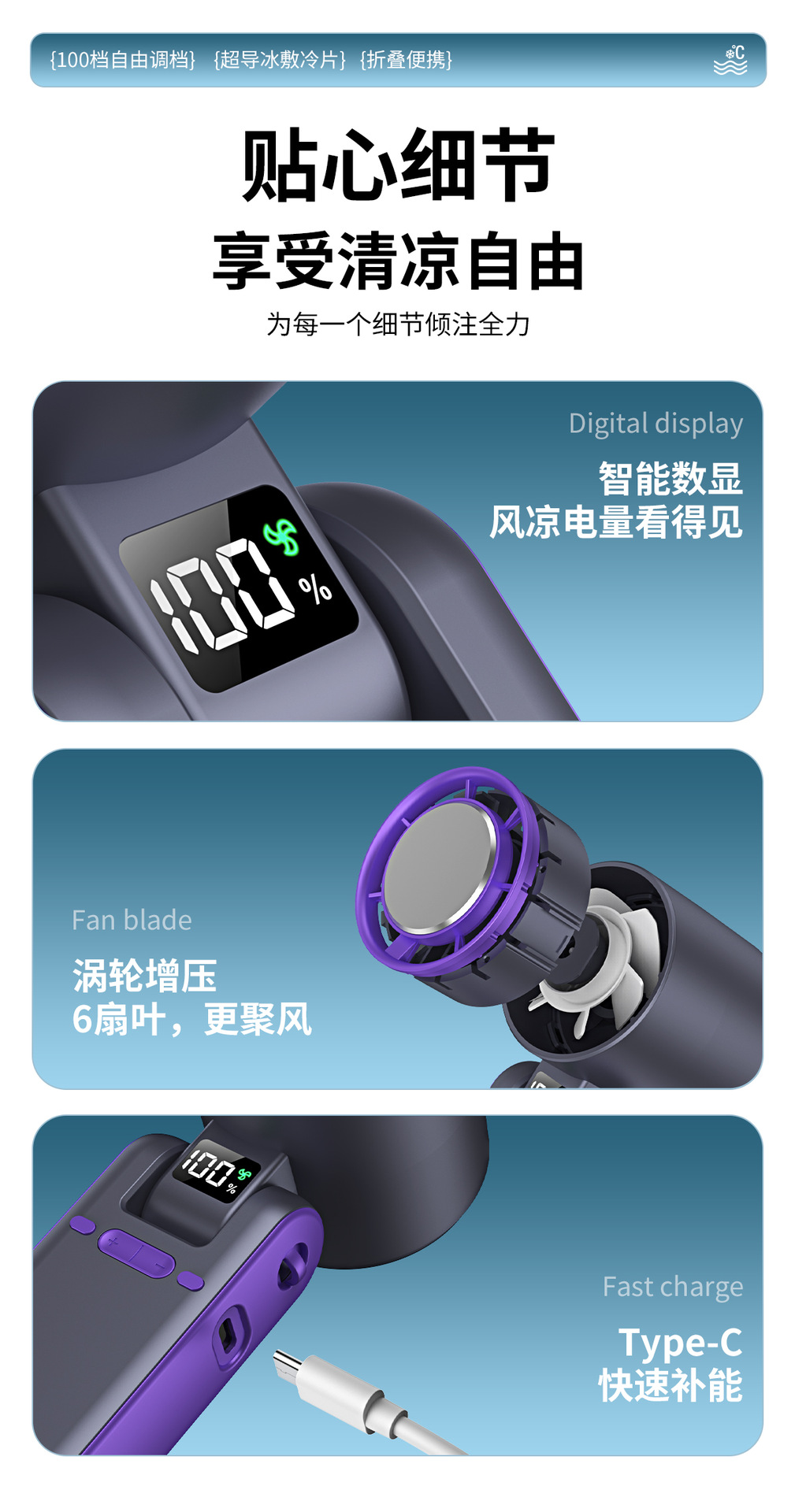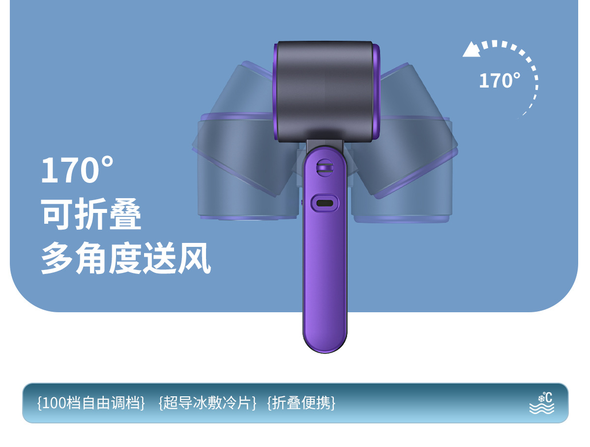 跨境新款T15S手持制冷冰敷风扇 usb高速涡轮暴力风扇折叠挂脖风扇