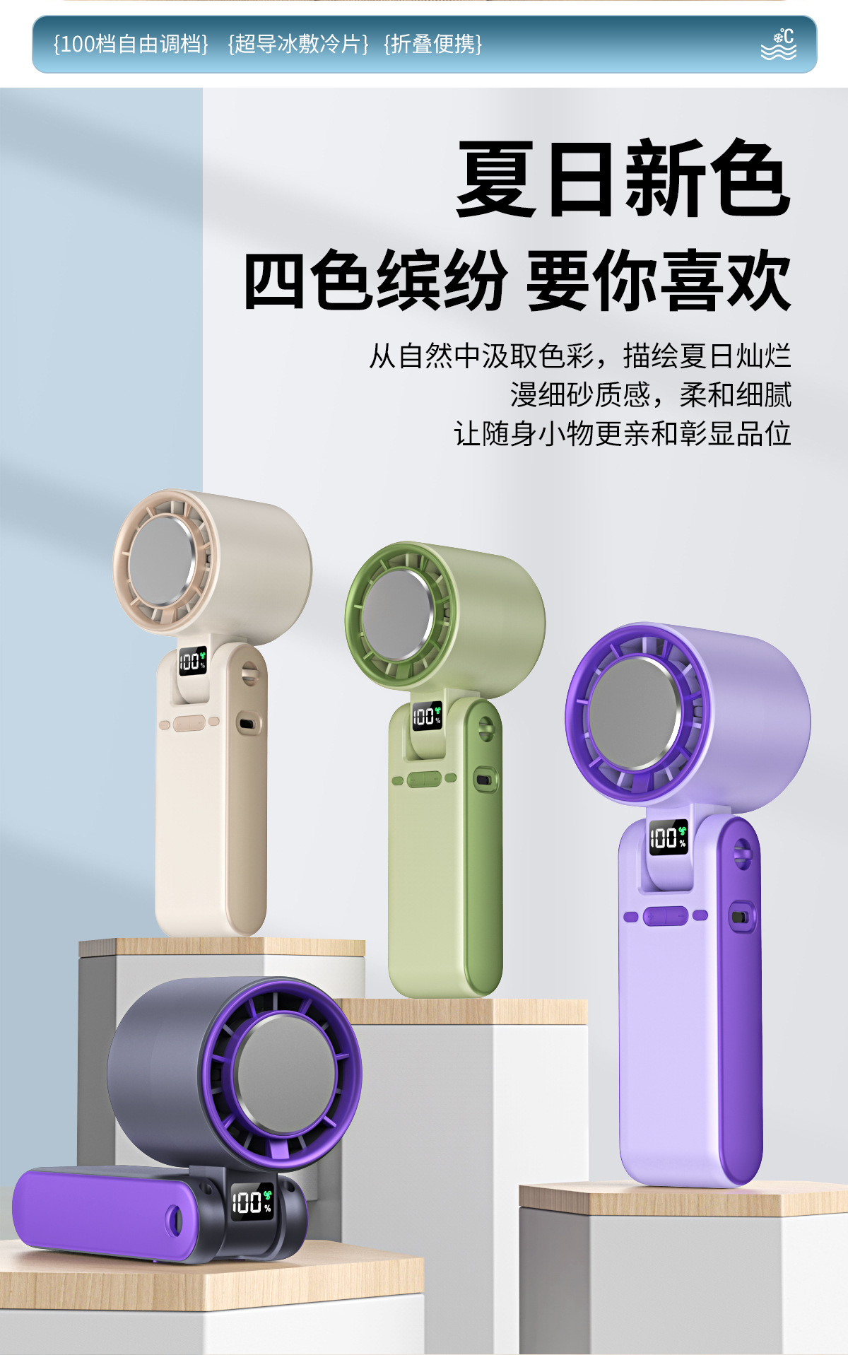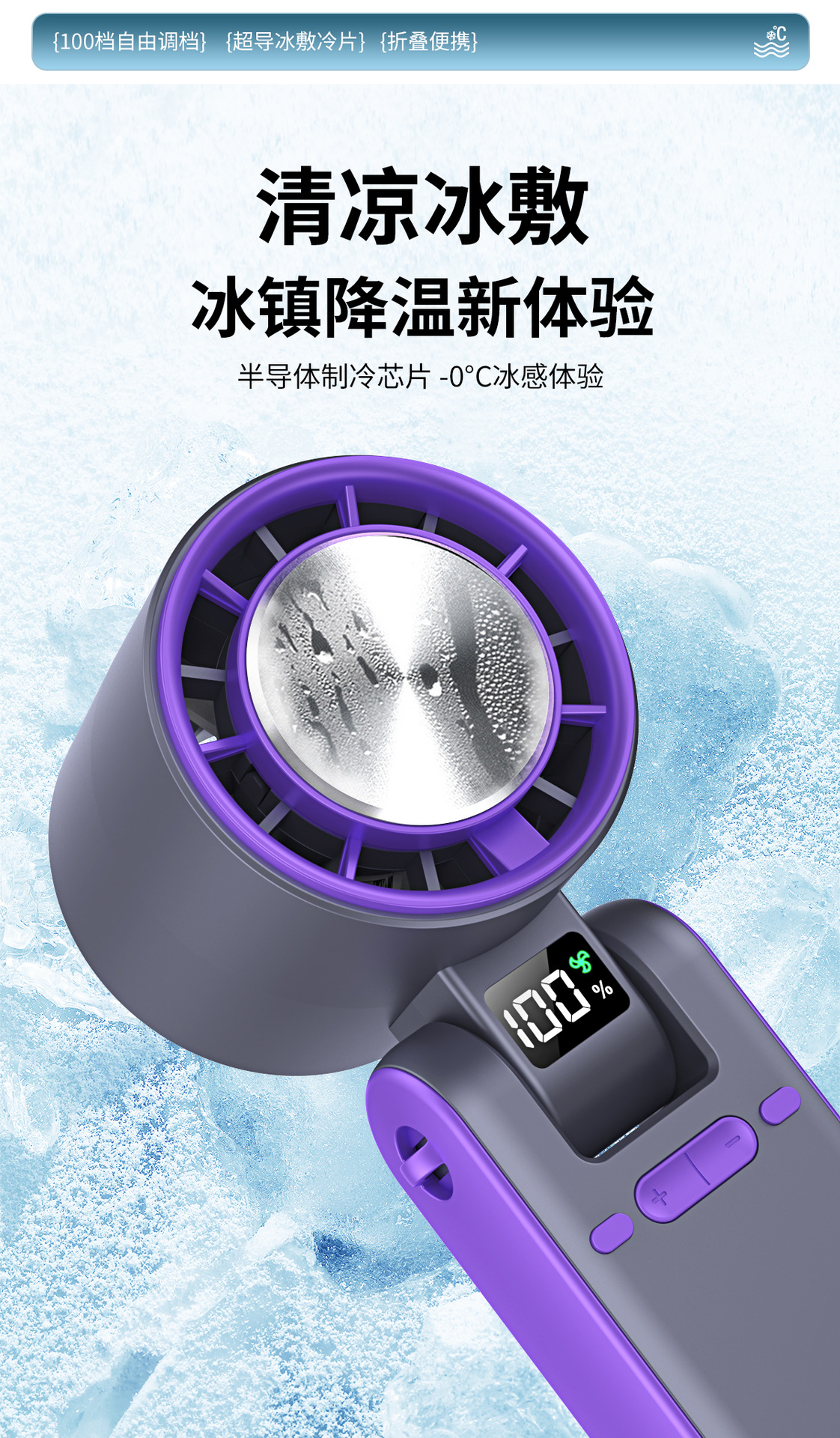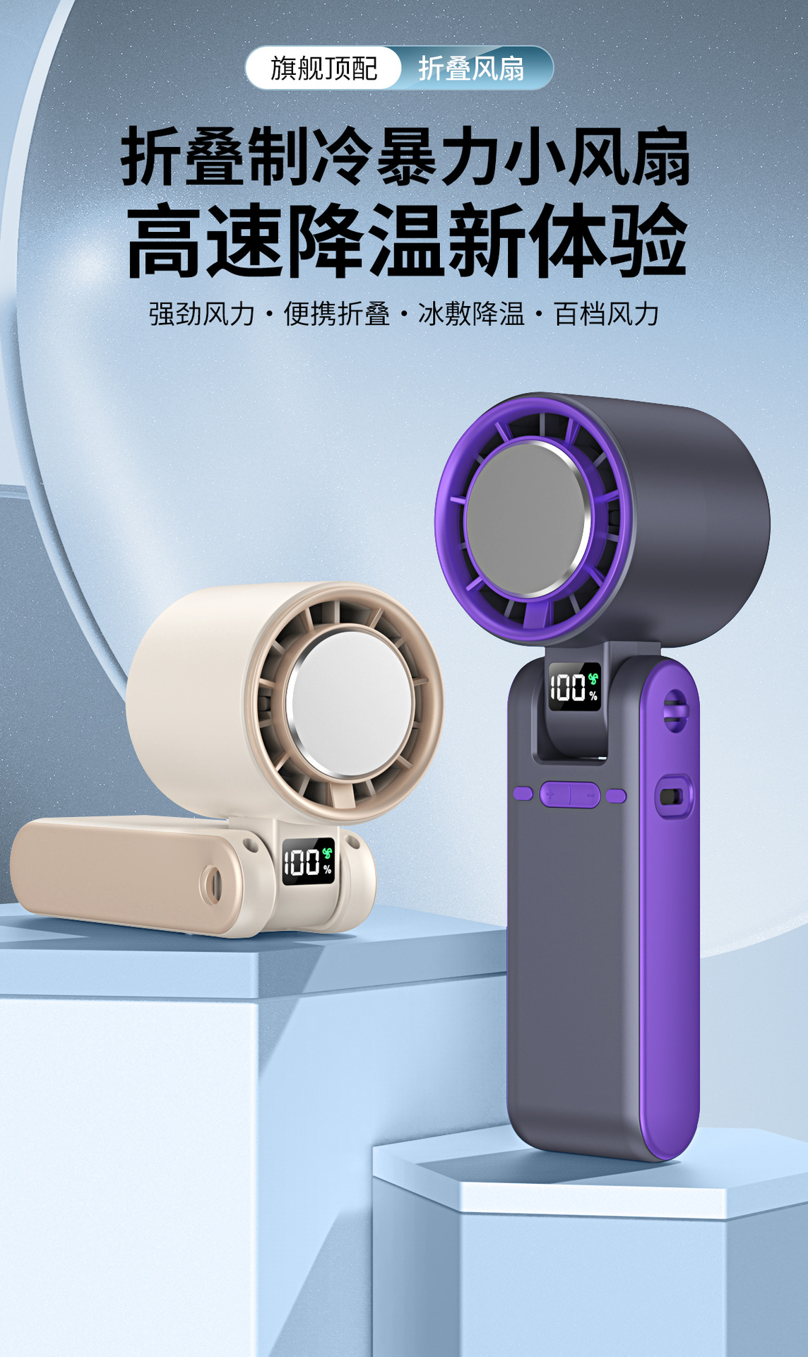 跨境新款T15S手持制冷冰敷风扇 usb高速涡轮暴力风扇折叠挂脖风扇