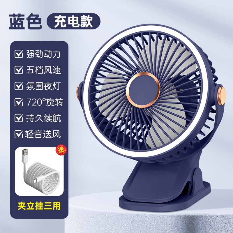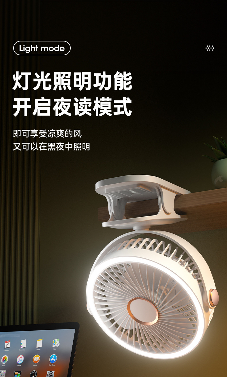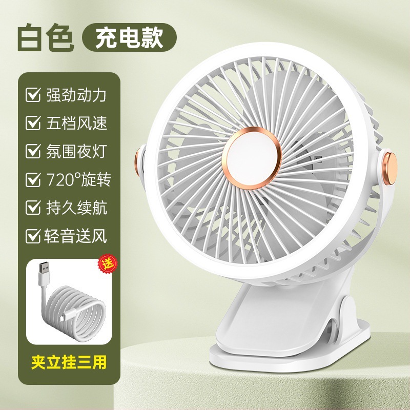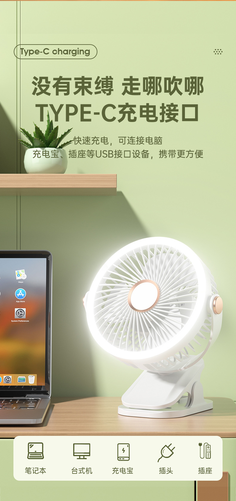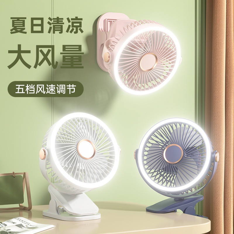 新款家用灯光夹扇桌面台式USB充电式挂壁风扇学生宿舍夹子电风扇
