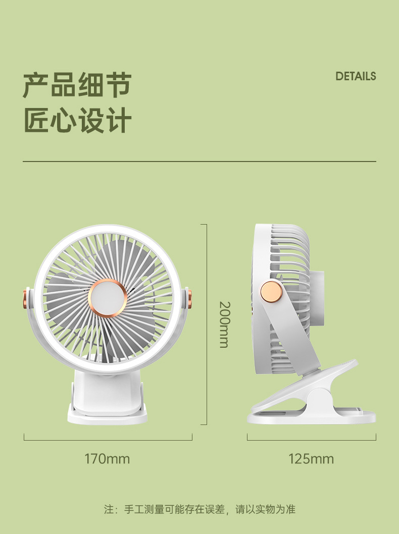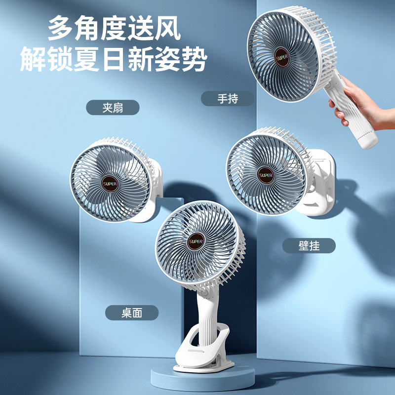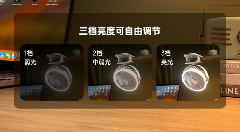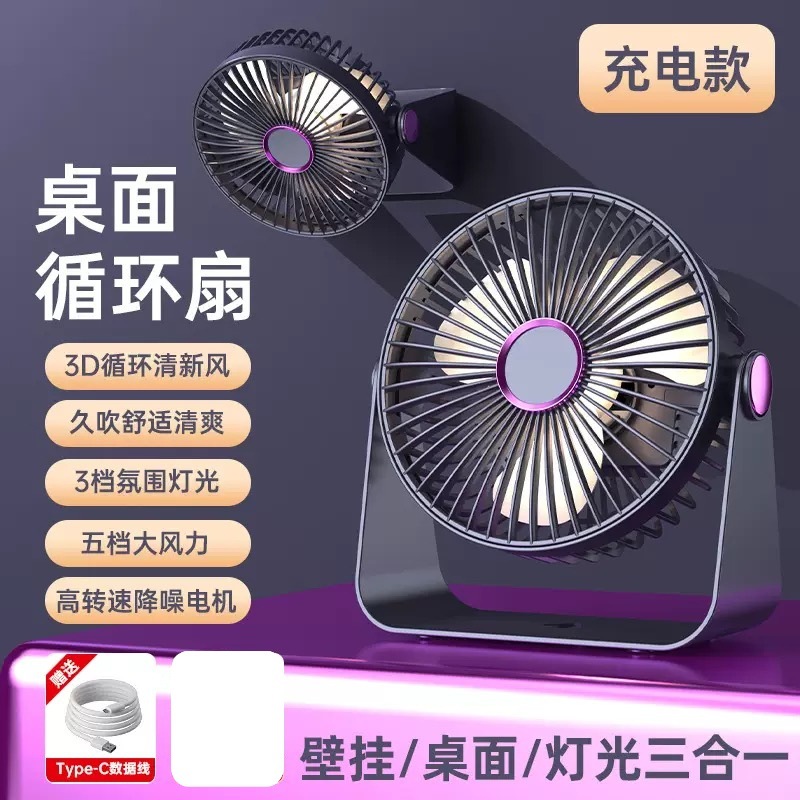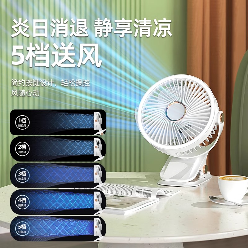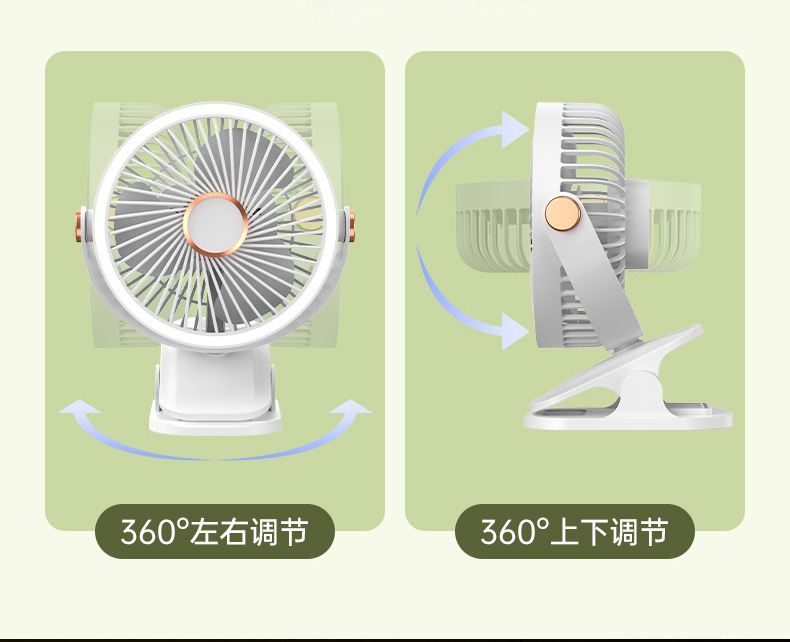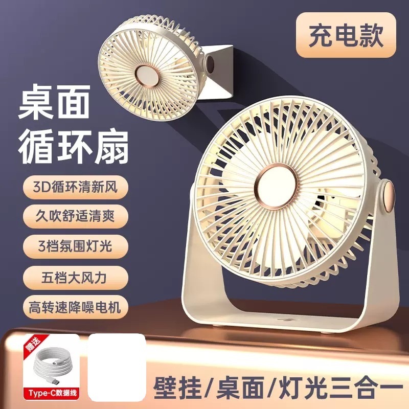 新款家用灯光夹扇桌面台式USB充电式挂壁风扇学生宿舍夹子电风扇