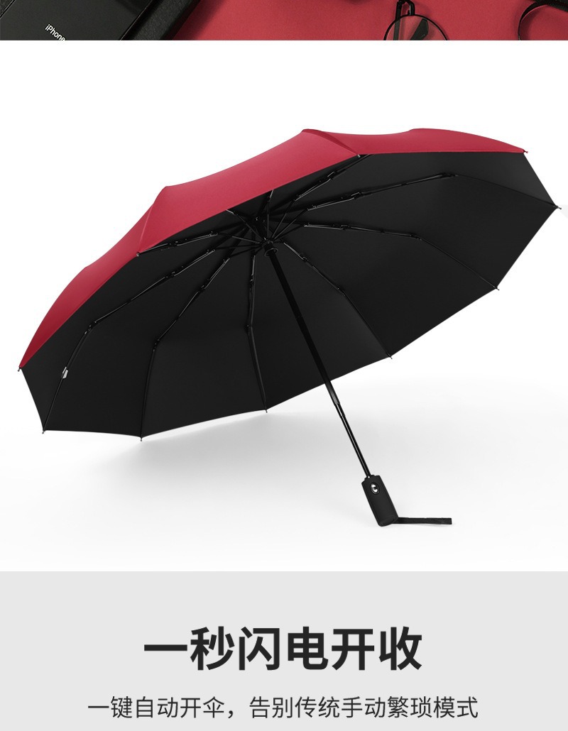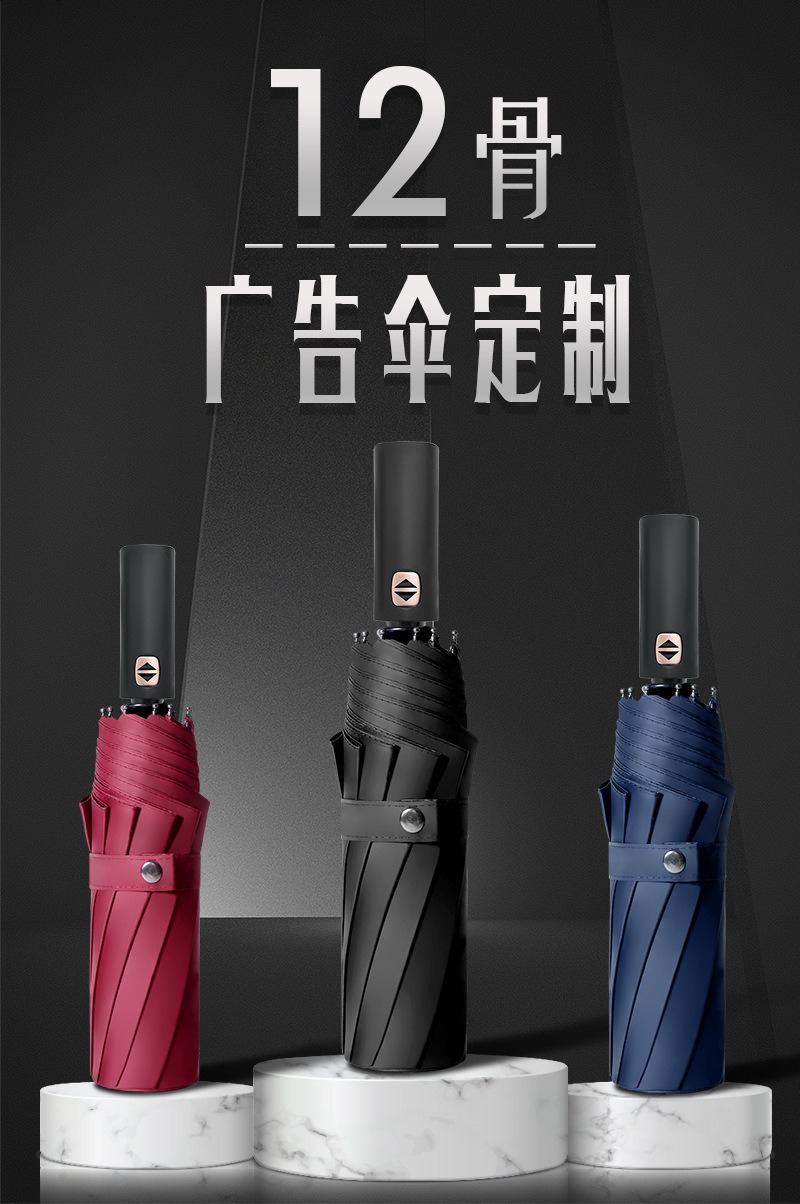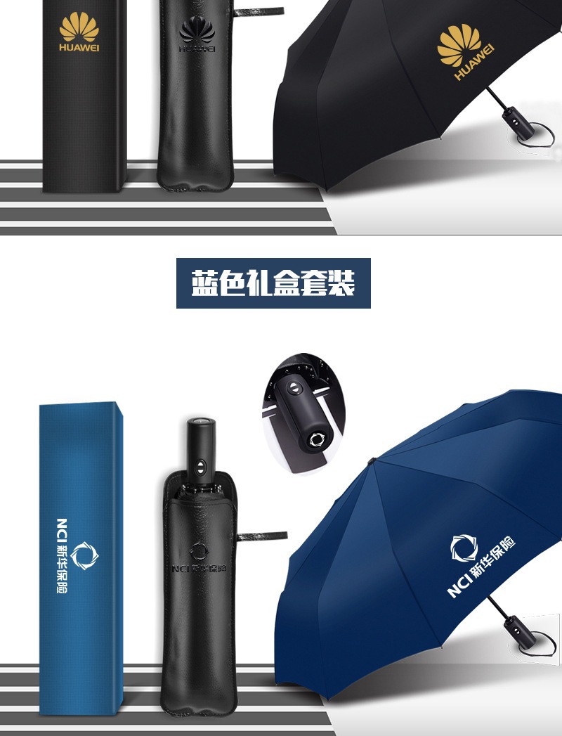 全自动三折雨伞折叠商务礼品伞定制logo广告伞黑胶遮阳晴雨伞批发