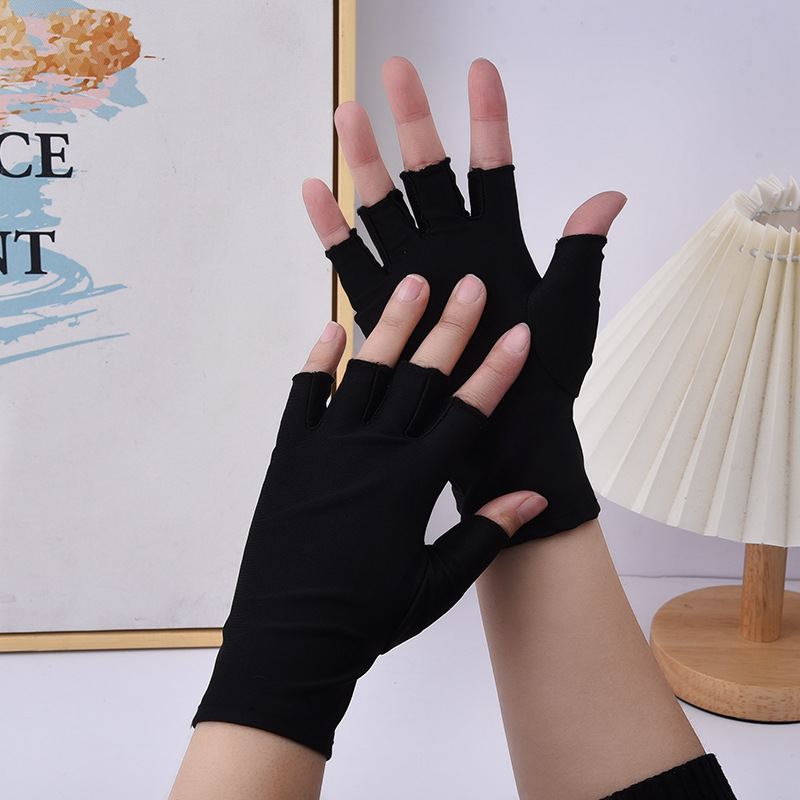 女士夏季采茶防晒半指手套美甲半截露指手套开车薄款骑行手套