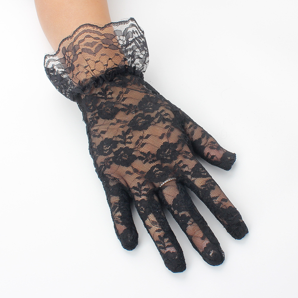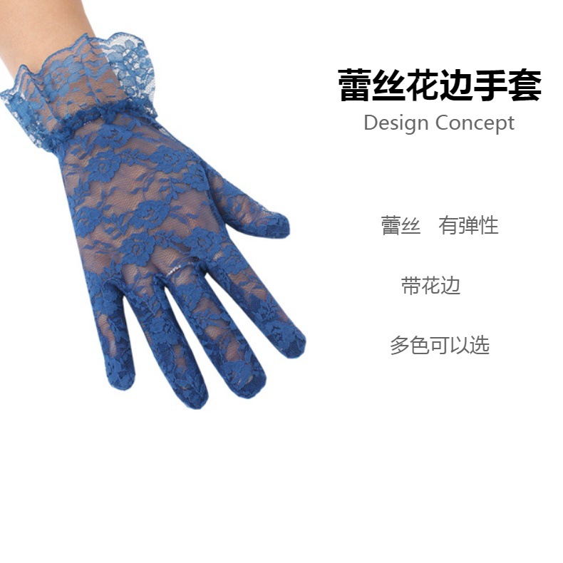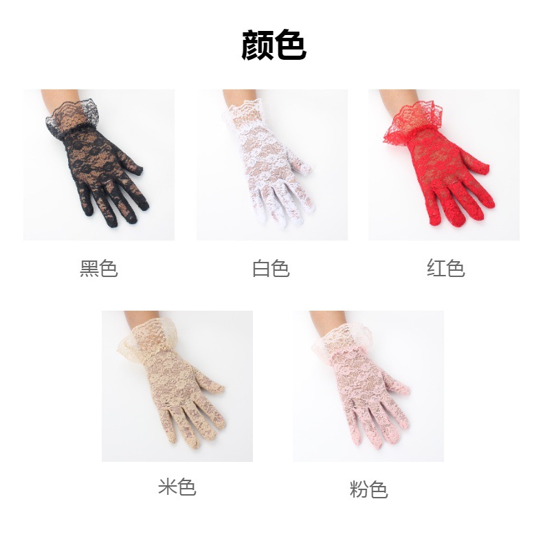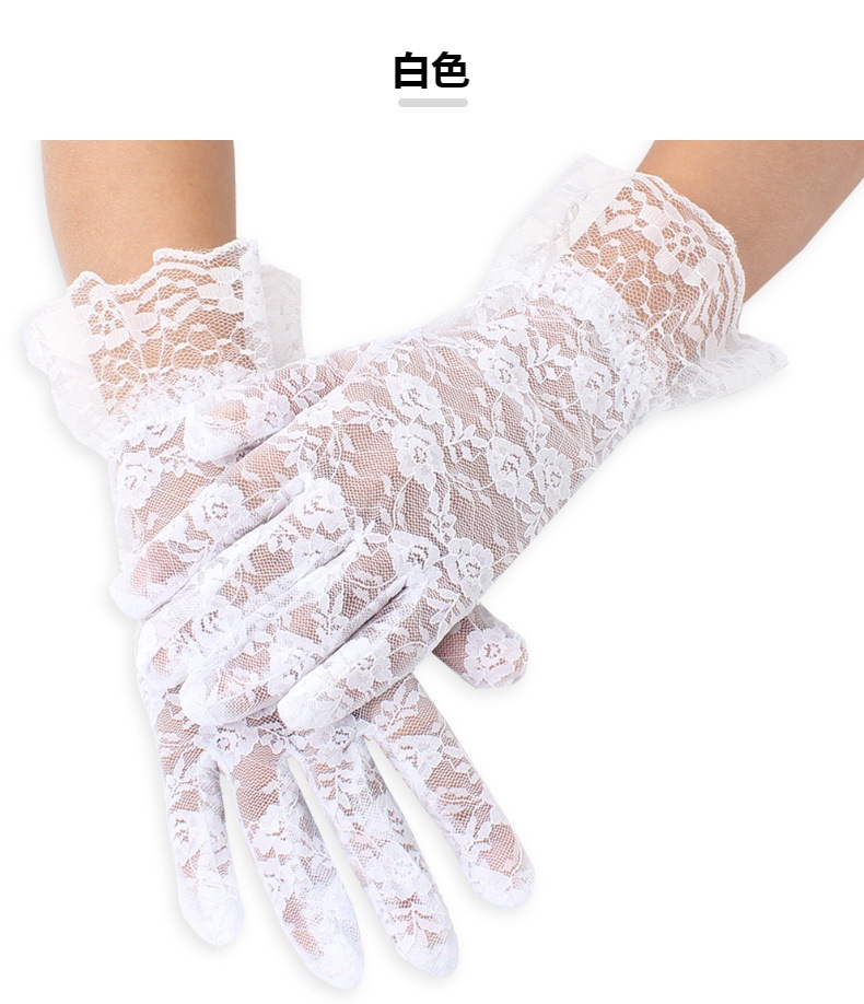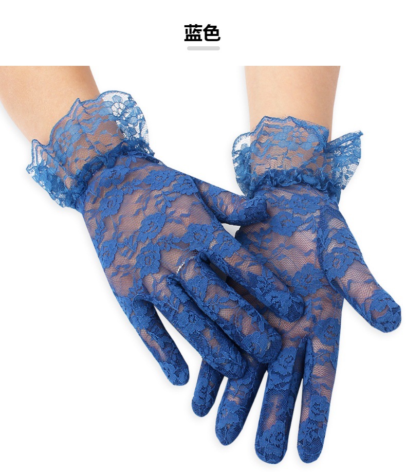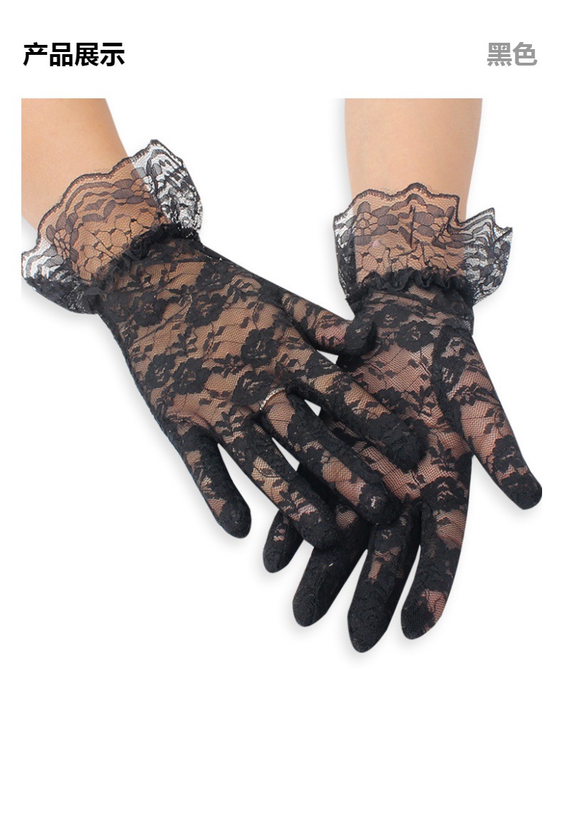 夏季性感新娘大花边蕾丝手套短开车电动车骑行遮阳防晒手套黑白蓝