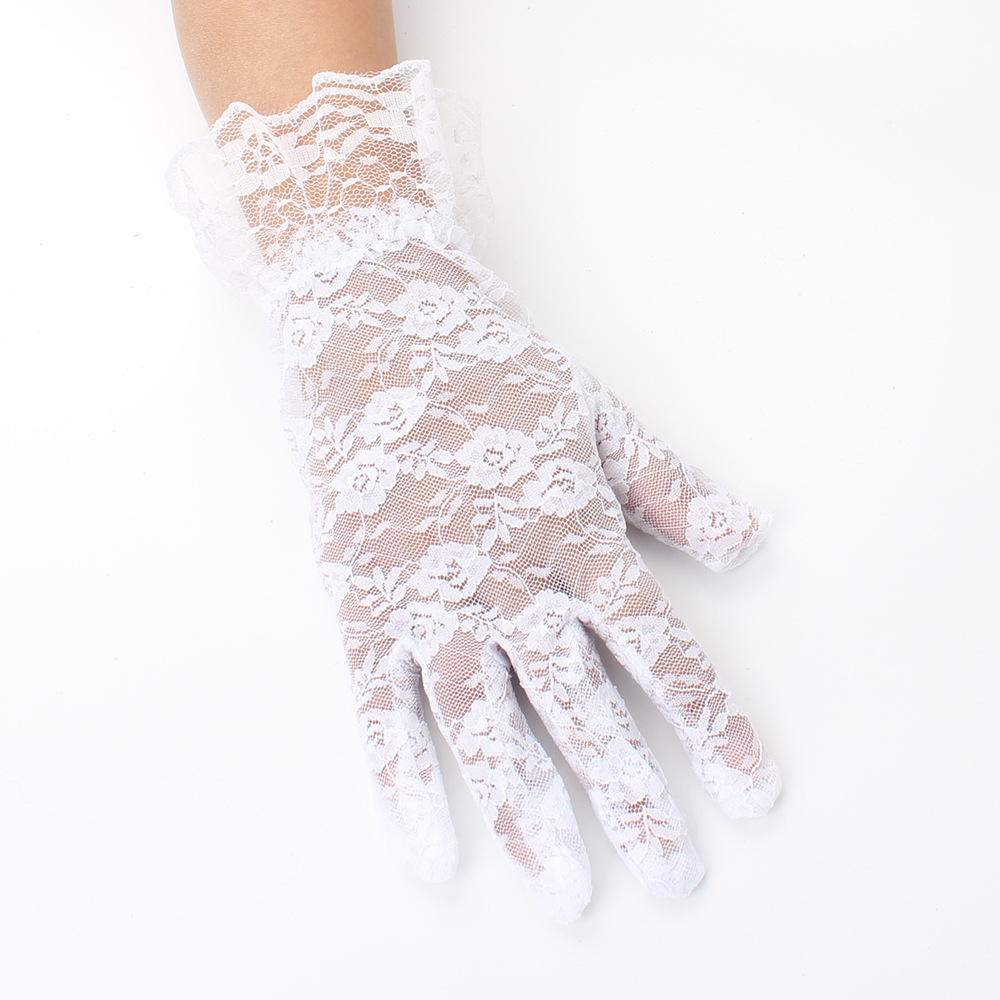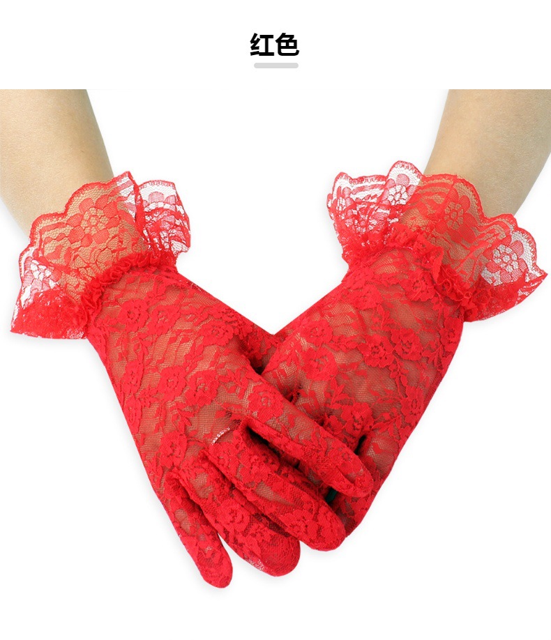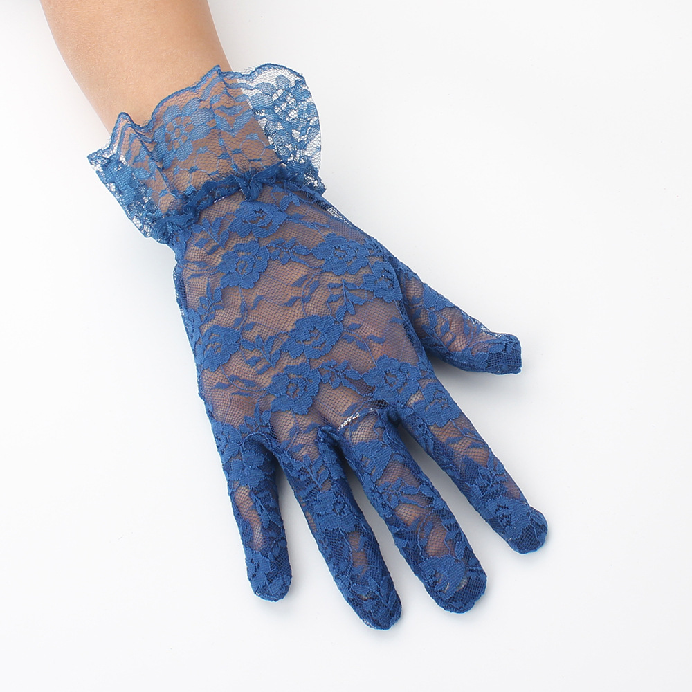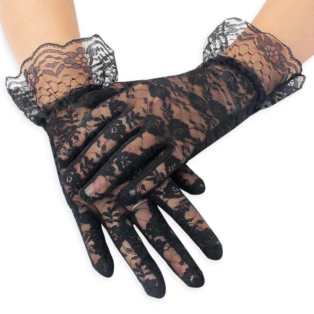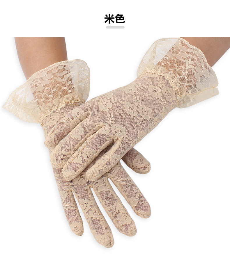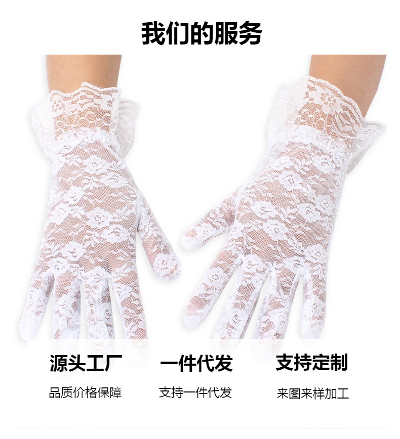 夏季性感新娘大花边蕾丝手套短开车电动车骑行遮阳防晒手套黑白蓝