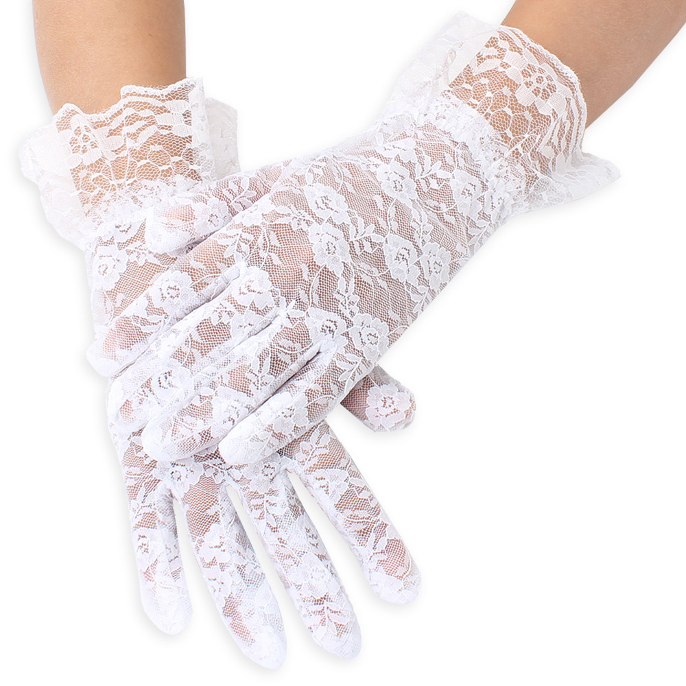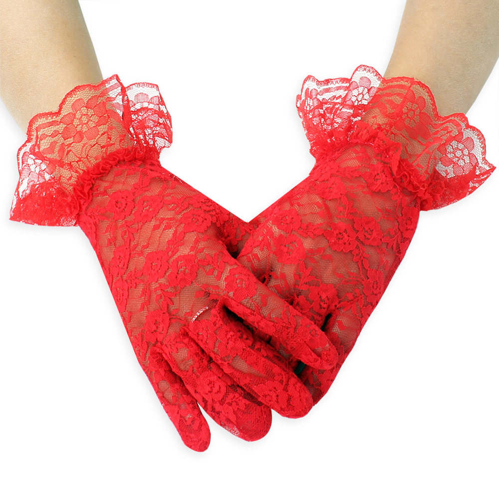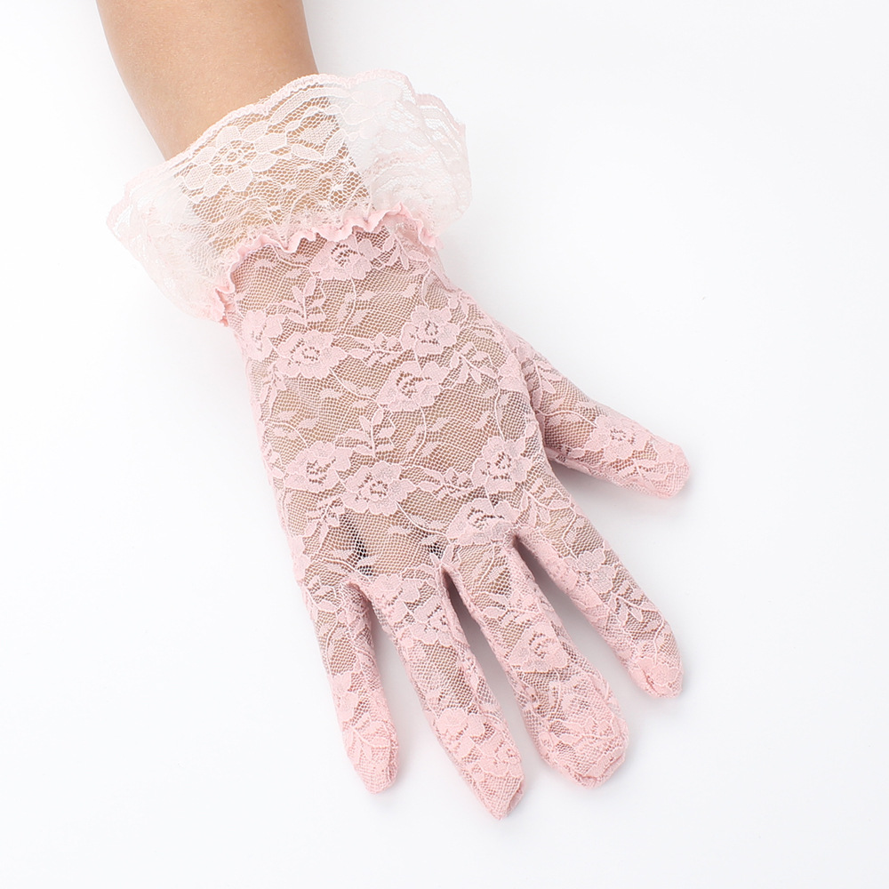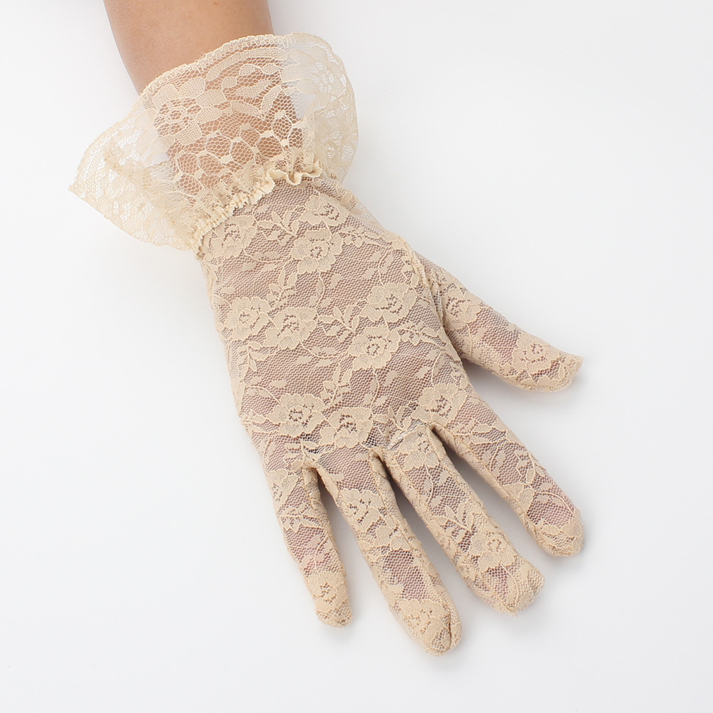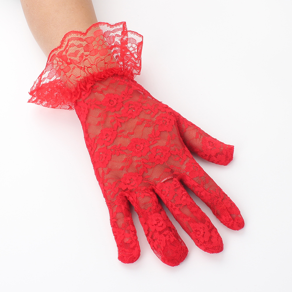 夏季性感新娘大花边蕾丝手套短开车电动车骑行遮阳防晒手套黑白蓝