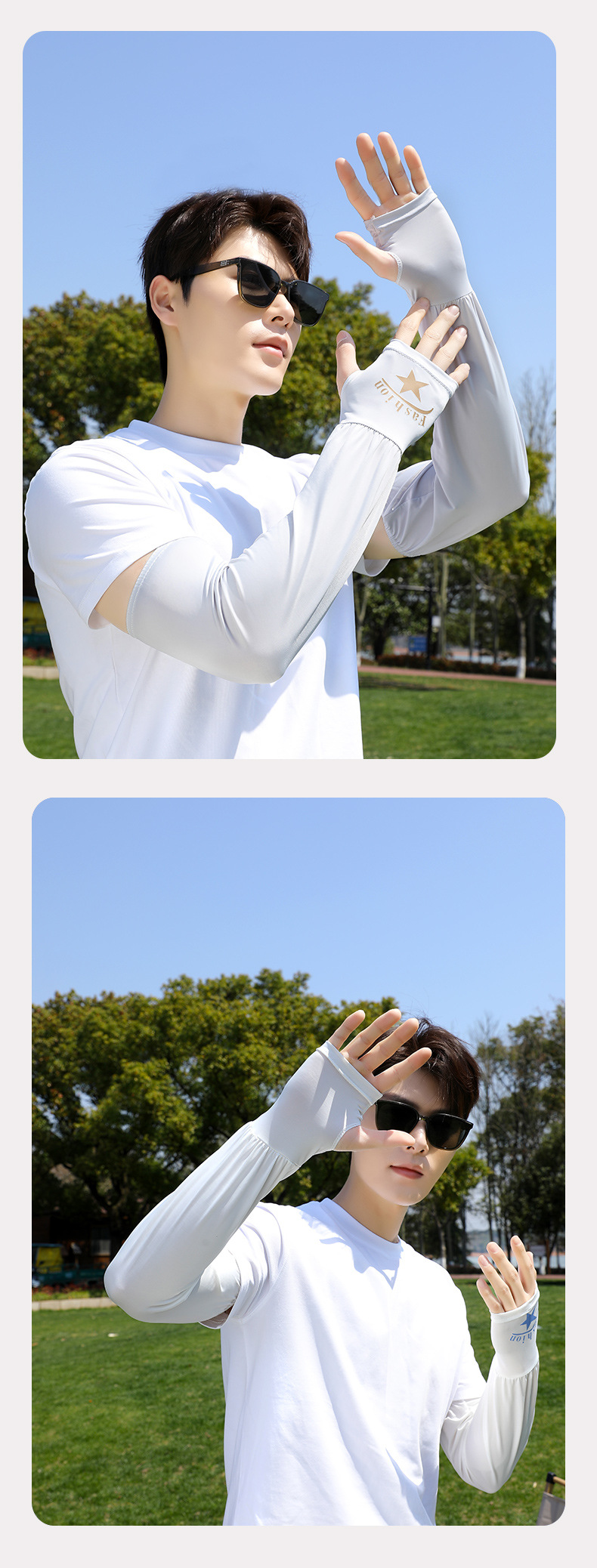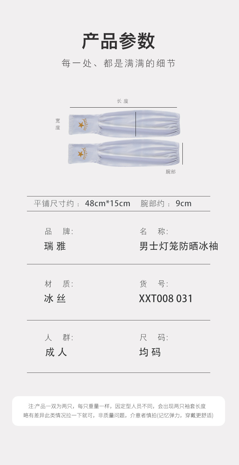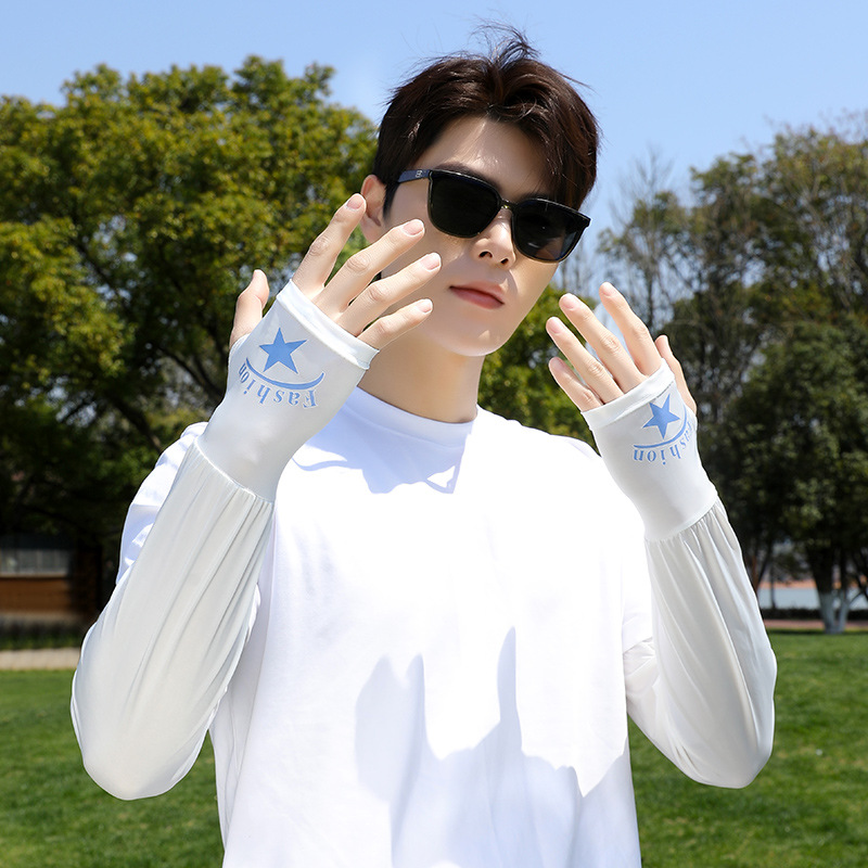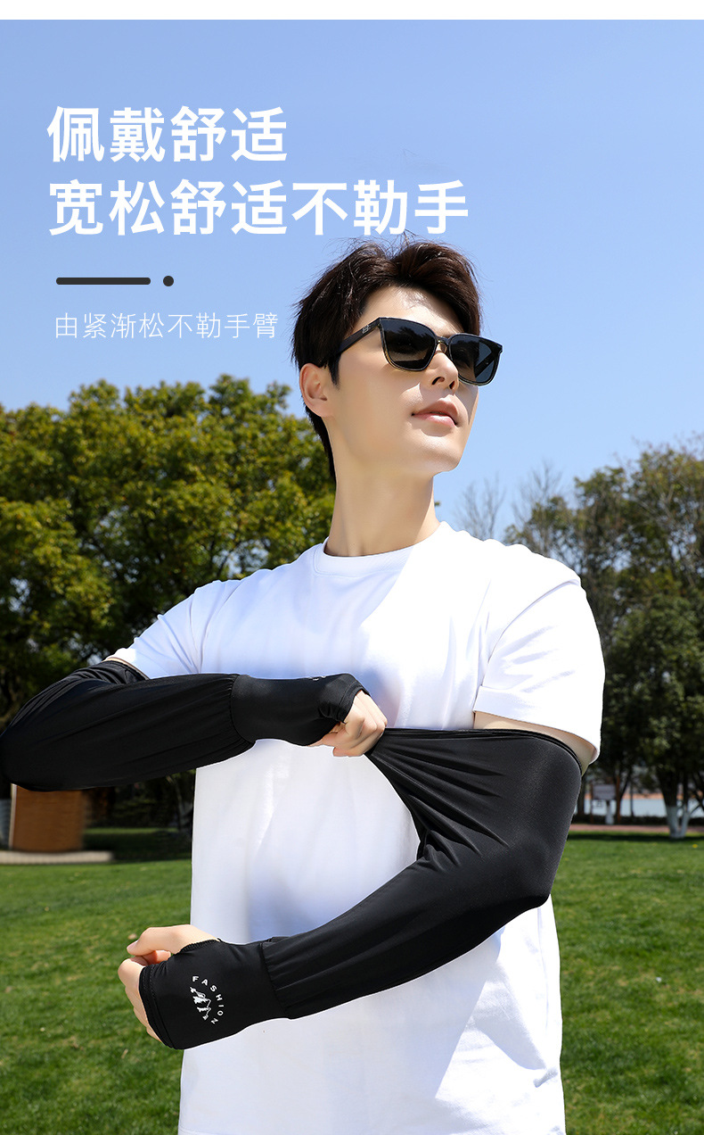瑞雅潮男冰丝宽松袖套户外防晒护臂手臂袖子男士透气胳膊冰丝手套
