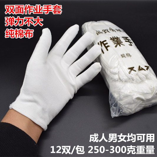 白色布手套劳保作业文玩防晒汗布盘珠开车礼仪手套12双起发快递价