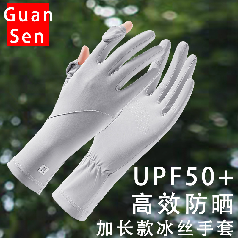 防晒手套女防紫外线夏季加长冰丝触屏户外防滑自行车薄开车骑行