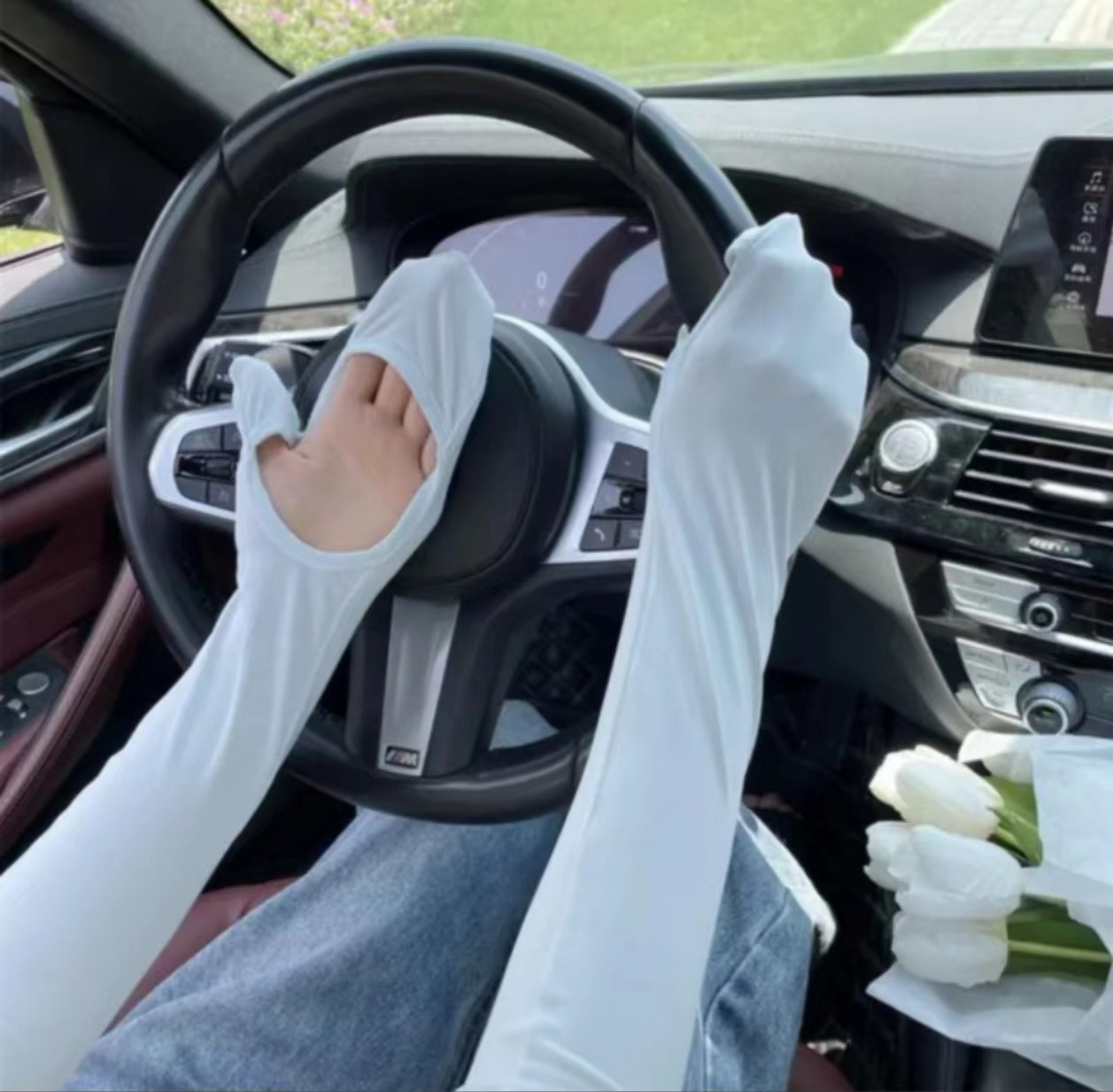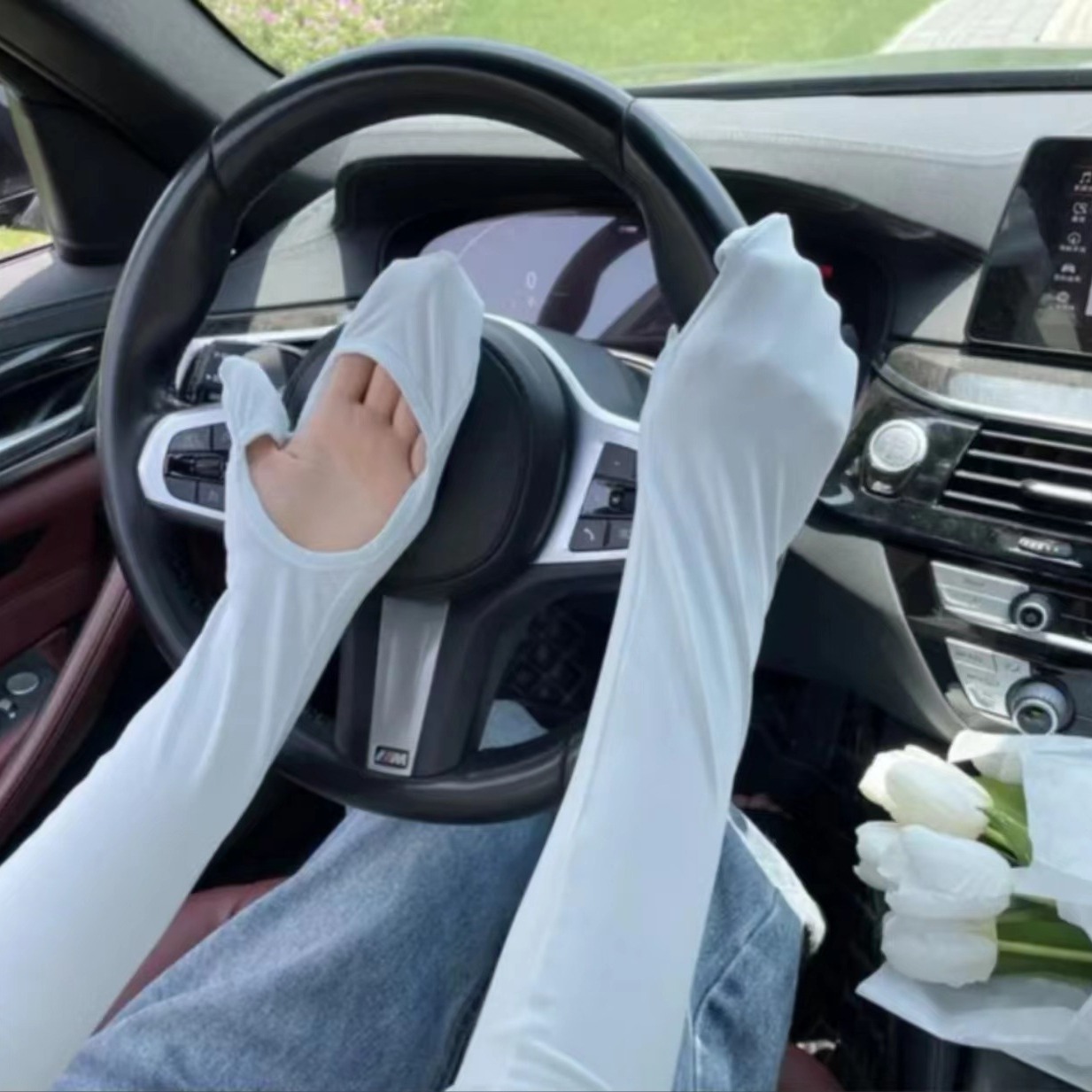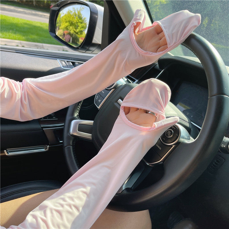 新款夏季包手指冰丝防晒袖套宽松冰袖户外骑行开车护手臂防紫外线