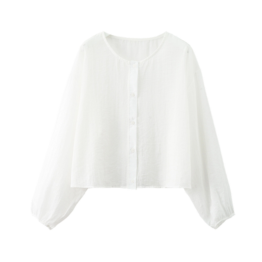 黄峥 韩系圆领长袖防晒衬衫女宽松纯色单排扣休闲显瘦上衣520480
