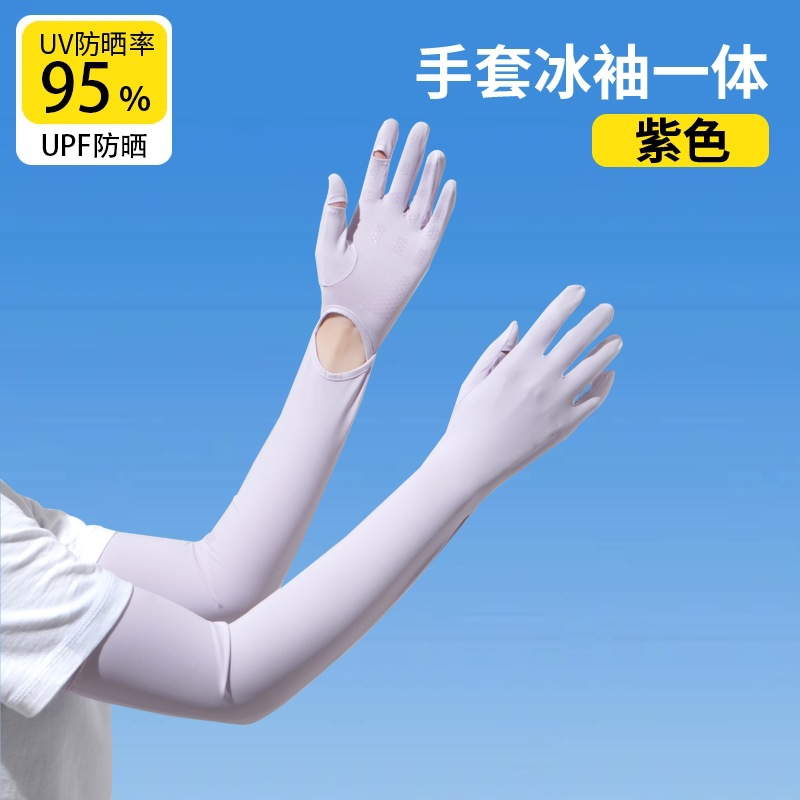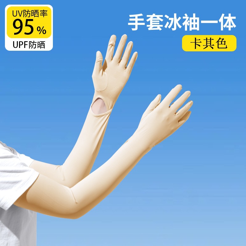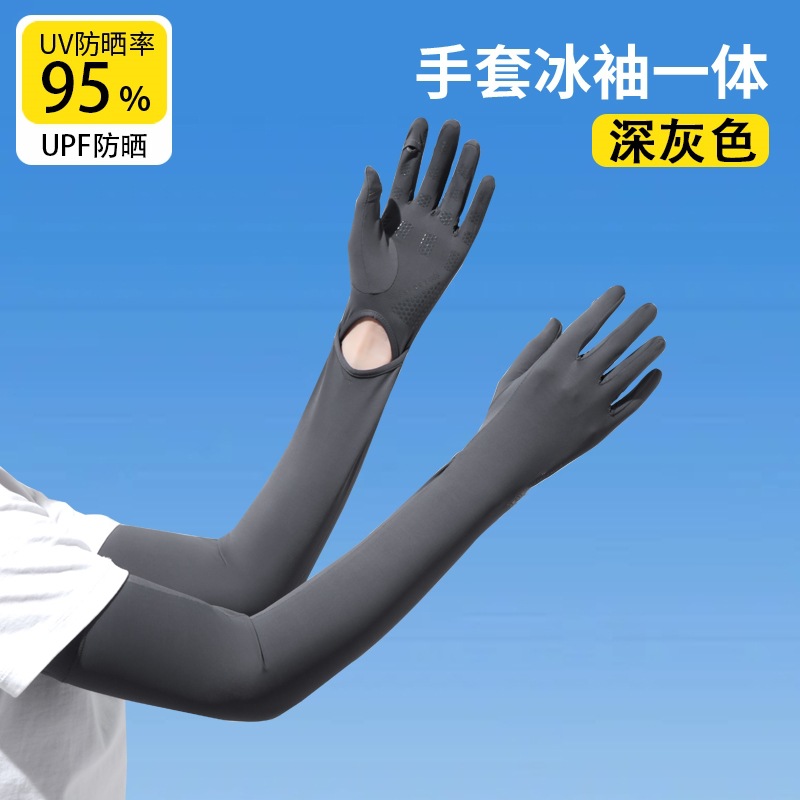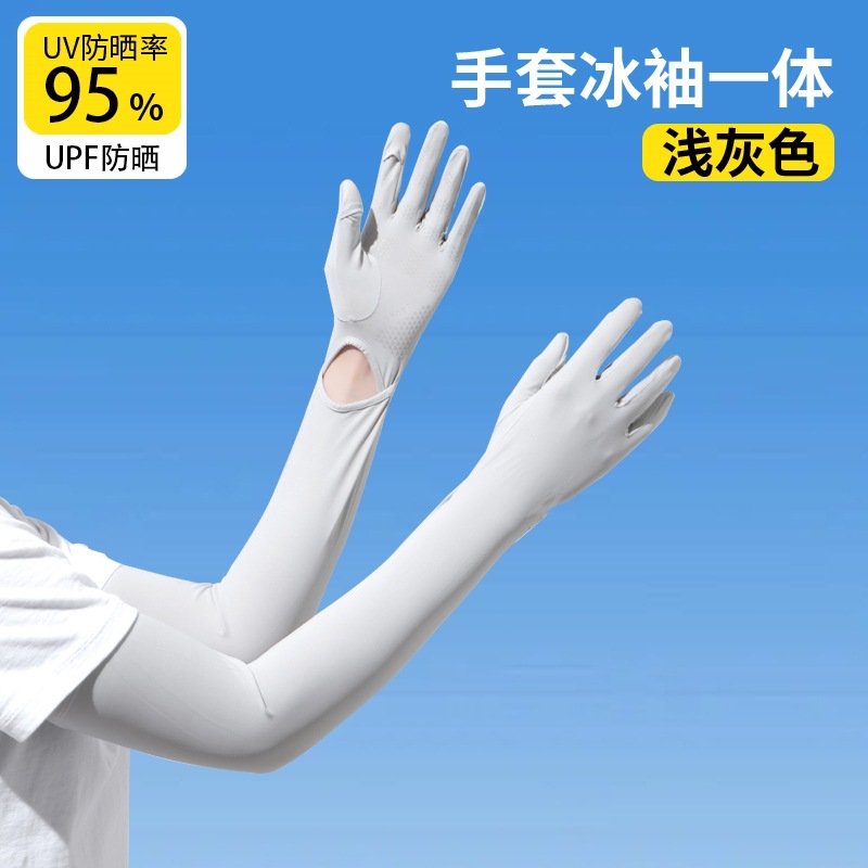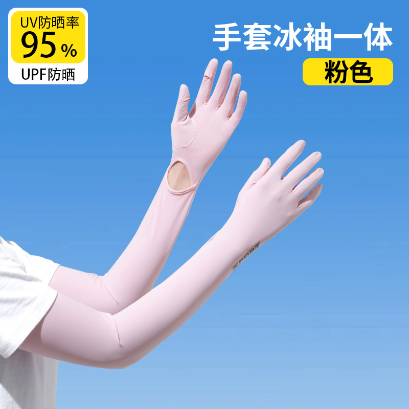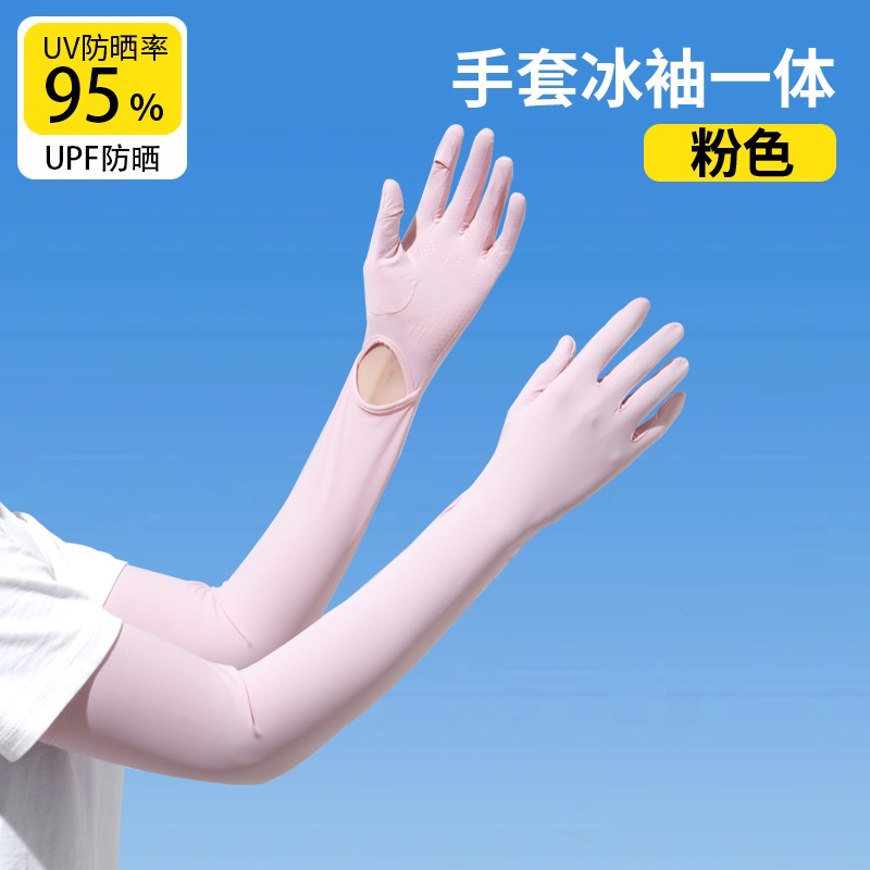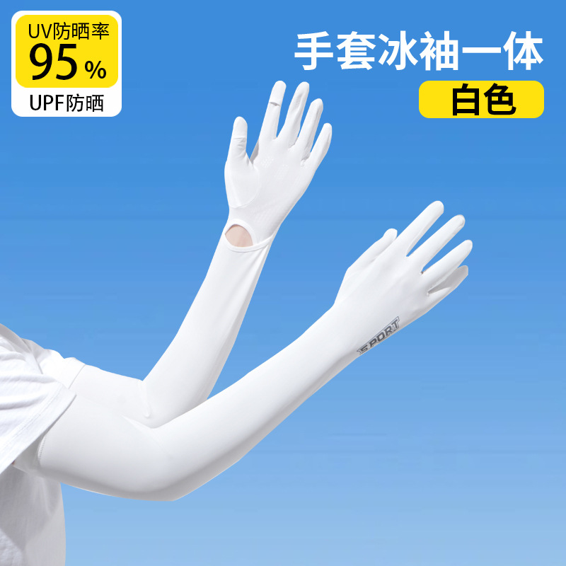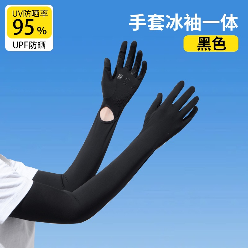 加长冰袖女款防晒手套袖套冰丝防紫外线连带手套夏季开车骑车套袖