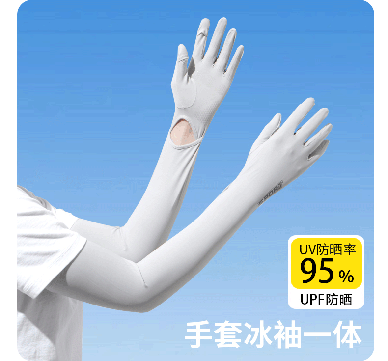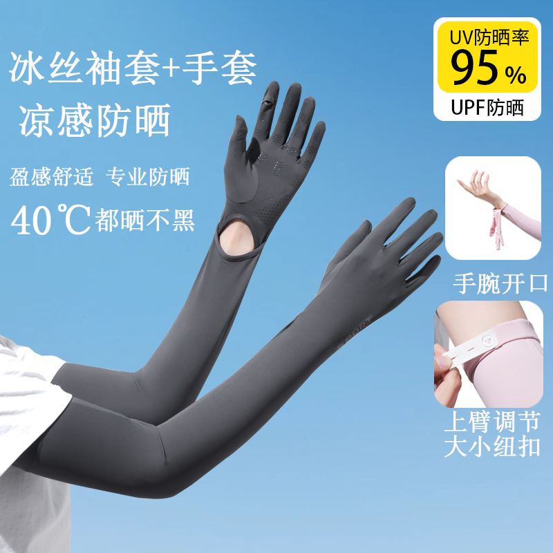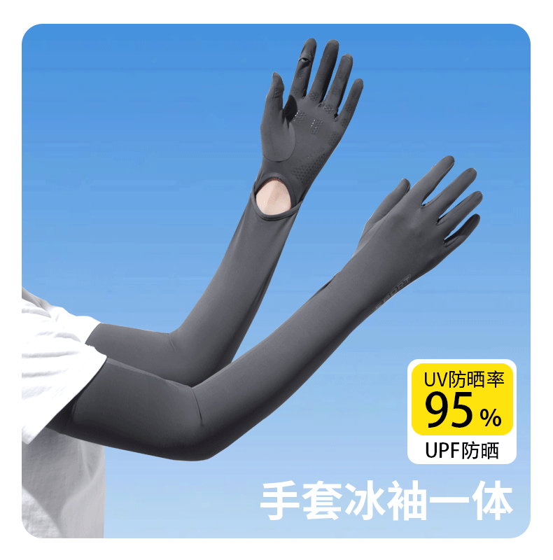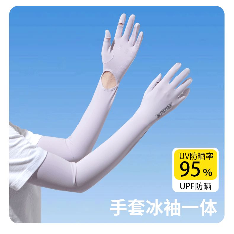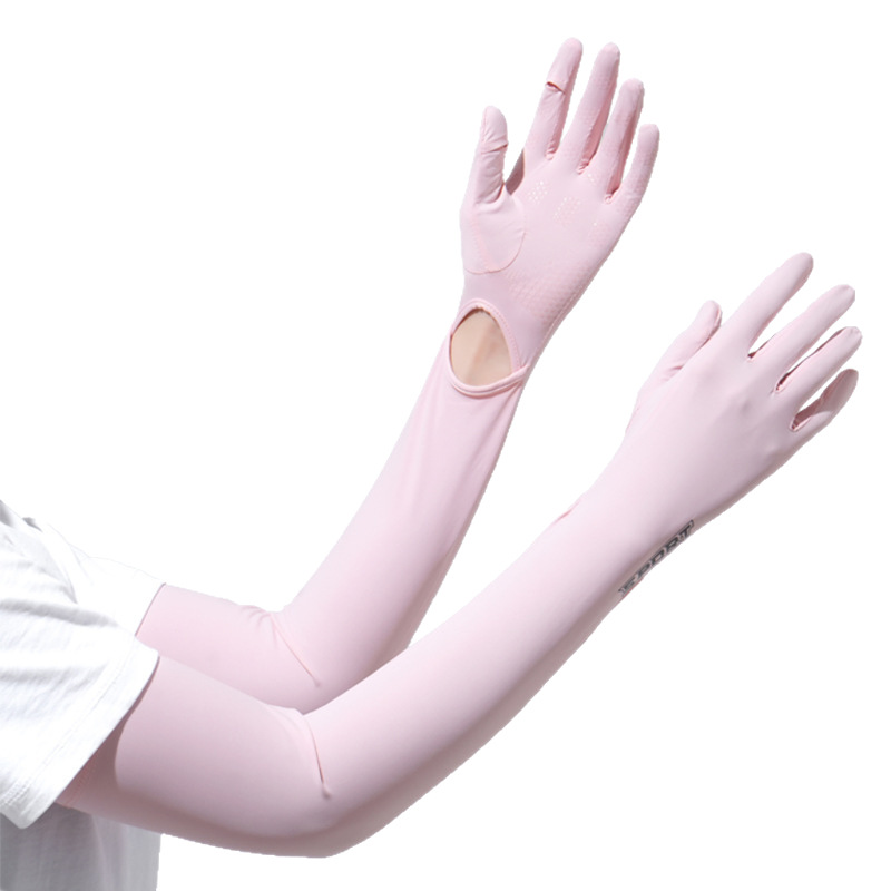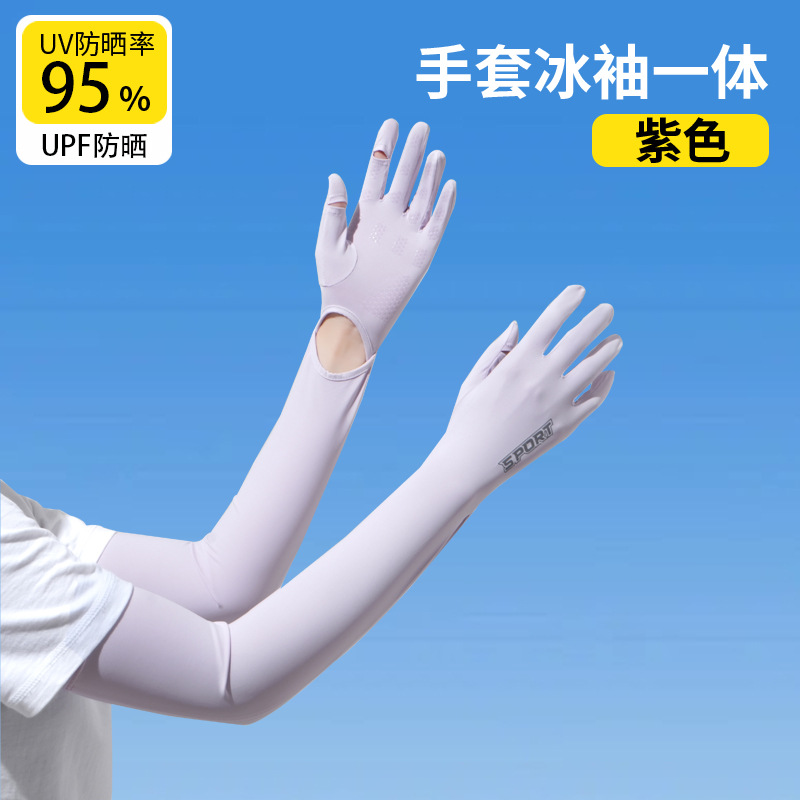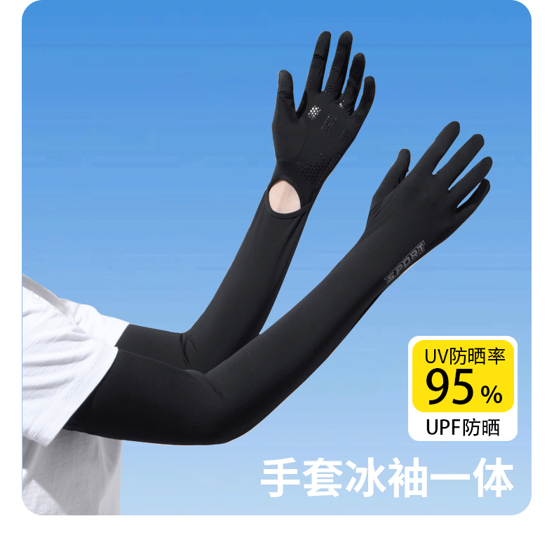 加长冰袖女款防晒手套袖套冰丝防紫外线连带手套夏季开车骑车套袖
