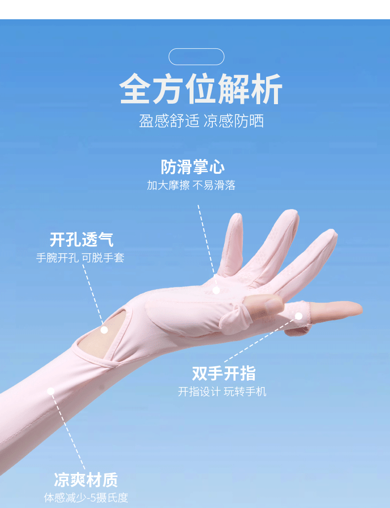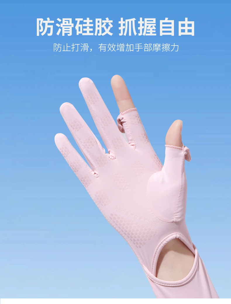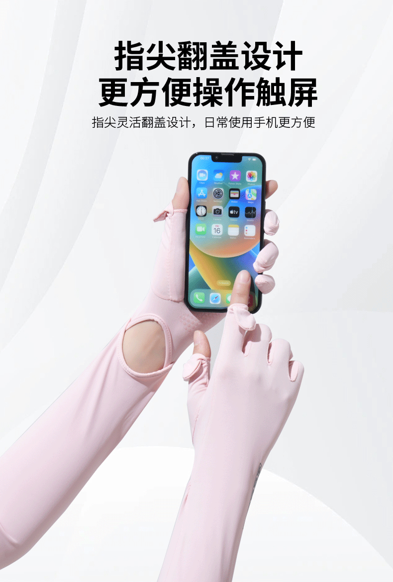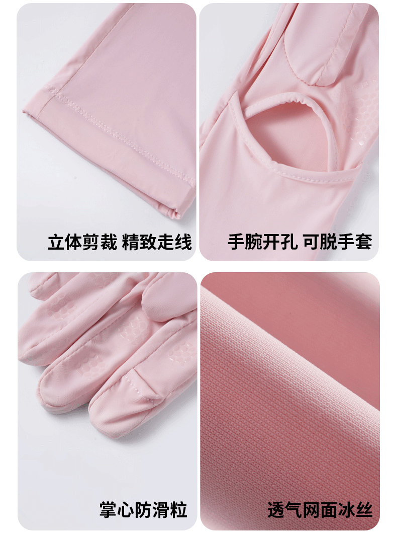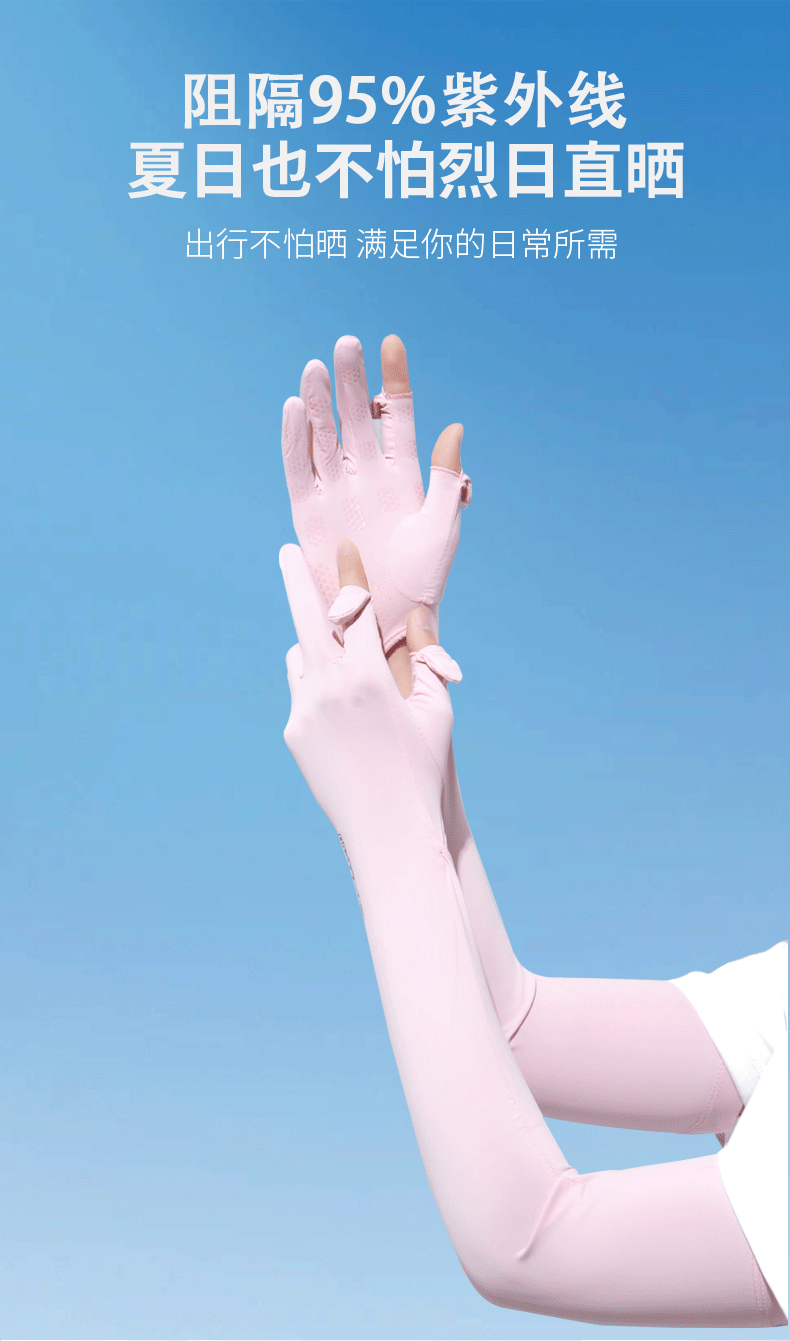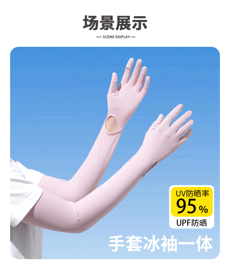 加长冰袖女款防晒手套袖套冰丝防紫外线连带手套夏季开车骑车套袖