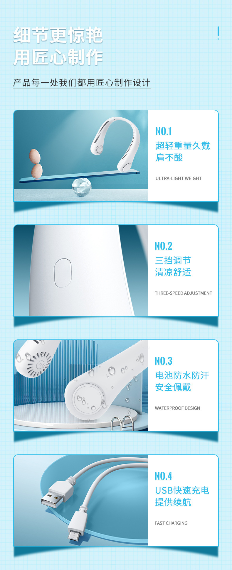 挂脖风扇便携式随身小型USB小风扇电风扇充电懒人迷你款降温神器