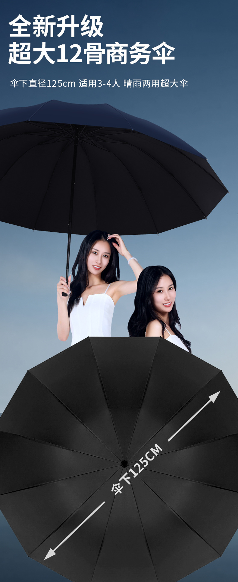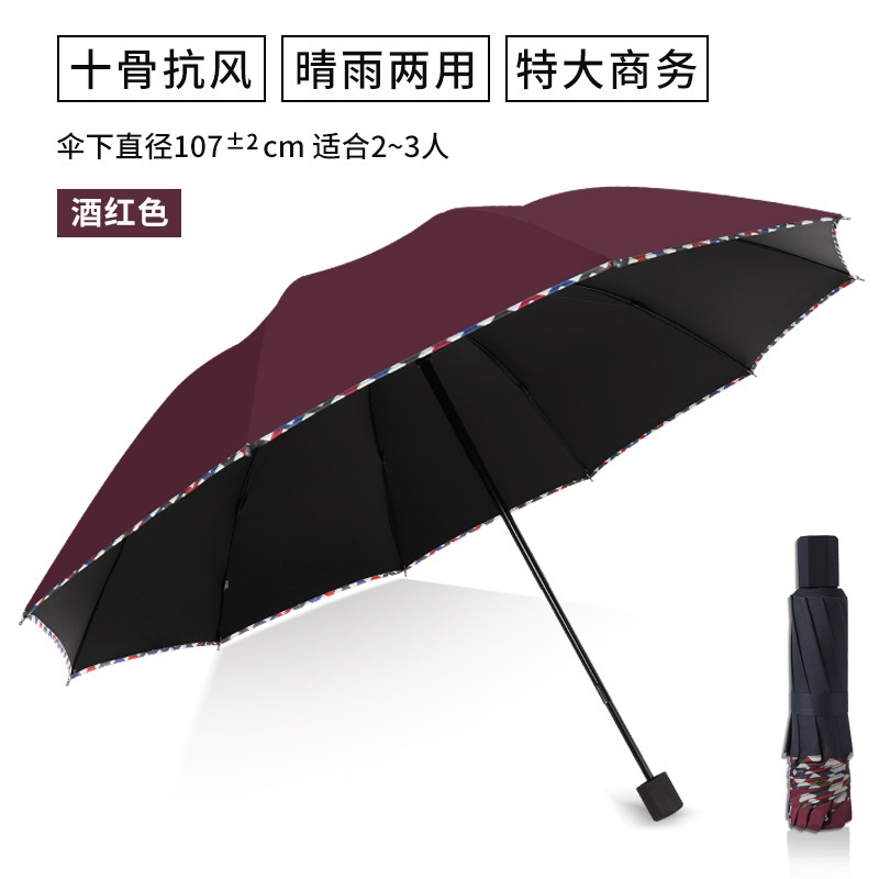 12骨手动雨伞加大加厚折叠黑胶晴雨两用伞定制遮阳防晒太阳伞批发