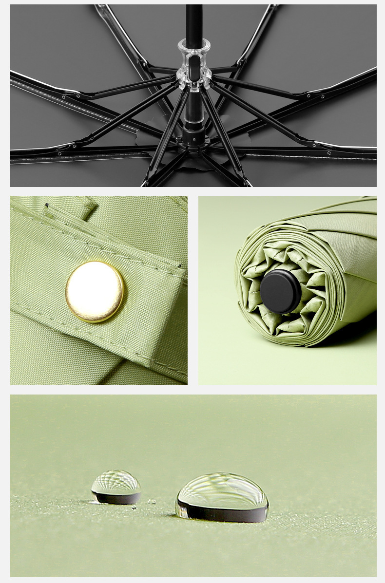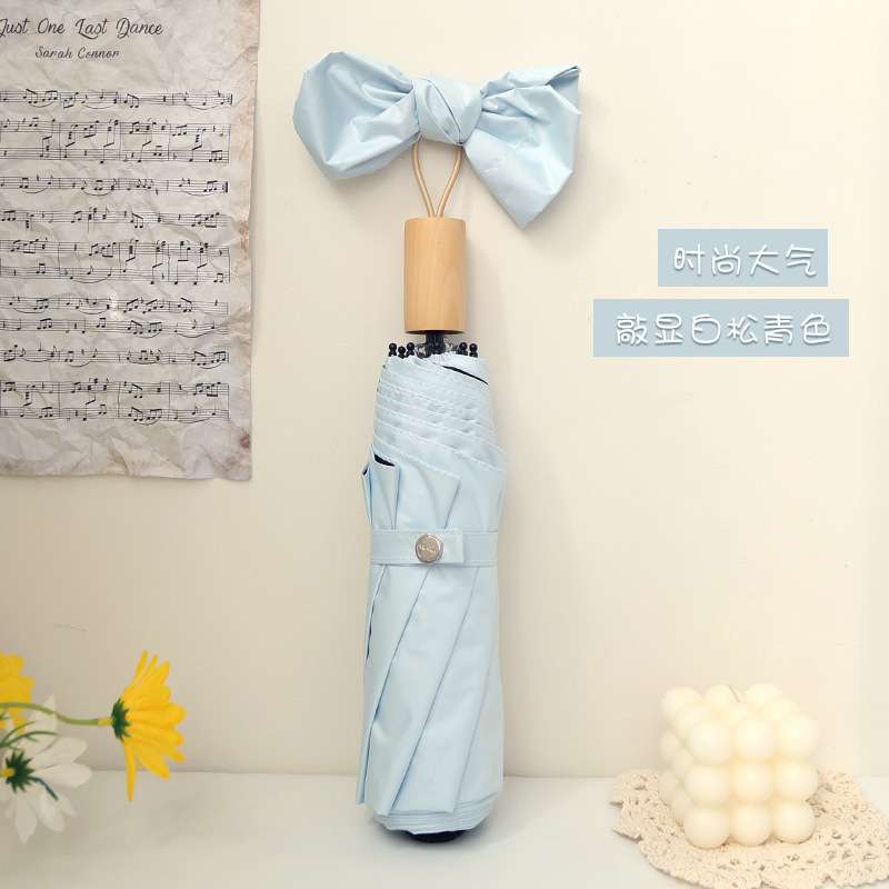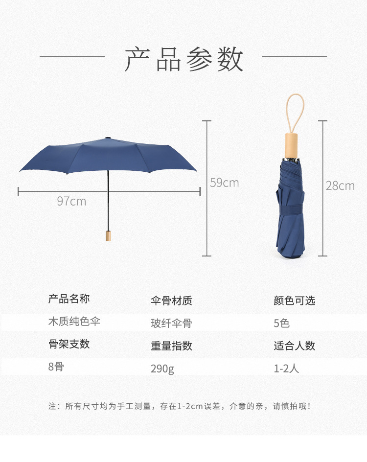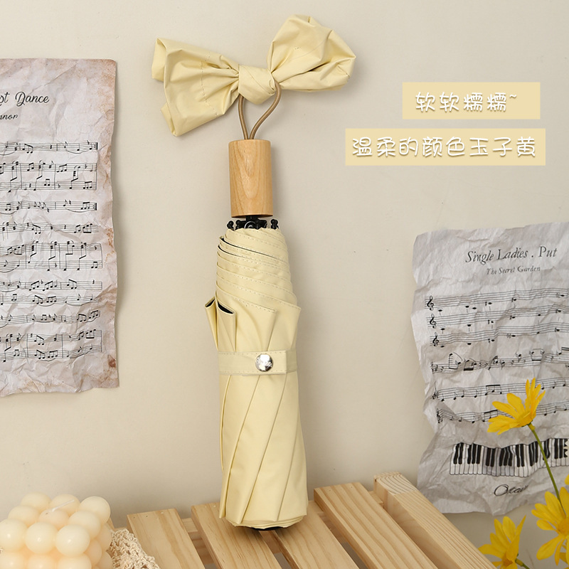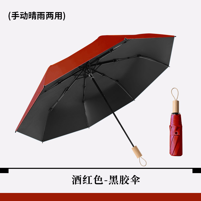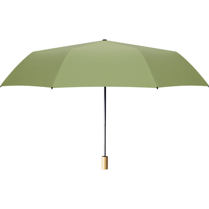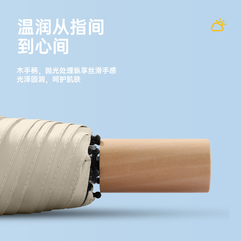 时尚九合板黑胶雨伞实木手柄小清新遮阳伞三折晴雨伞印刷logo广告