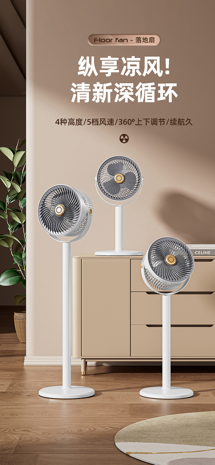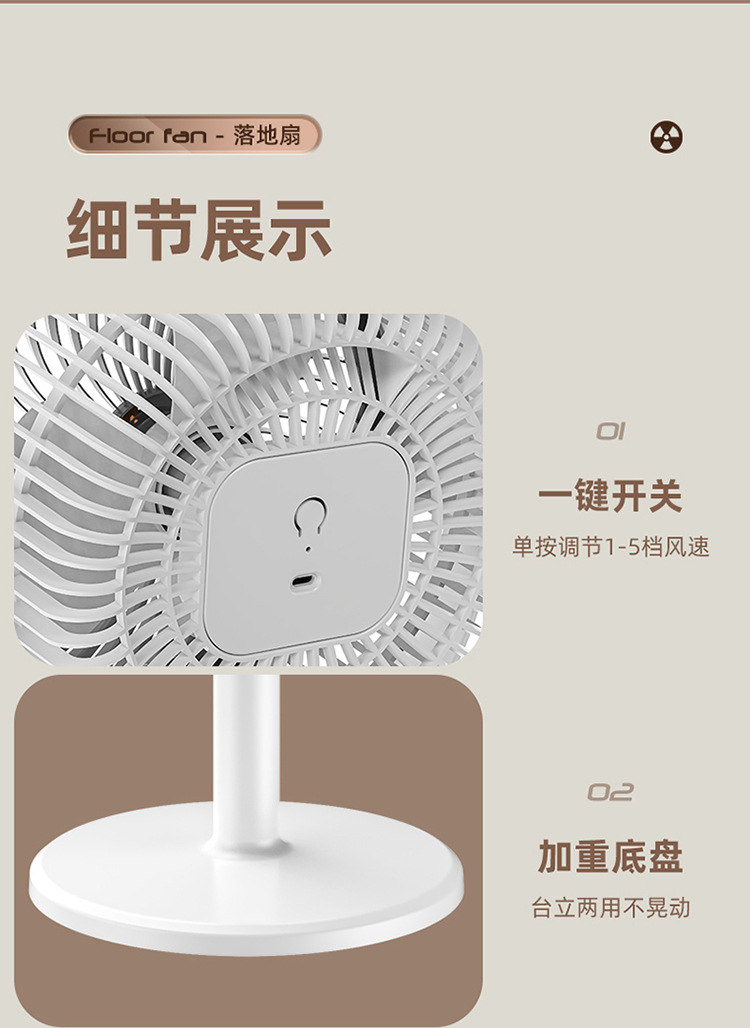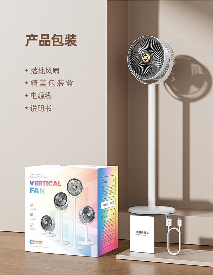 新款家用落地风扇充电款立式风扇办公室卧室落地扇台式循环扇厂家