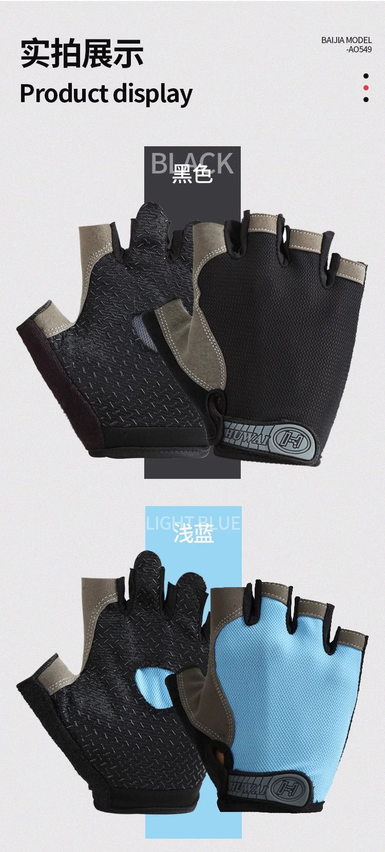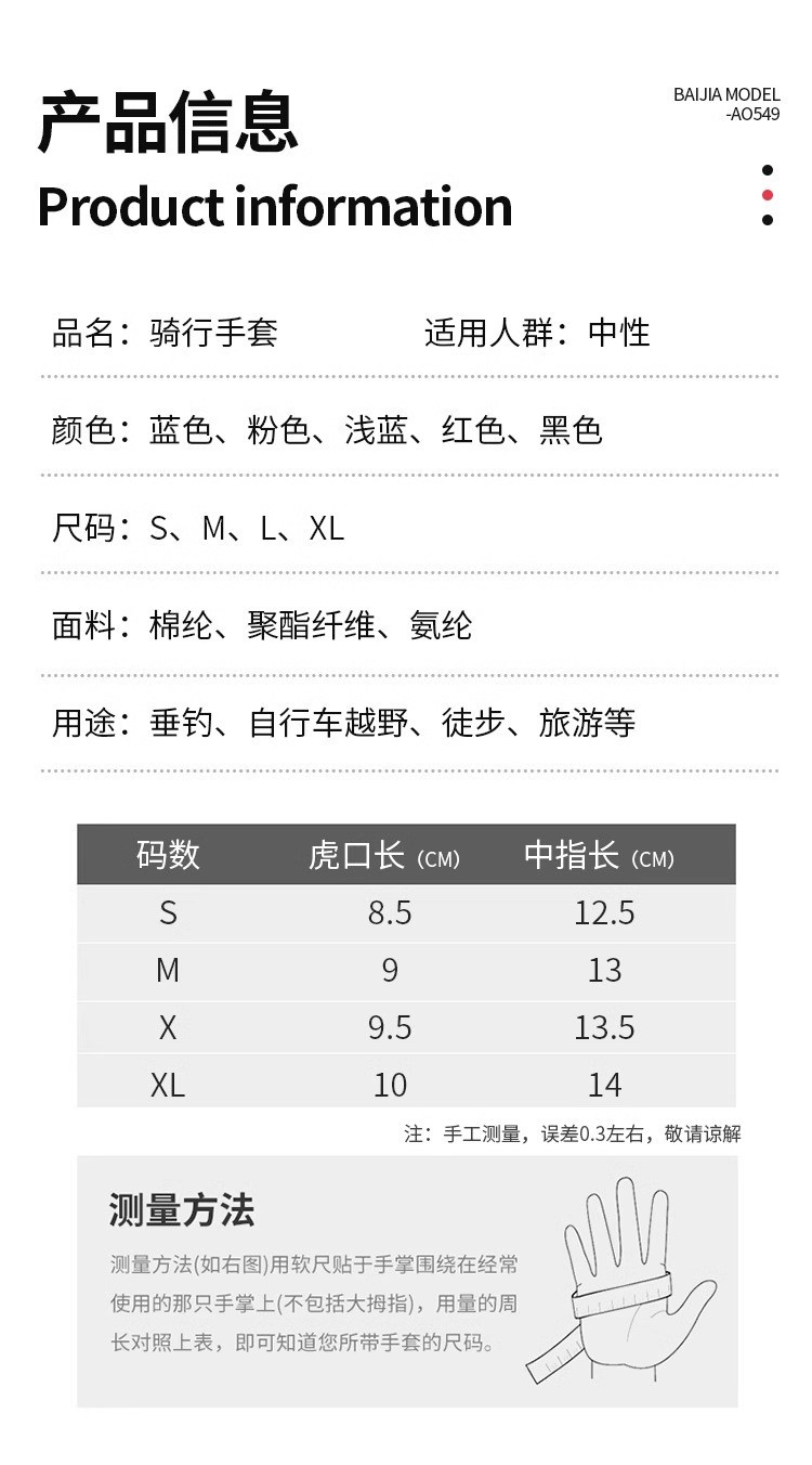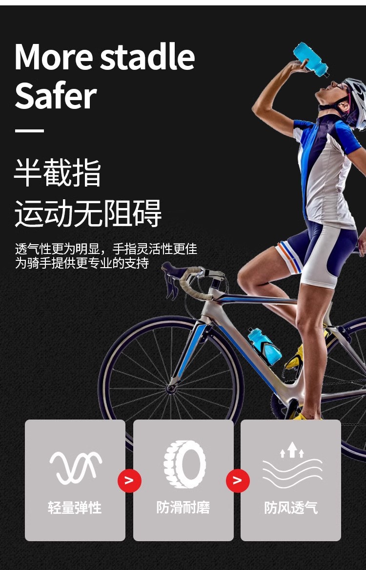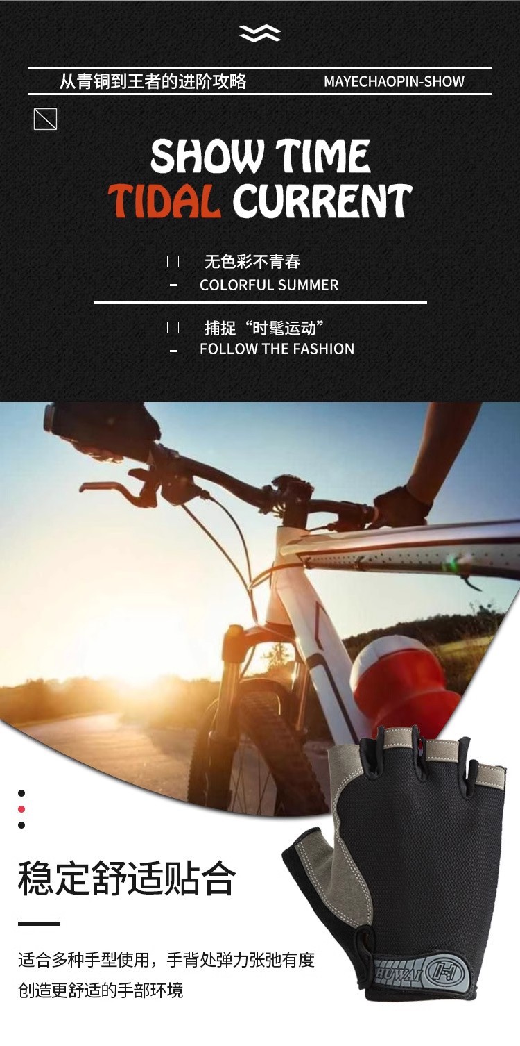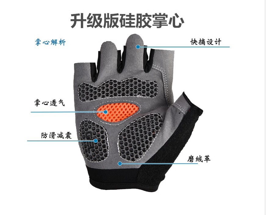 运动骑行硅胶减震薄款舒适登山骑行健身户外透气半指防晒男女手套