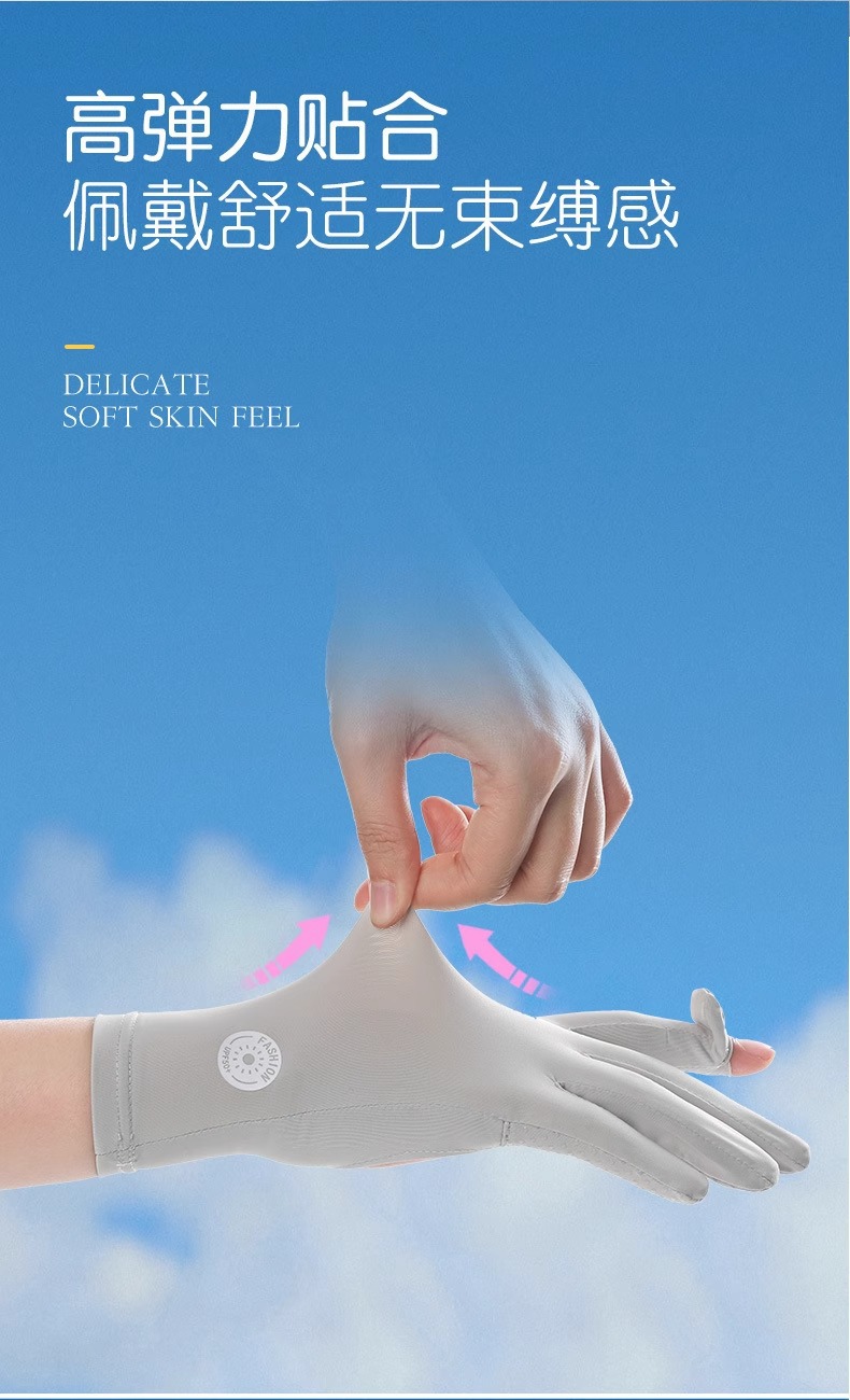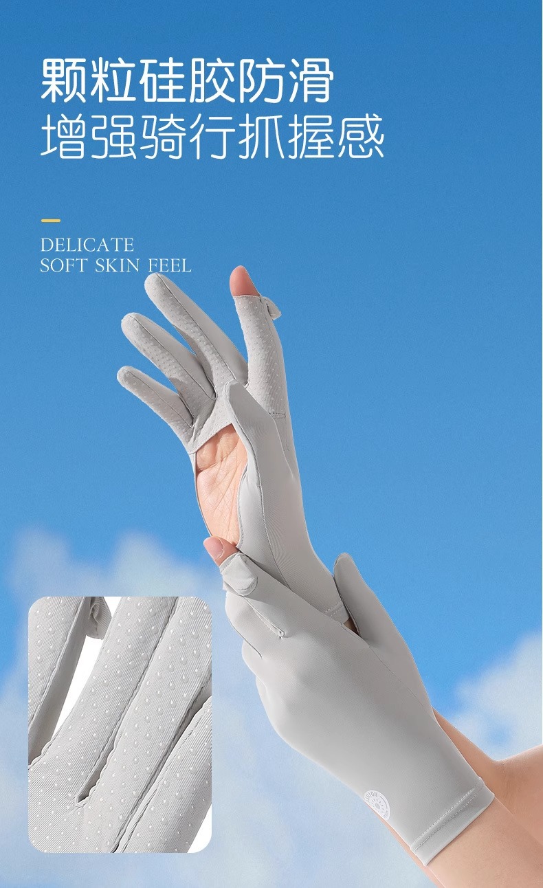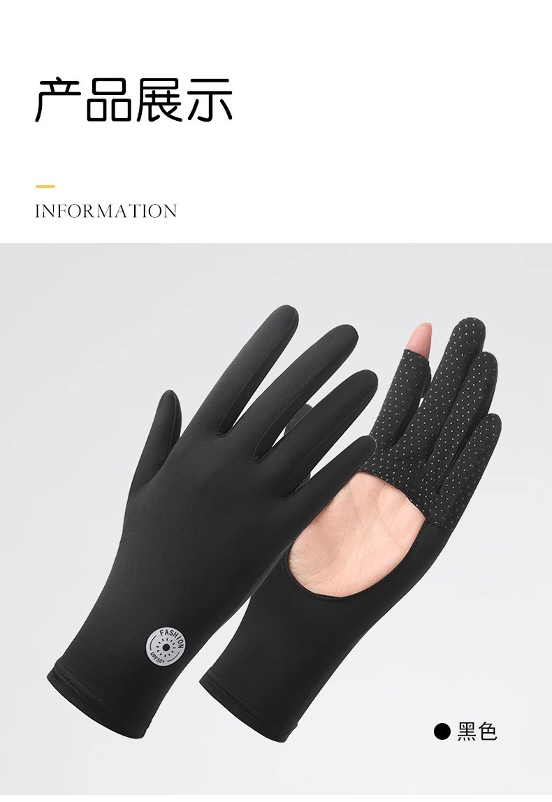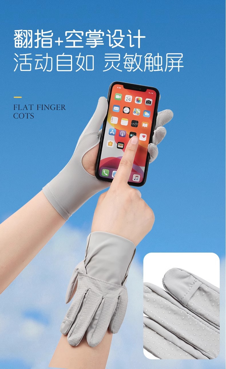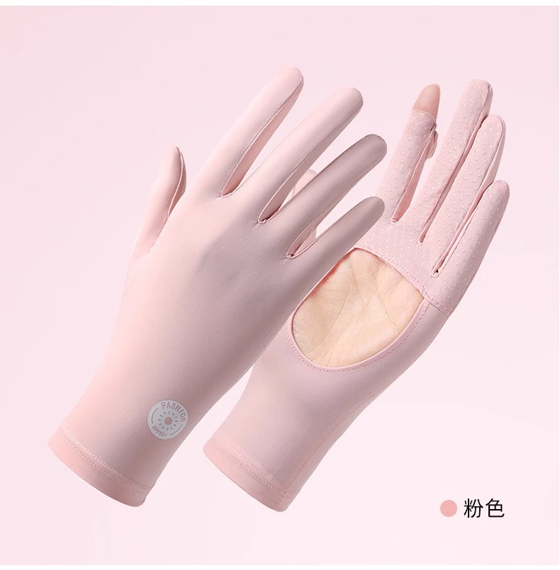 春夏防晒手套防紫外线掌心镂空女士冰丝户外运动骑行触屏薄款手套