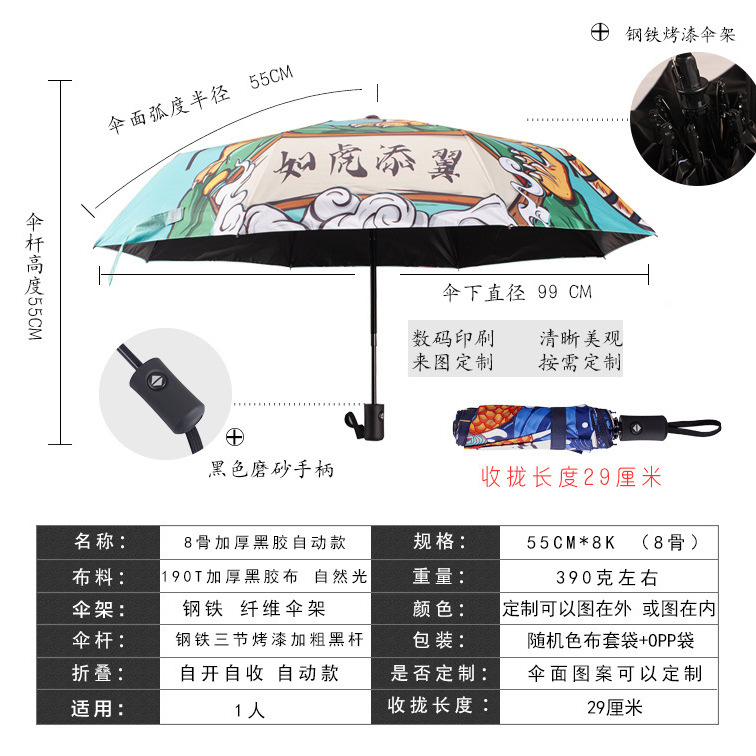 数码印雨伞周边动漫插画文创雨伞数码印满版图案广告伞防晒礼品伞