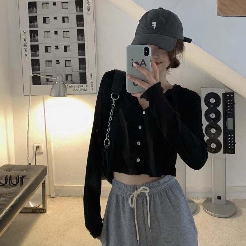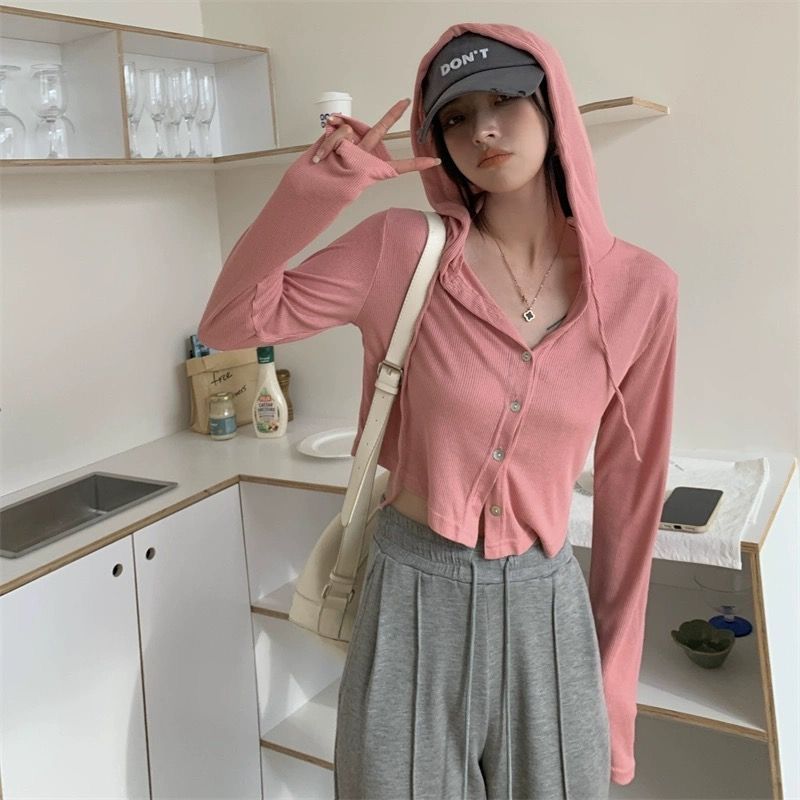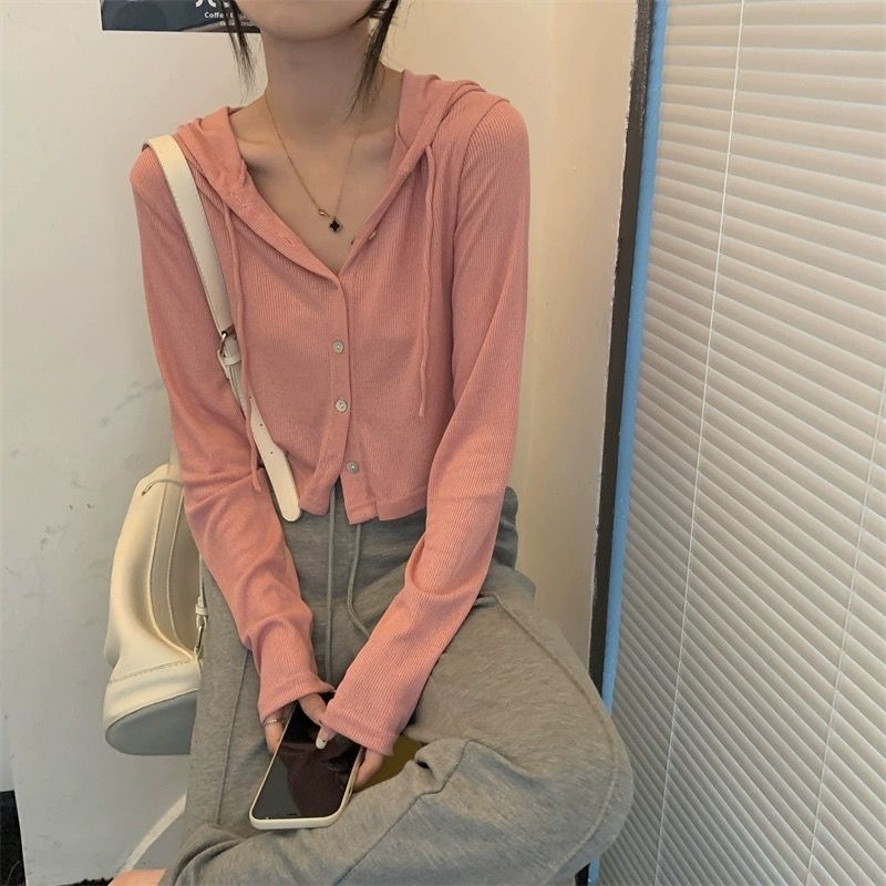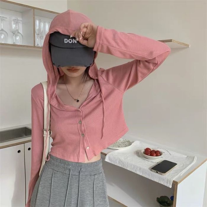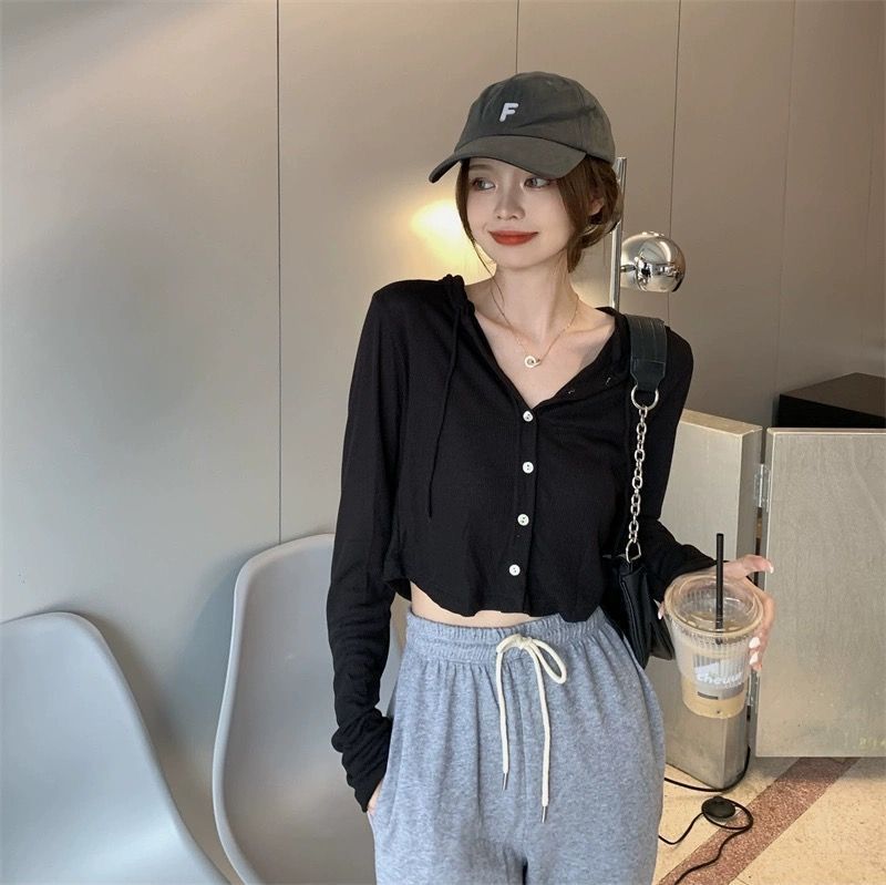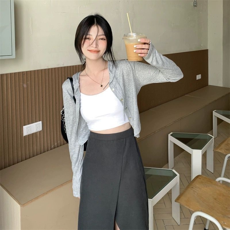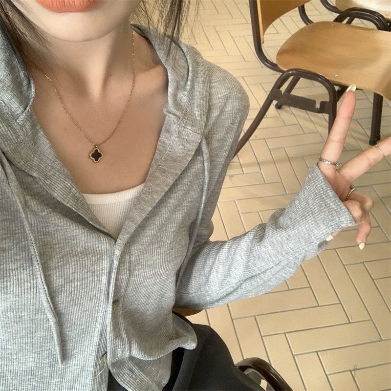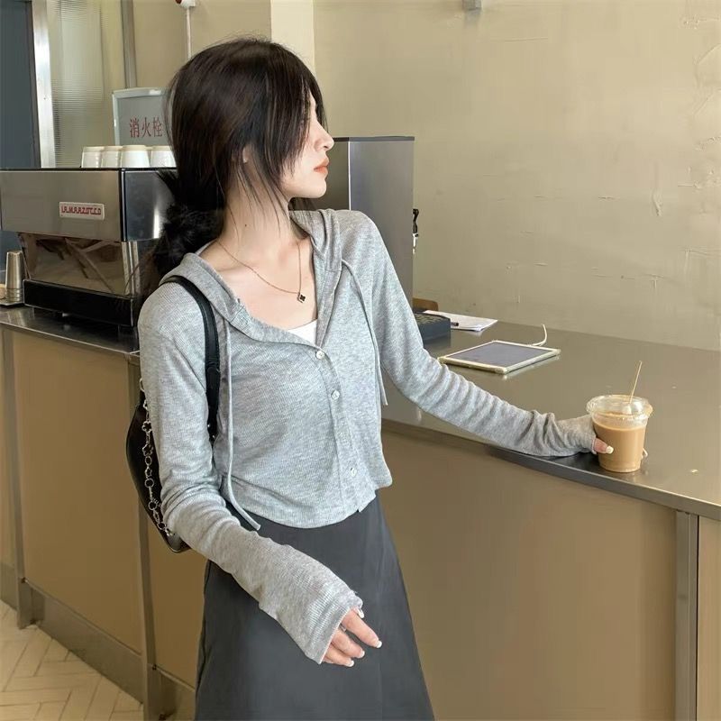 灰色防晒开衫女夏2025新款小个子修身连帽外套长袖短款上衣打底衫