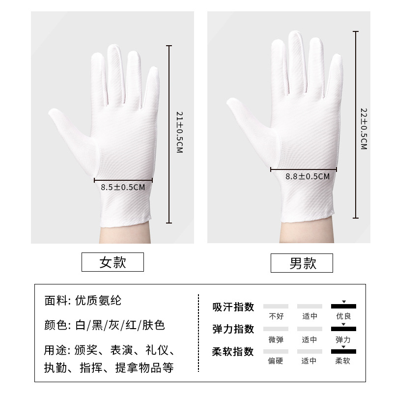 男士氨纶防晒手套短薄款春夏礼仪白手套舞蹈高弹珠宝演出紧身手套