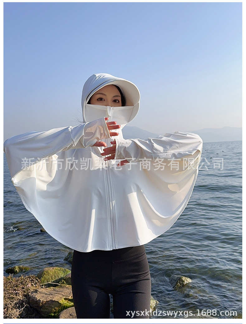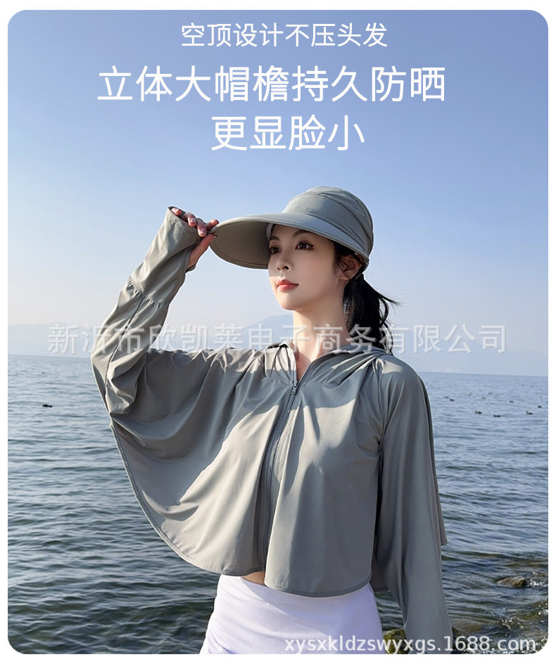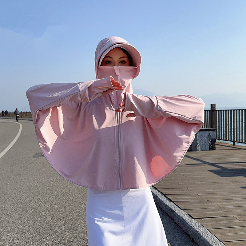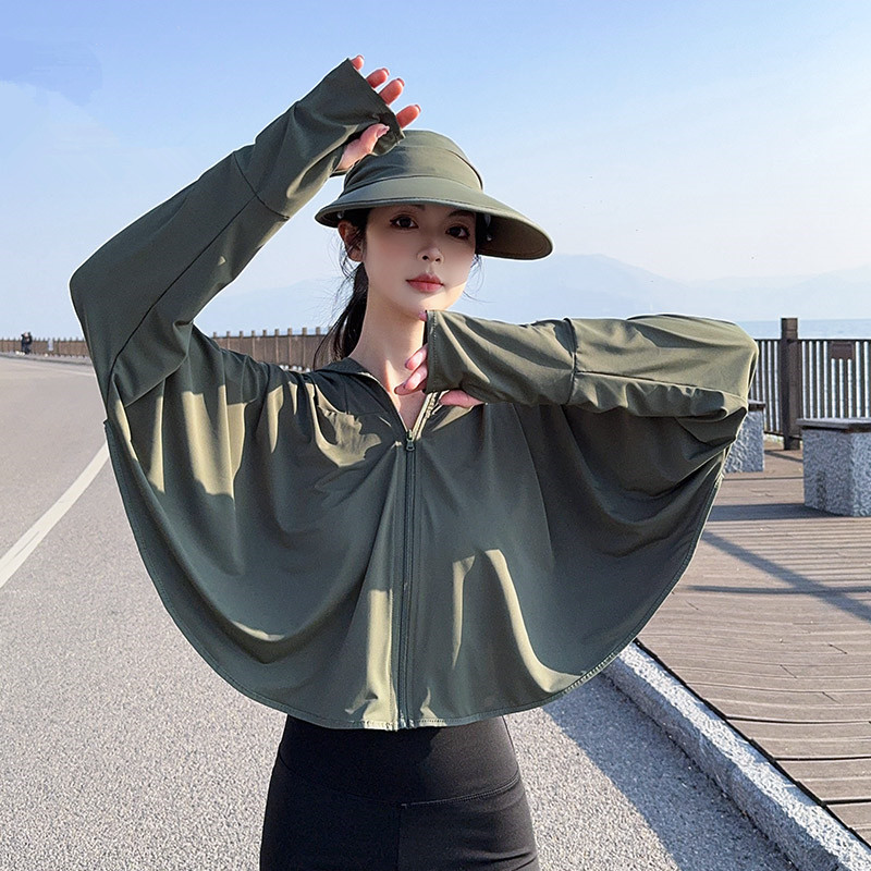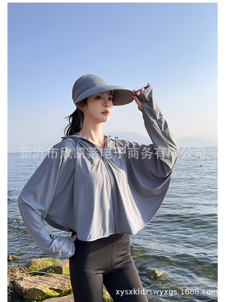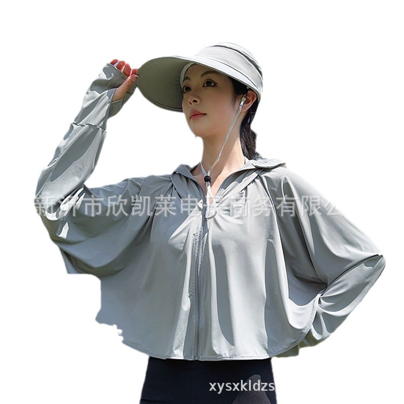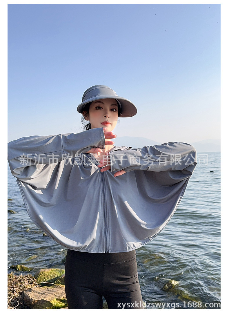 夏季女生防晒衣户外骑行短外套防紫外线透气薄蝙蝠衫宽松帽子披肩