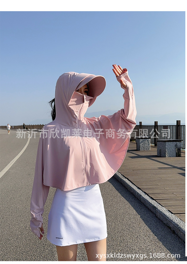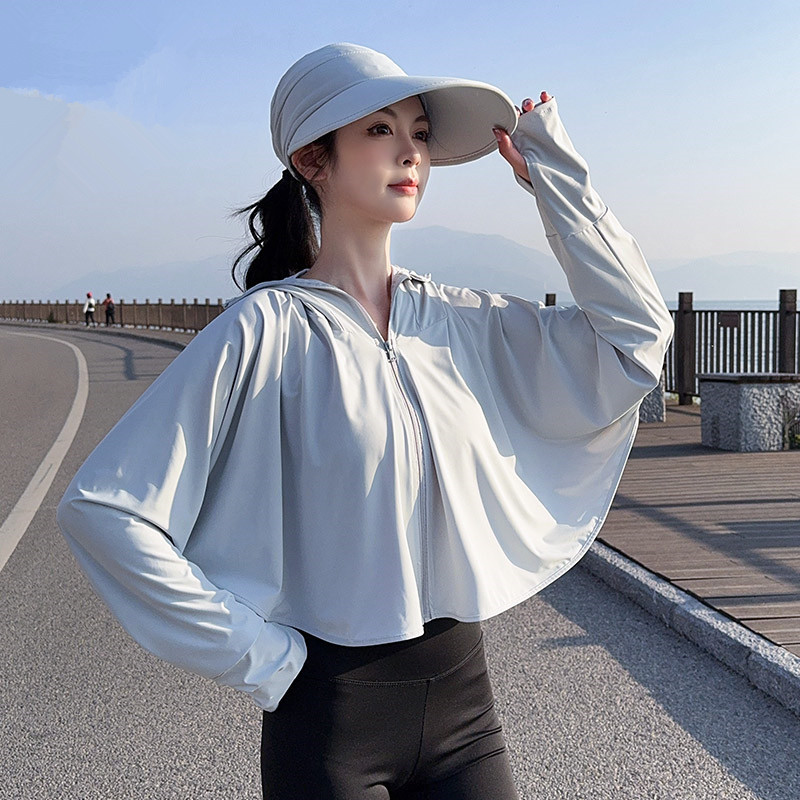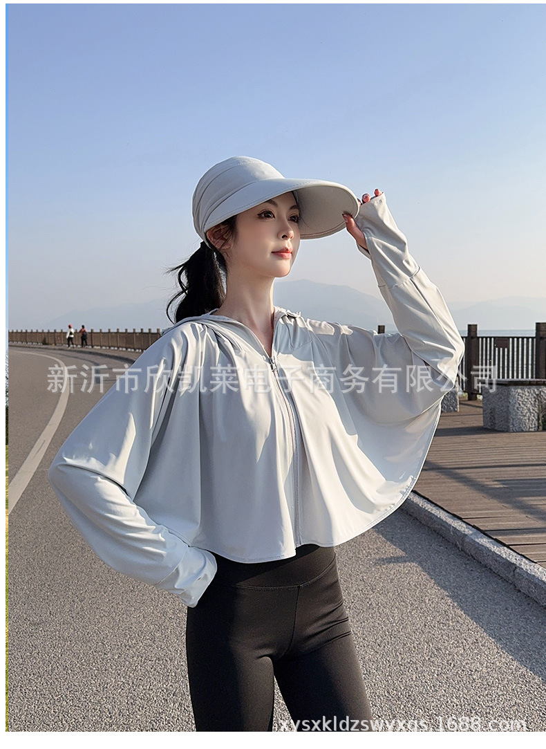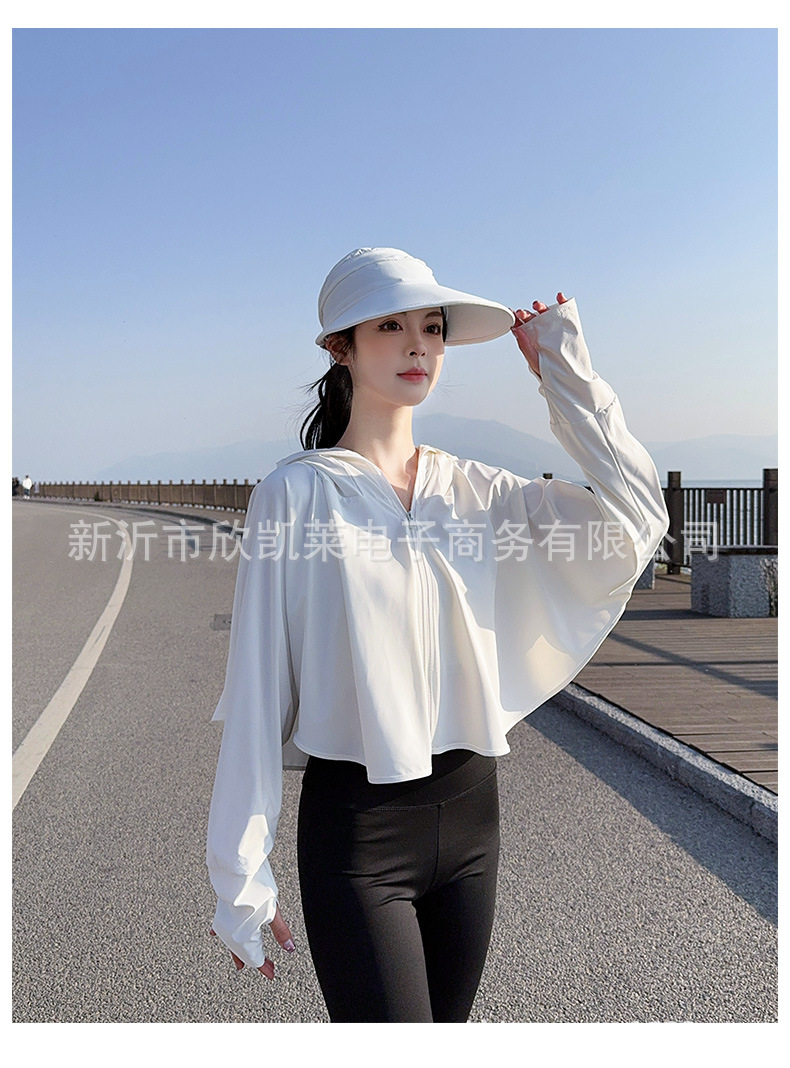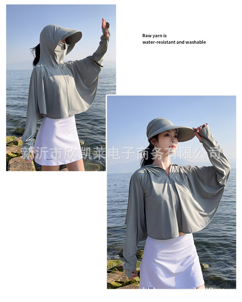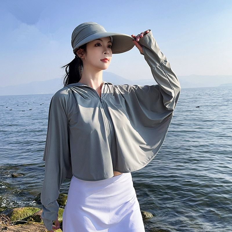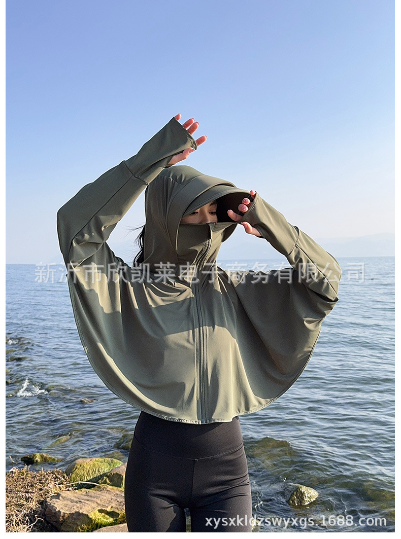夏季女生防晒衣户外骑行短外套防紫外线透气薄蝙蝠衫宽松帽子披肩