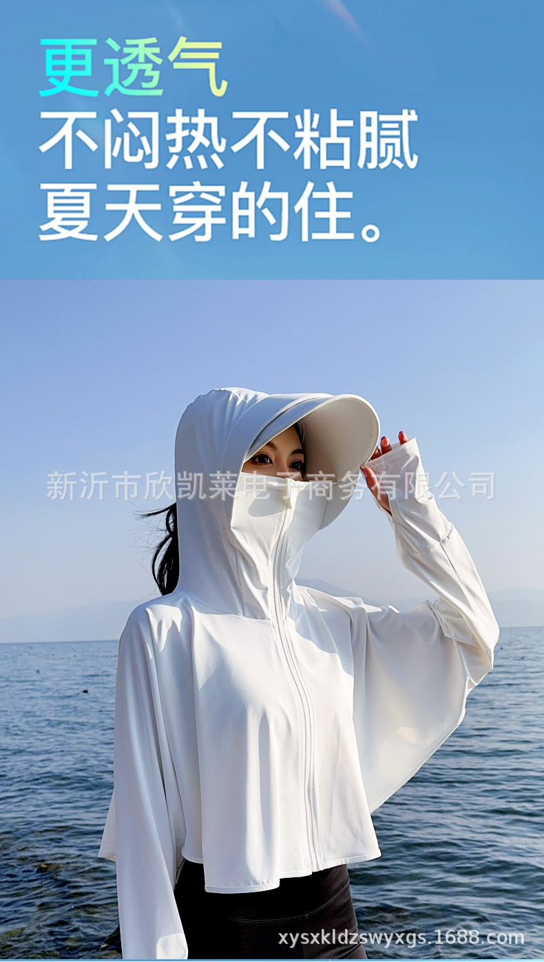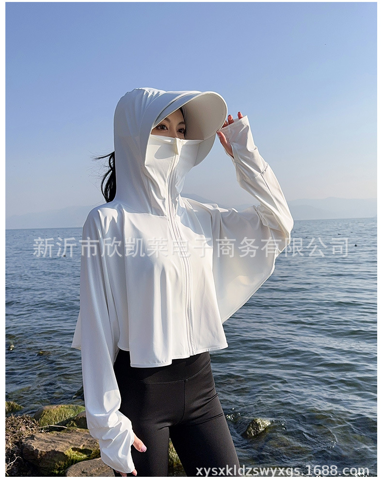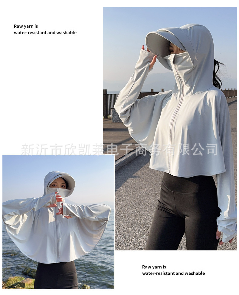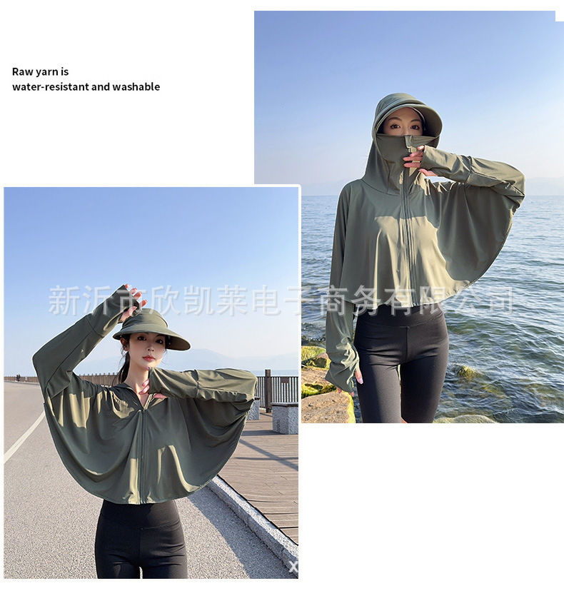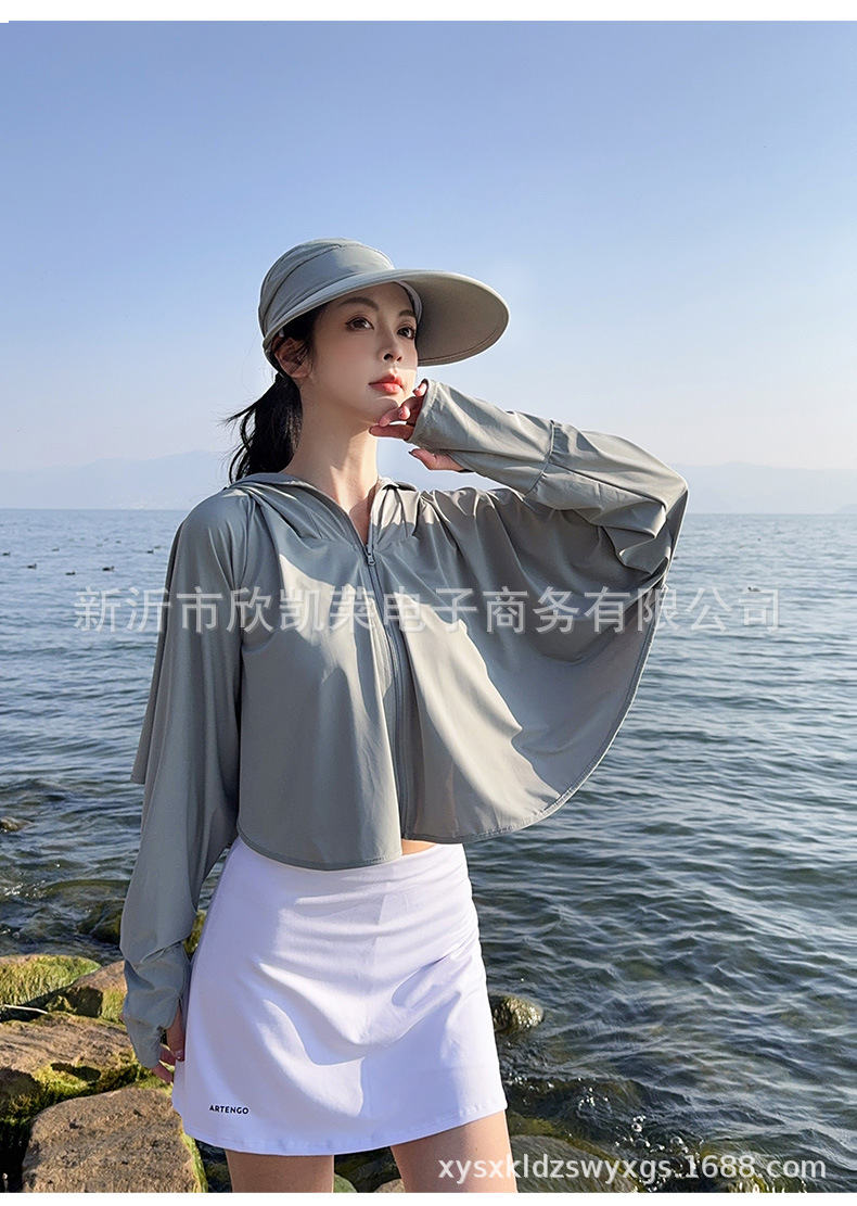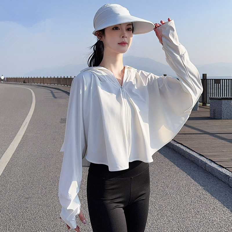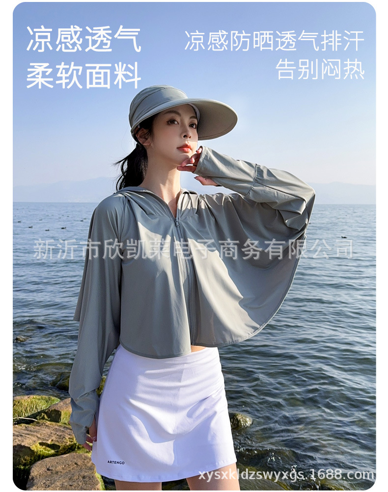 夏季女生防晒衣户外骑行短外套防紫外线透气薄蝙蝠衫宽松帽子披肩
