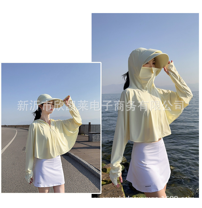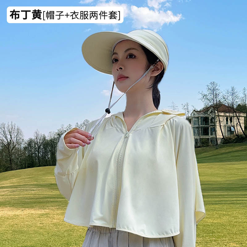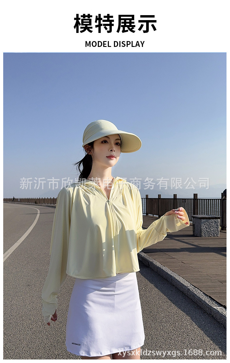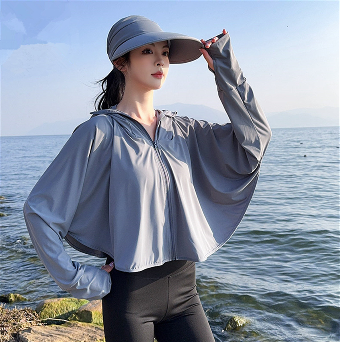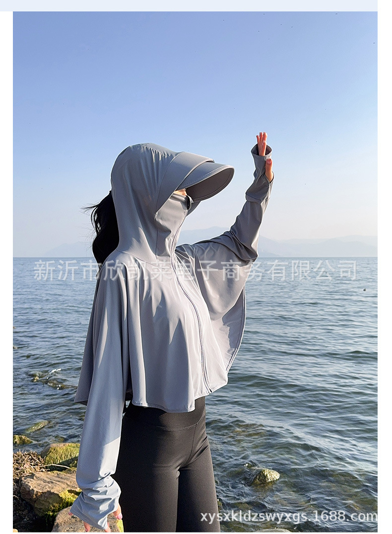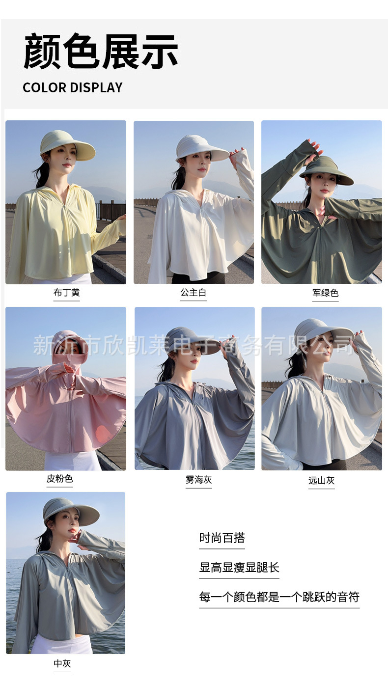 夏季女生防晒衣户外骑行短外套防紫外线透气薄蝙蝠衫宽松帽子披肩