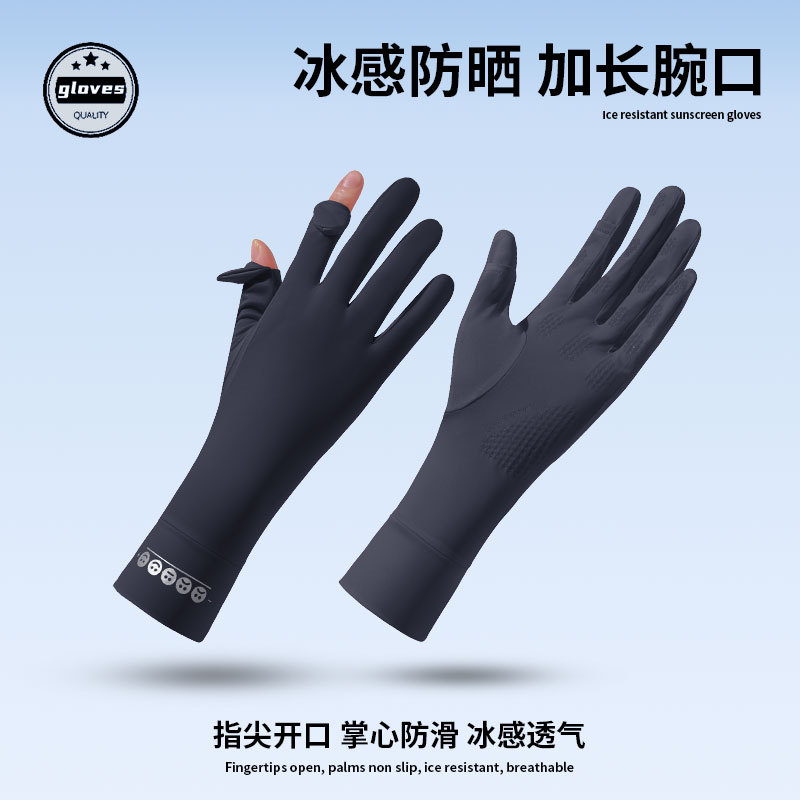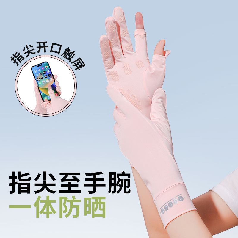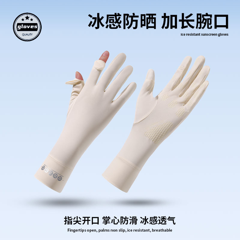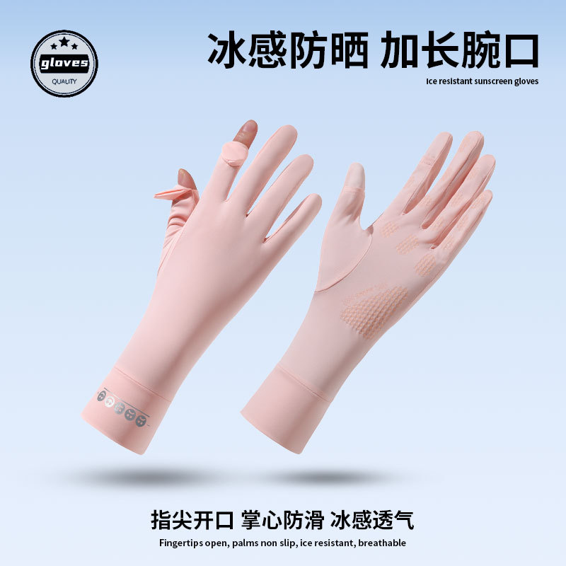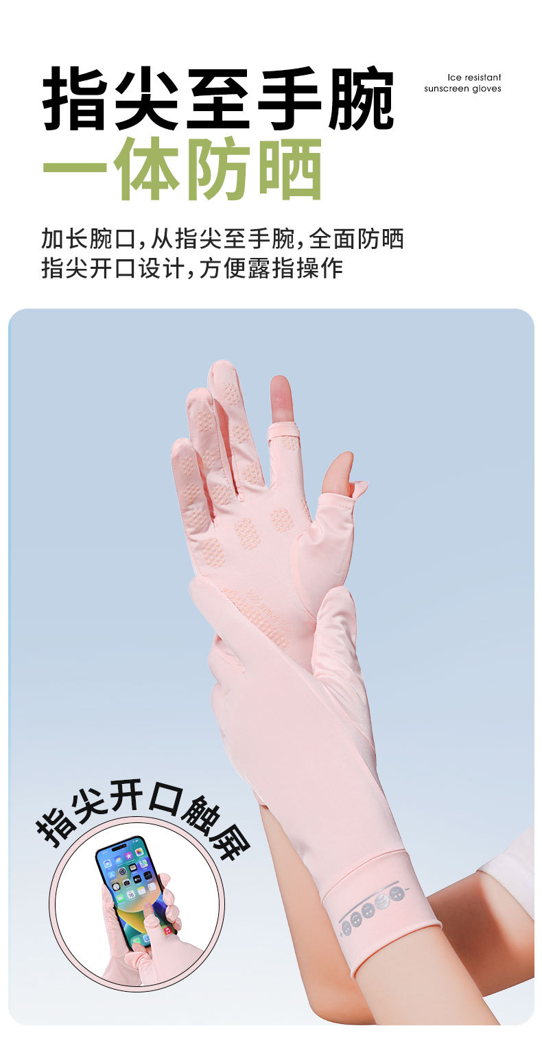 防晒手套女薄款夏季防紫外线电动车骑行开车防滑翻盖冰丝凉感手套