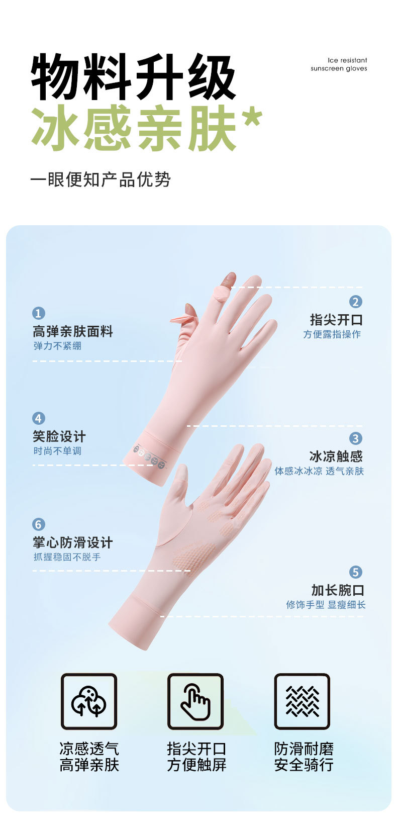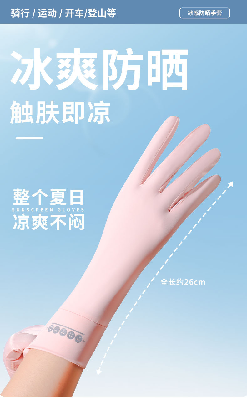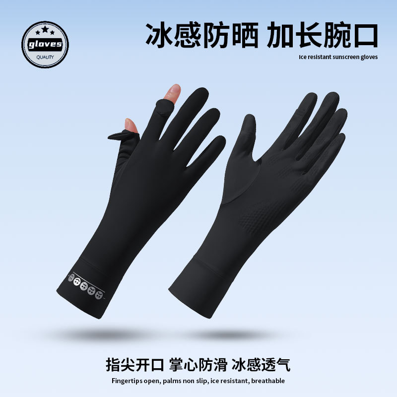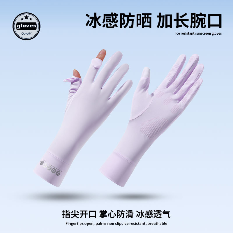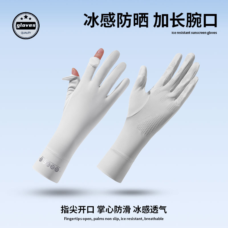 防晒手套女薄款夏季防紫外线电动车骑行开车防滑翻盖冰丝凉感手套