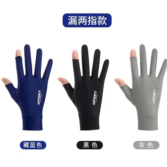 触屏防晒手套男女夏季外卖开车钓鱼薄款防滑骑行冰丝露半指手套