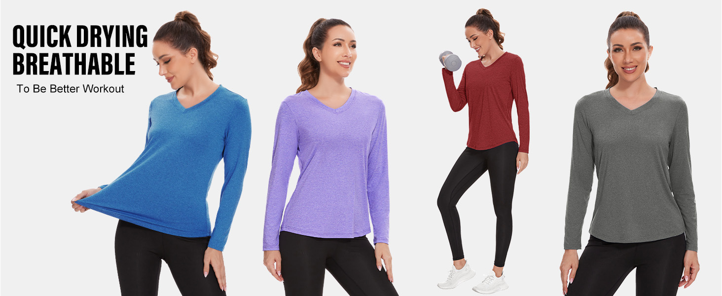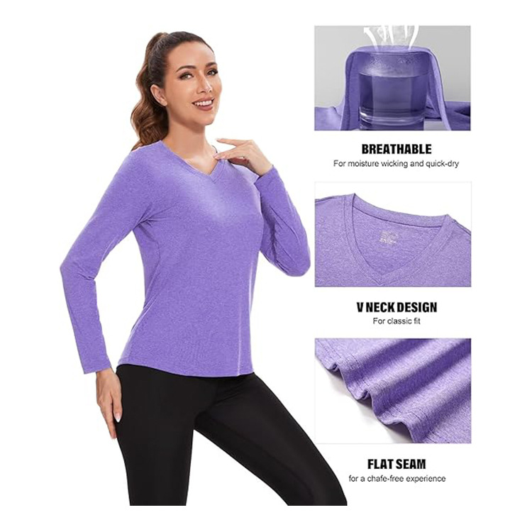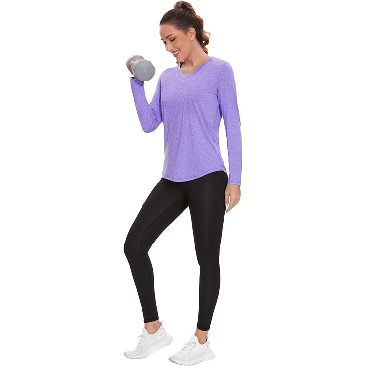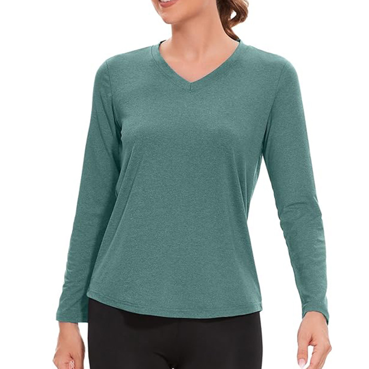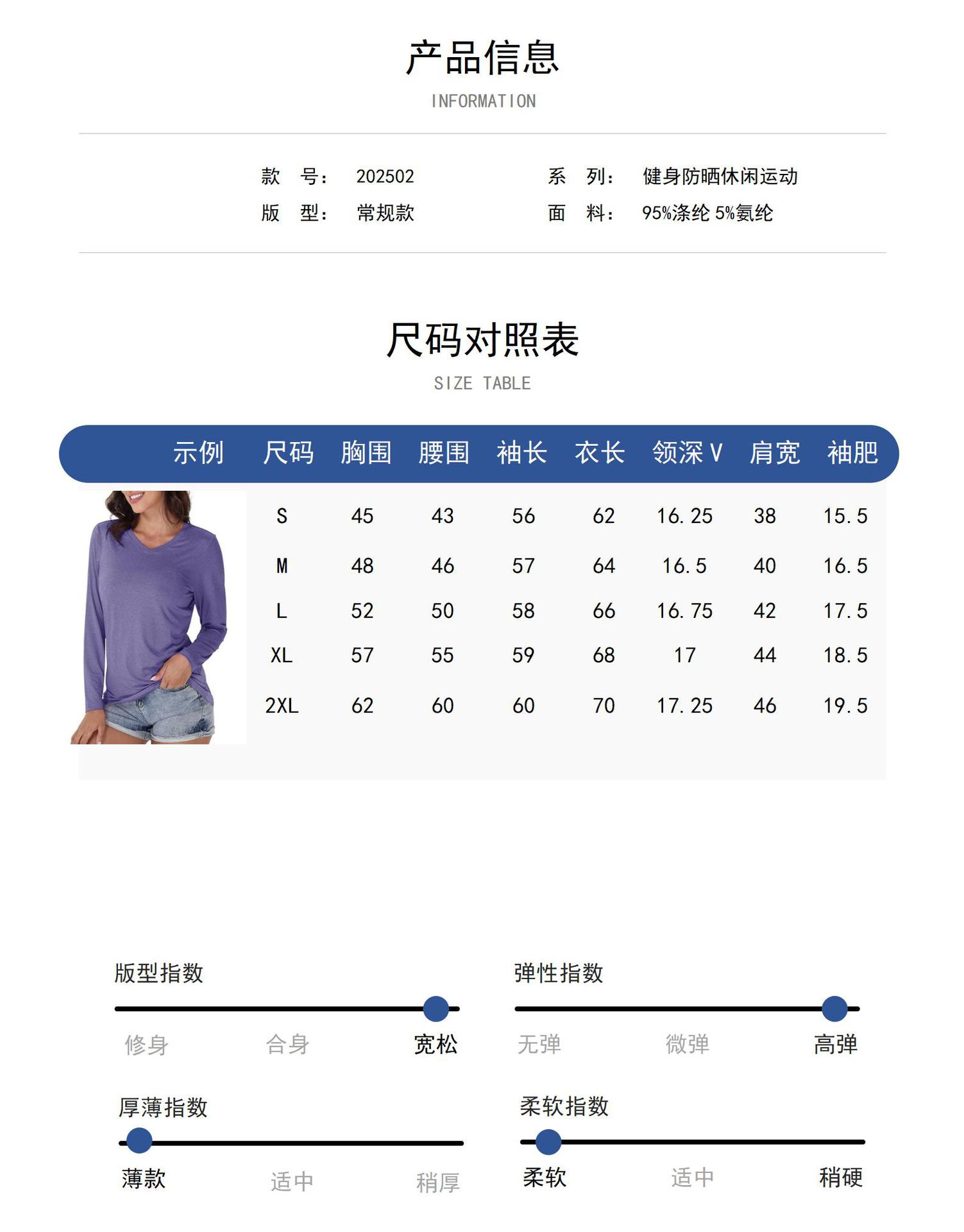 2026亚马逊爆款女士长袖健身服上衣阳离子V领UPF50+防晒衣T恤衫