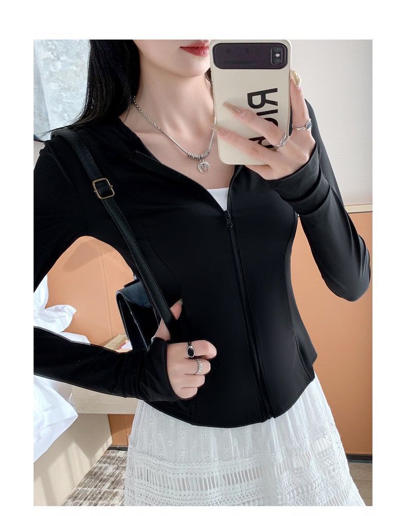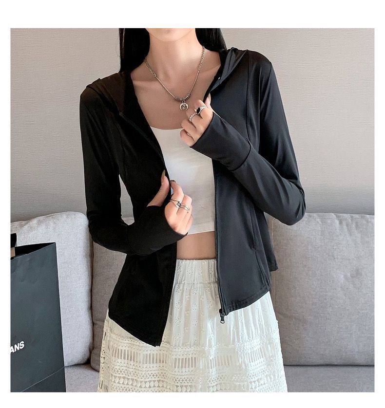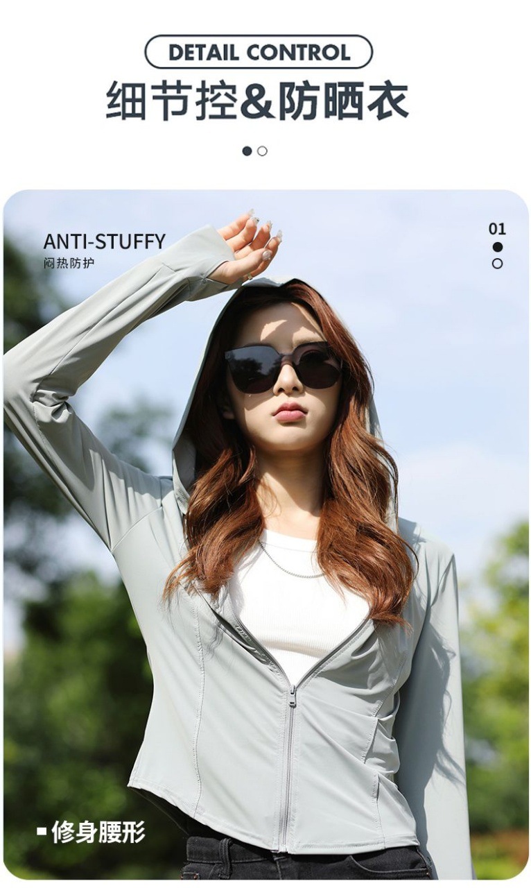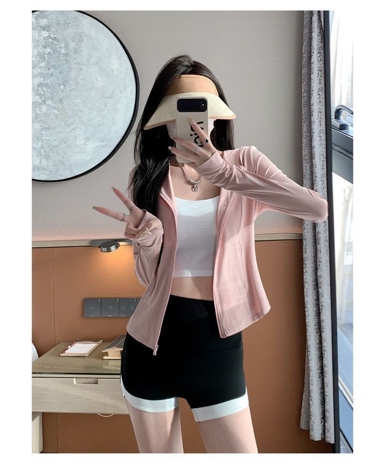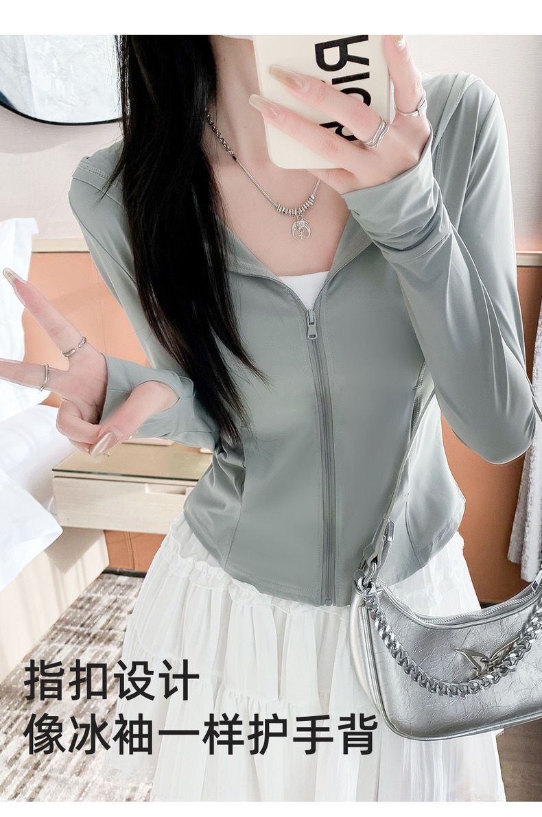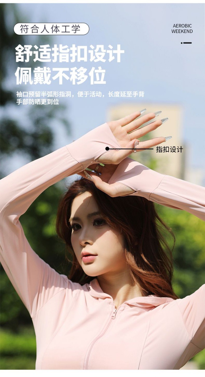 新款连帽防晒衣夏季薄款修身防紫外线透气瑜伽收腰冰丝正肩防晒服