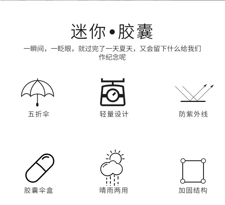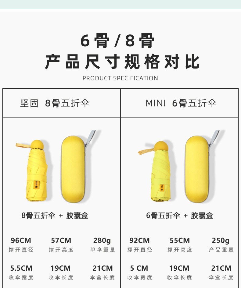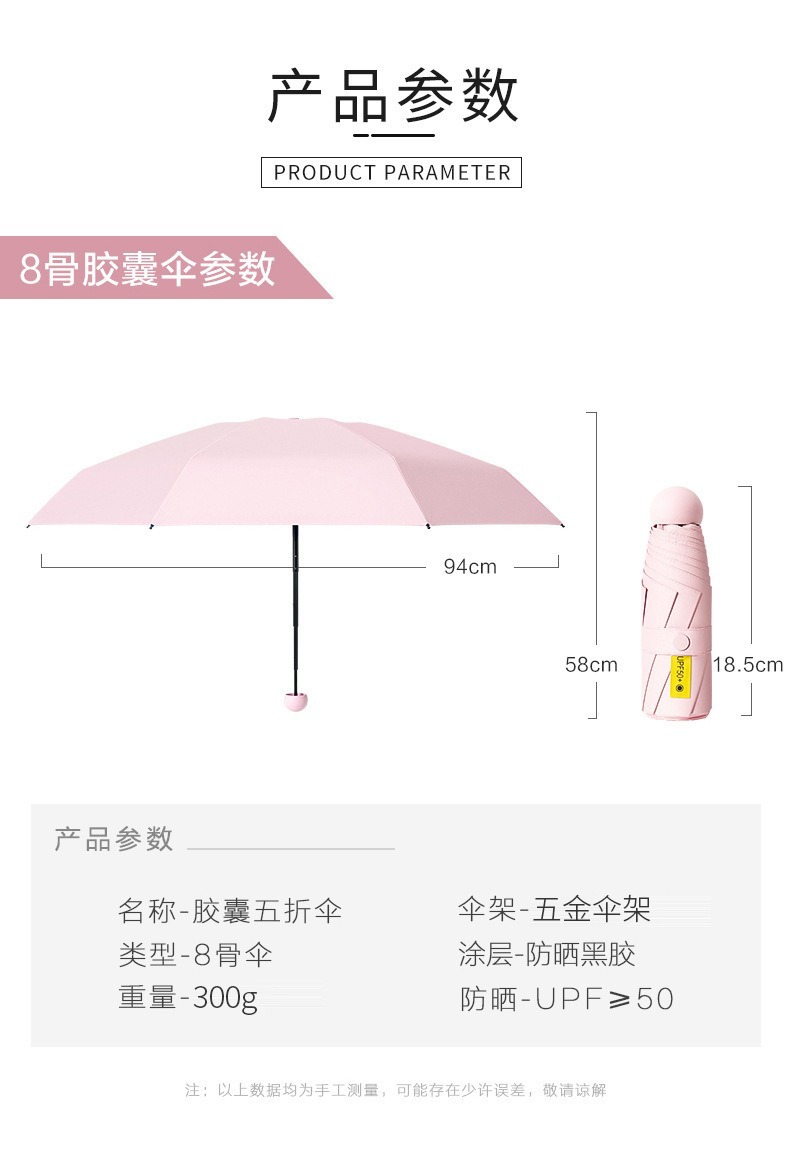 迷你五折胶囊伞加厚黑胶防晒遮阳伞女晴雨两用广告礼品伞定制logo