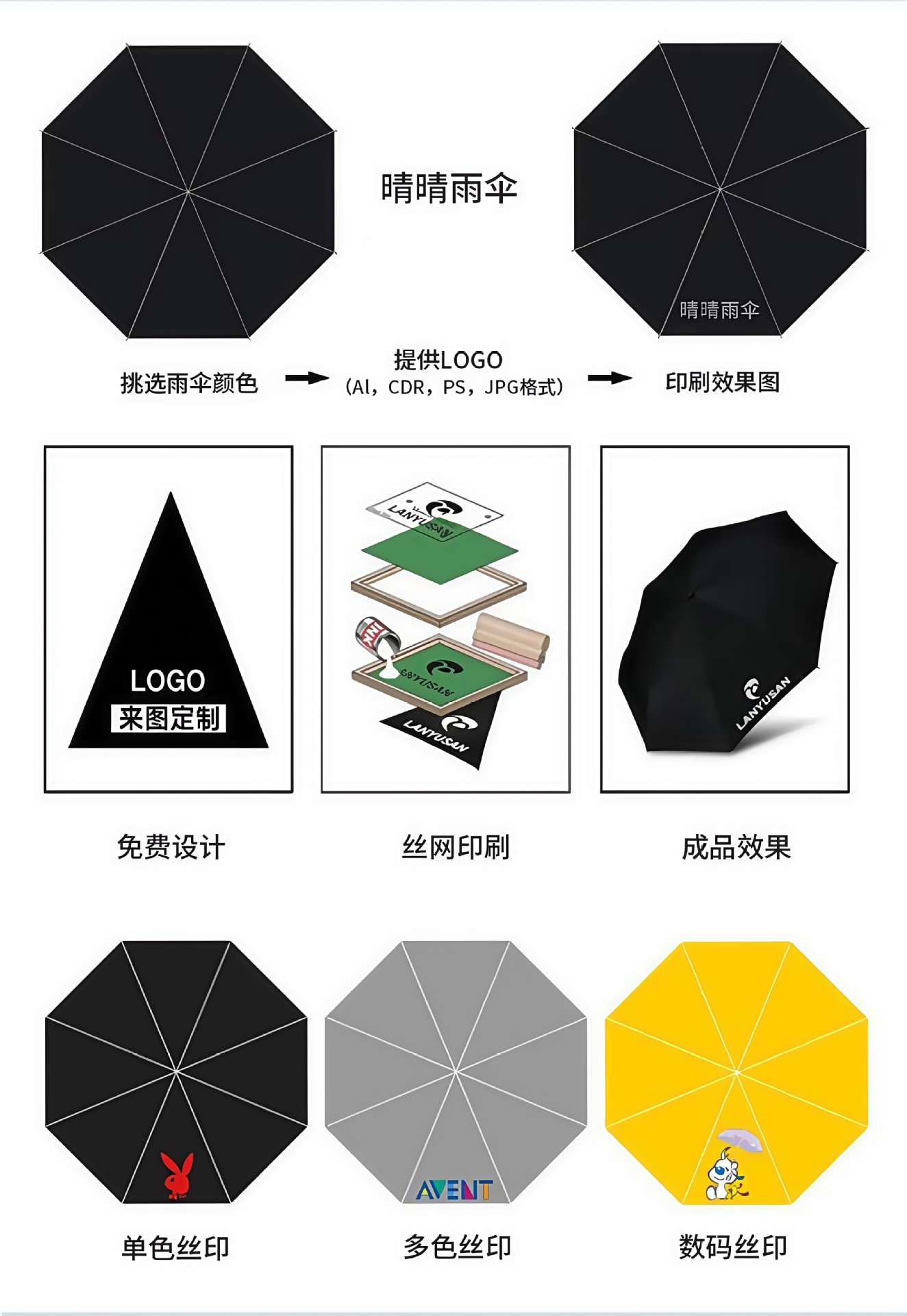 雨伞定制折叠伞晴雨两用伞遮阳伞黑胶logo批发晴雨伞抗风太阳伞