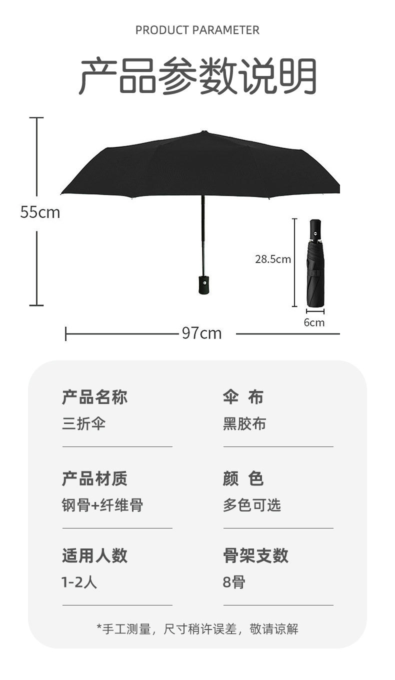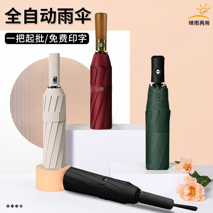 自动折叠伞批发大号黑胶遮阳防晒太阳伞晴雨两用广告雨伞定制LOGO
