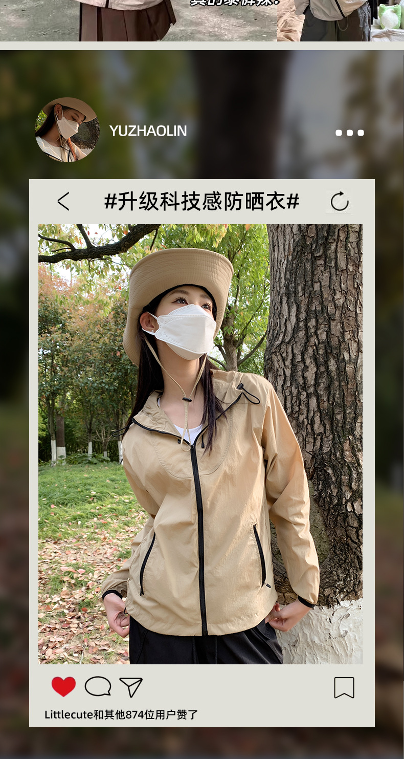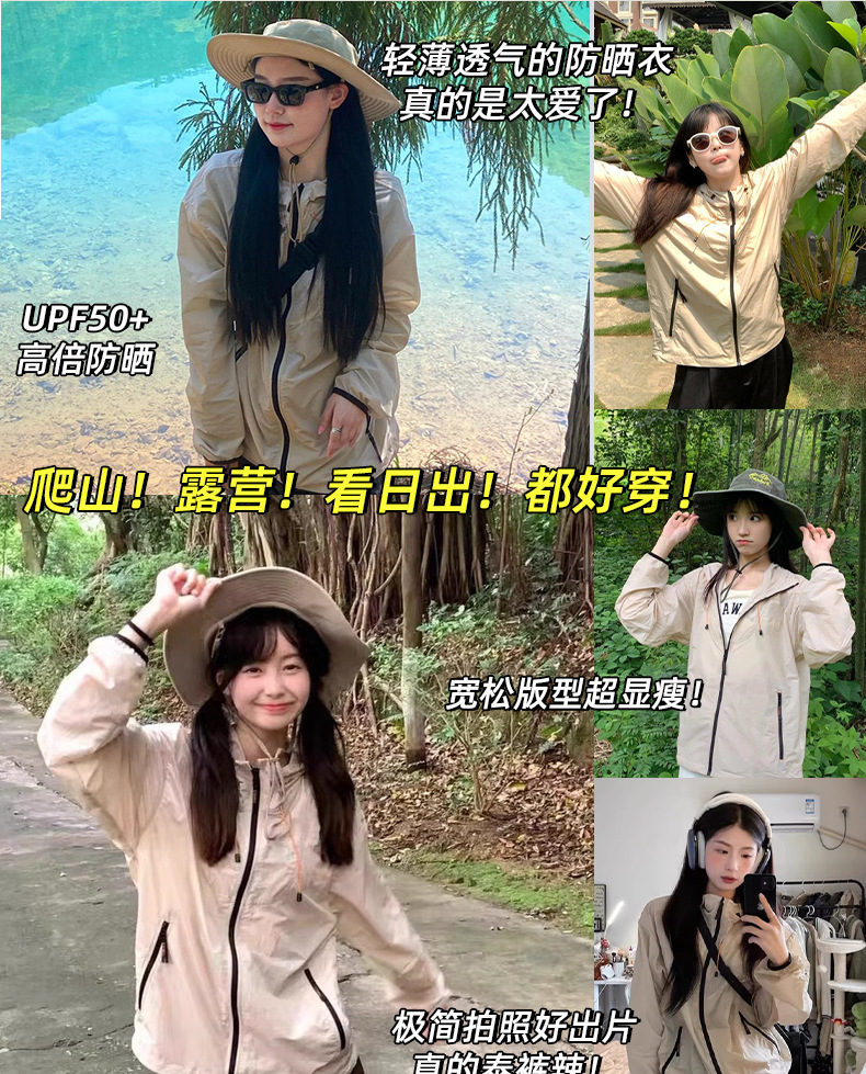 户外防晒衣女款2025夏季新款防紫外线山系出行轻薄凉感连帽防晒服