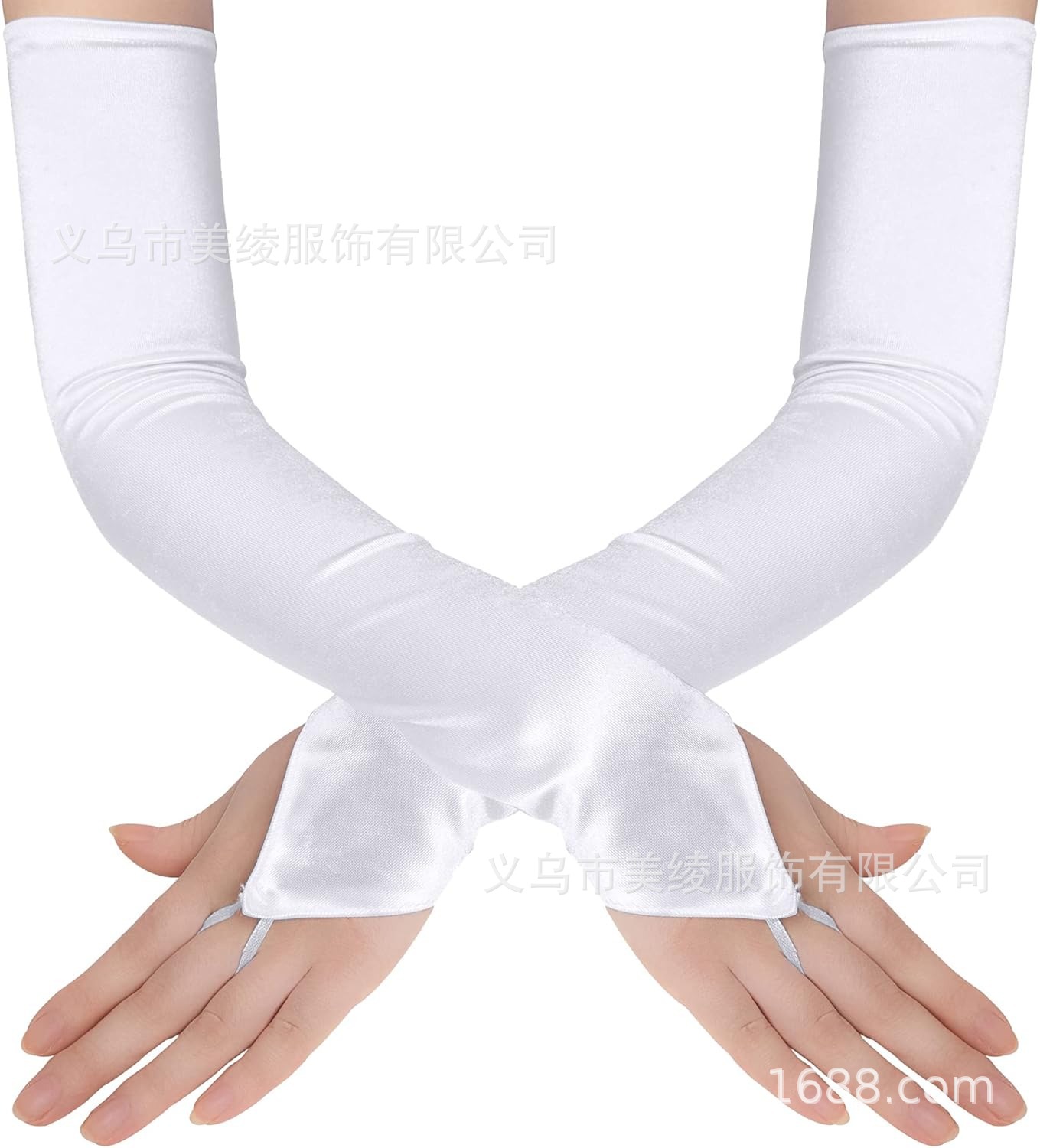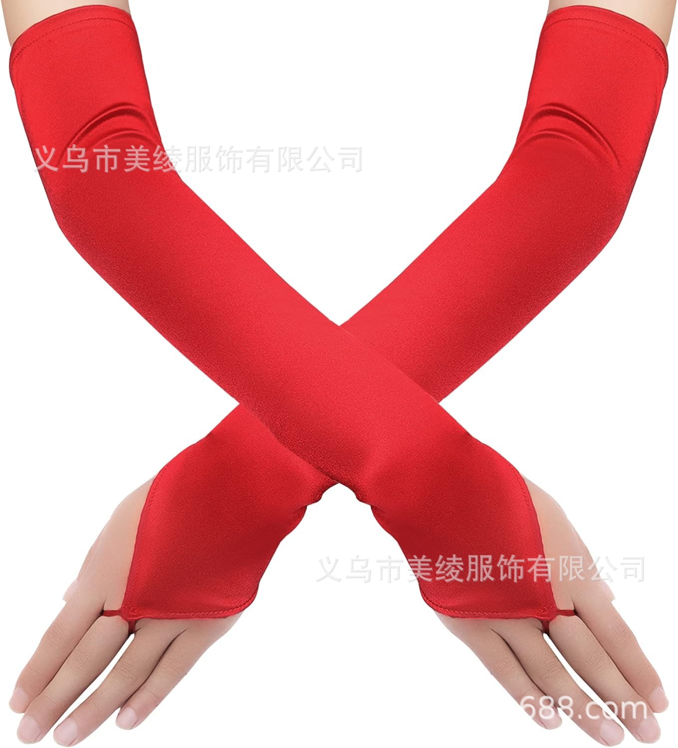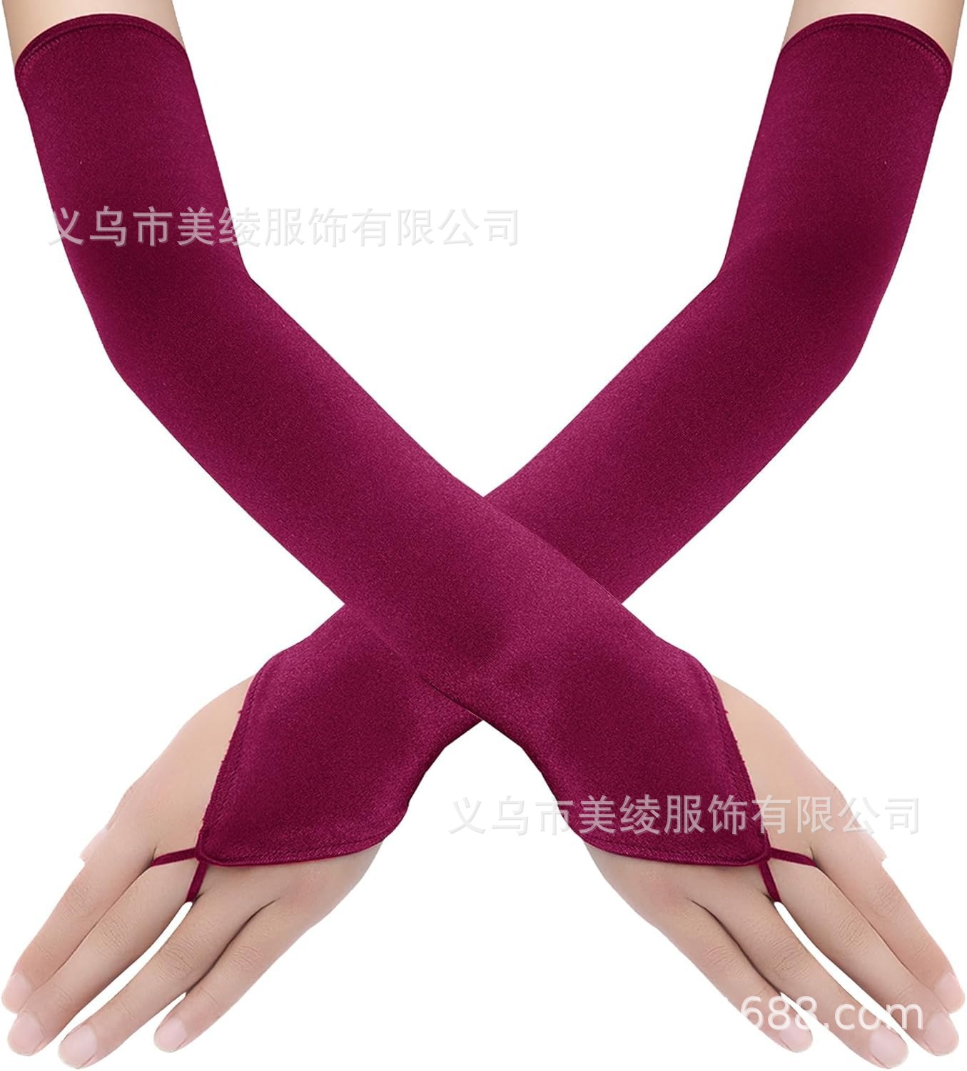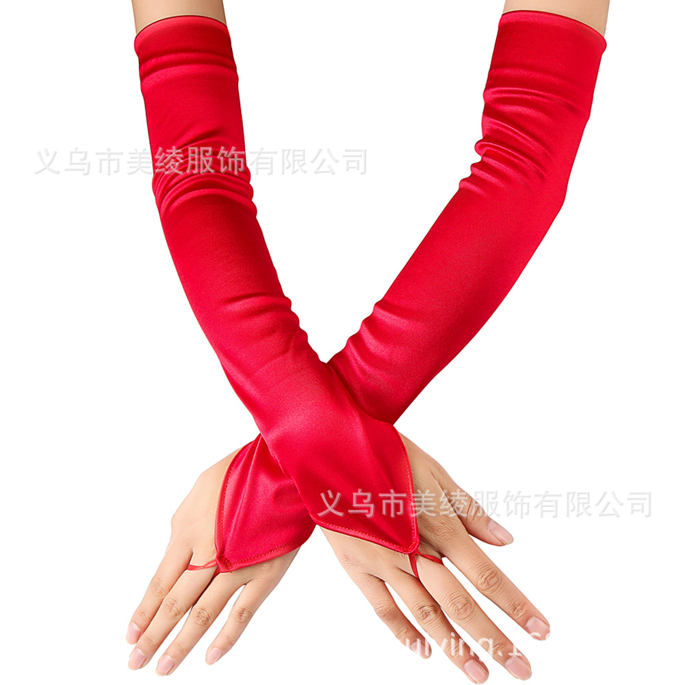 新娘婚纱礼服演出黑色色丁缎面尼龙无指勾指露指手套批发结婚配饰