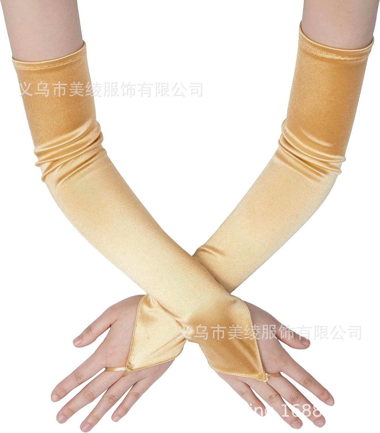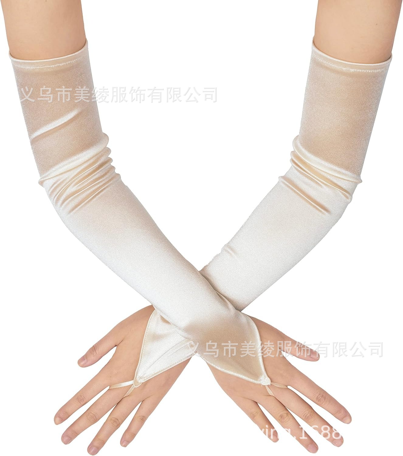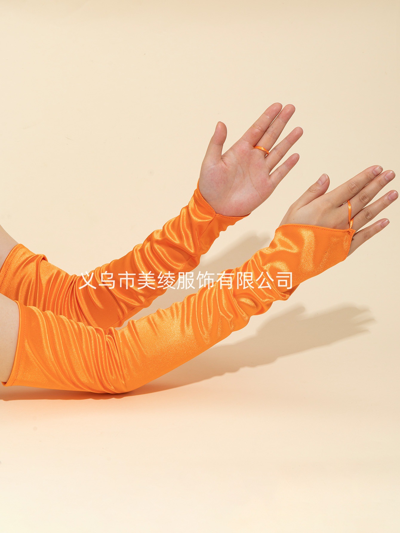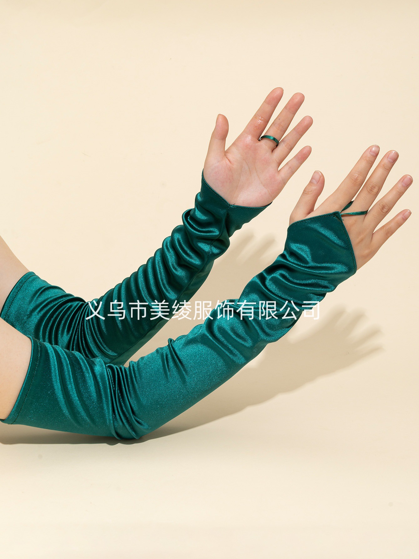 新娘婚纱礼服演出黑色色丁缎面尼龙无指勾指露指手套批发结婚配饰