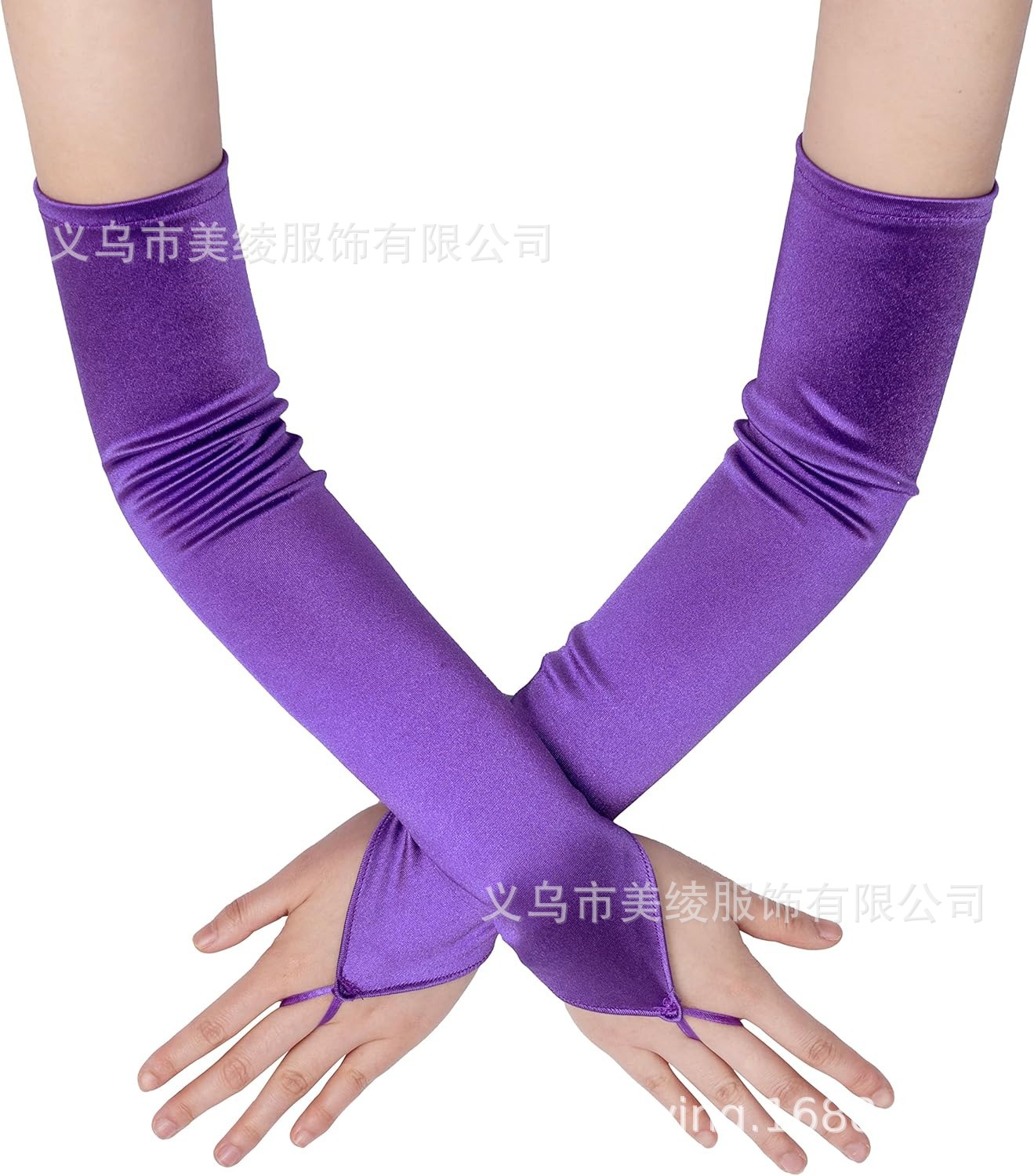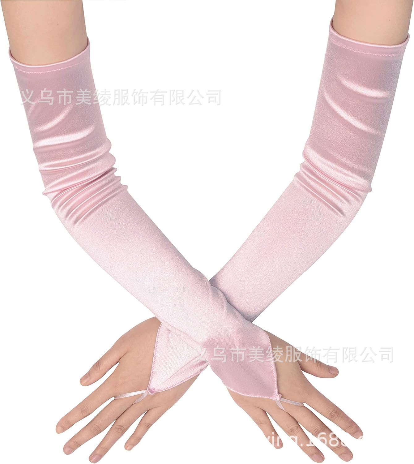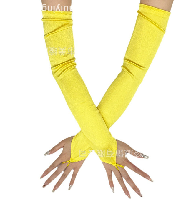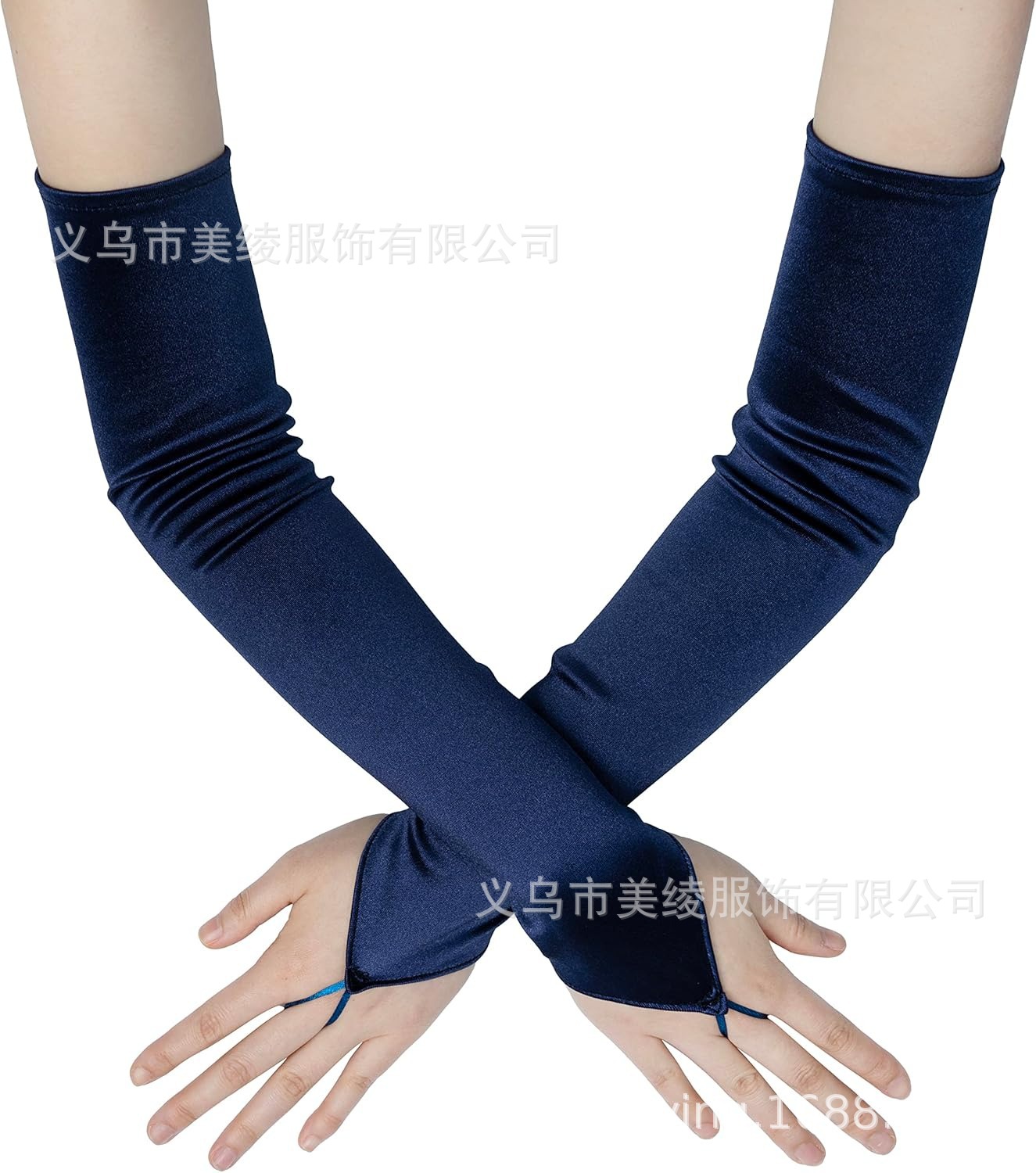 新娘婚纱礼服演出黑色色丁缎面尼龙无指勾指露指手套批发结婚配饰
