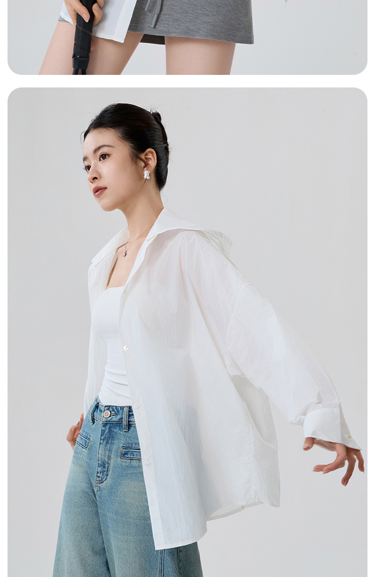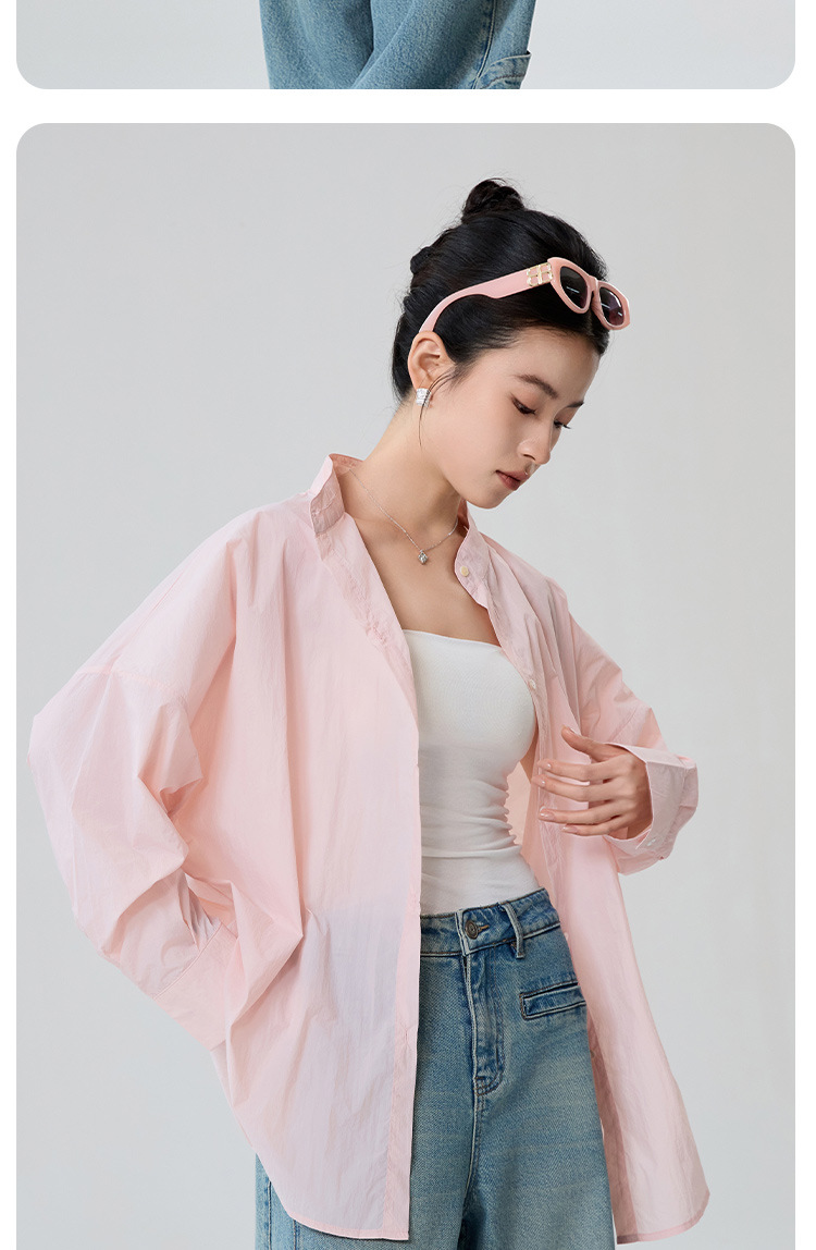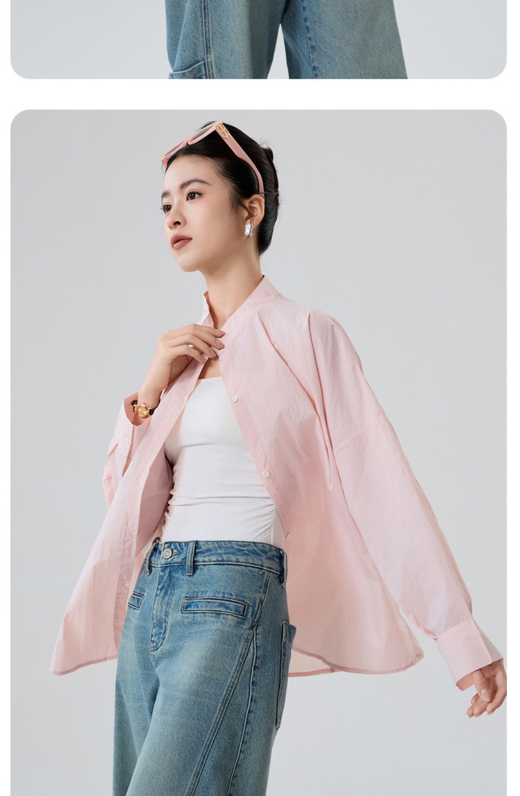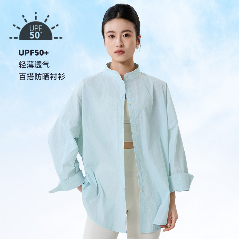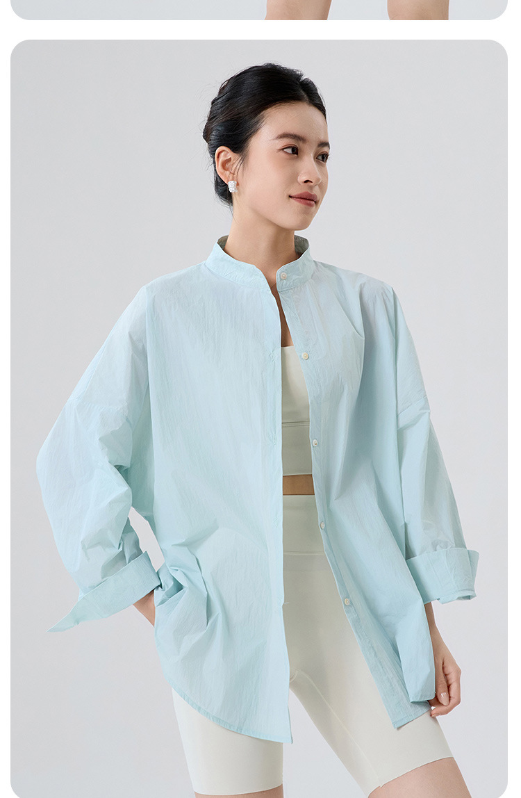 夏季慵懒风立领纸片透气防晒衣开衫超薄款显瘦防紫外线防晒衬衫女
