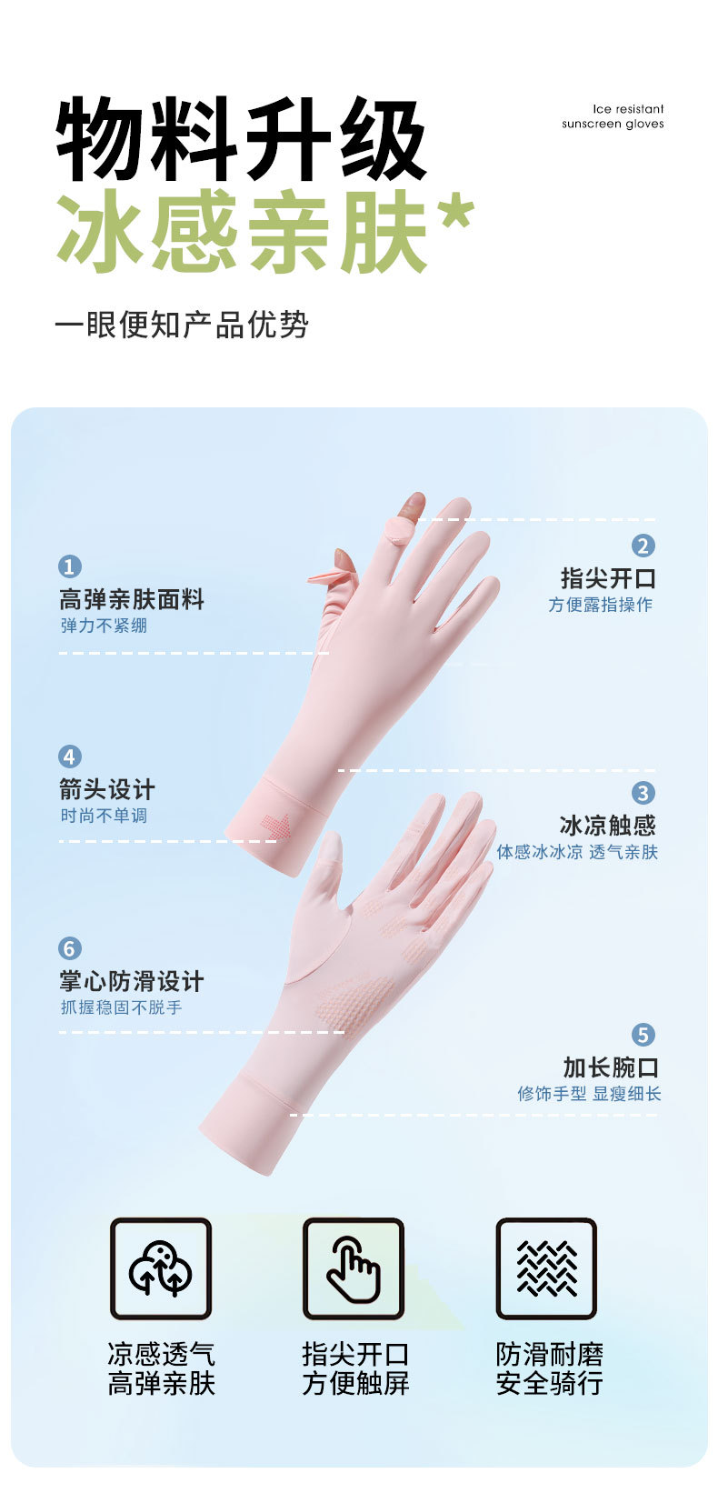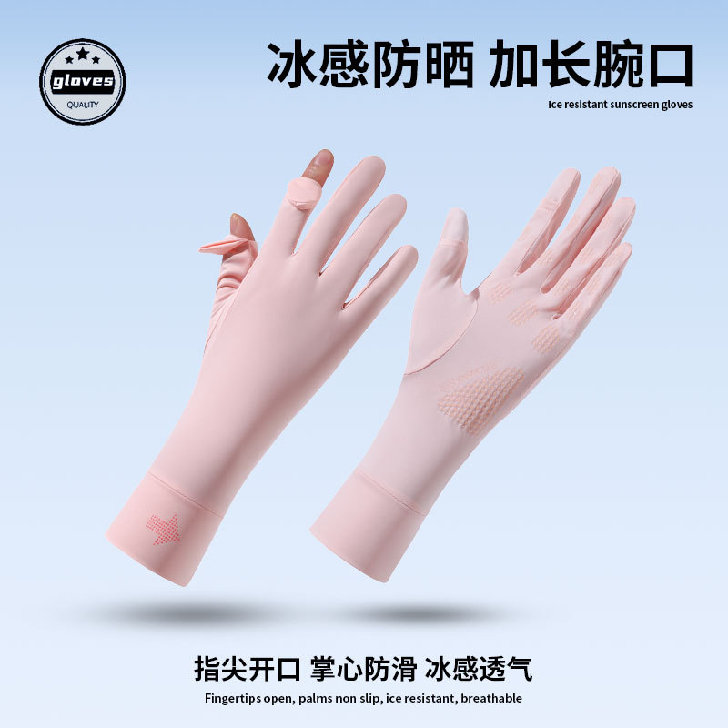 新款防晒手套女防紫外线开车骑行可触屏薄款夏季冰丝防滑电动车